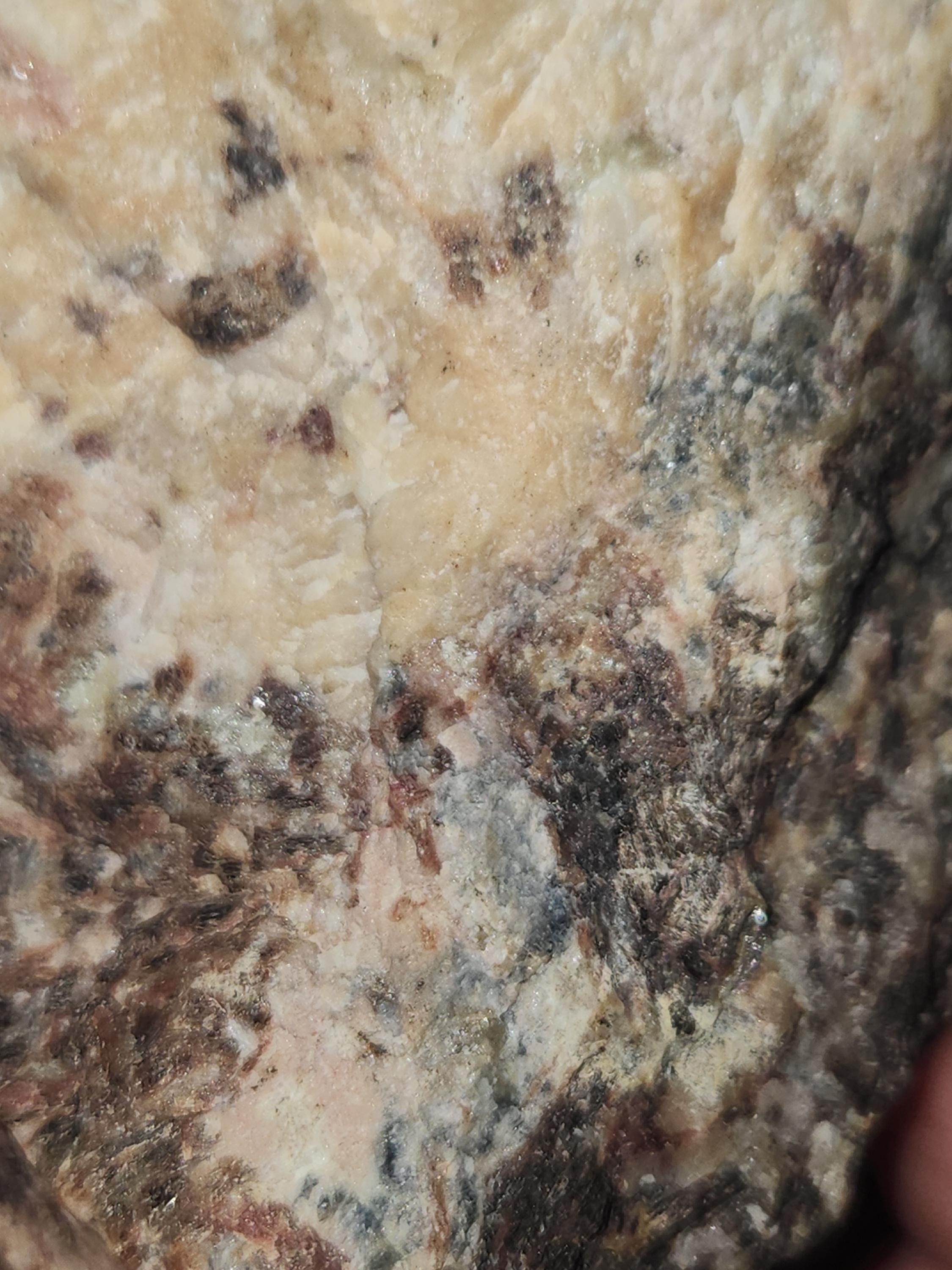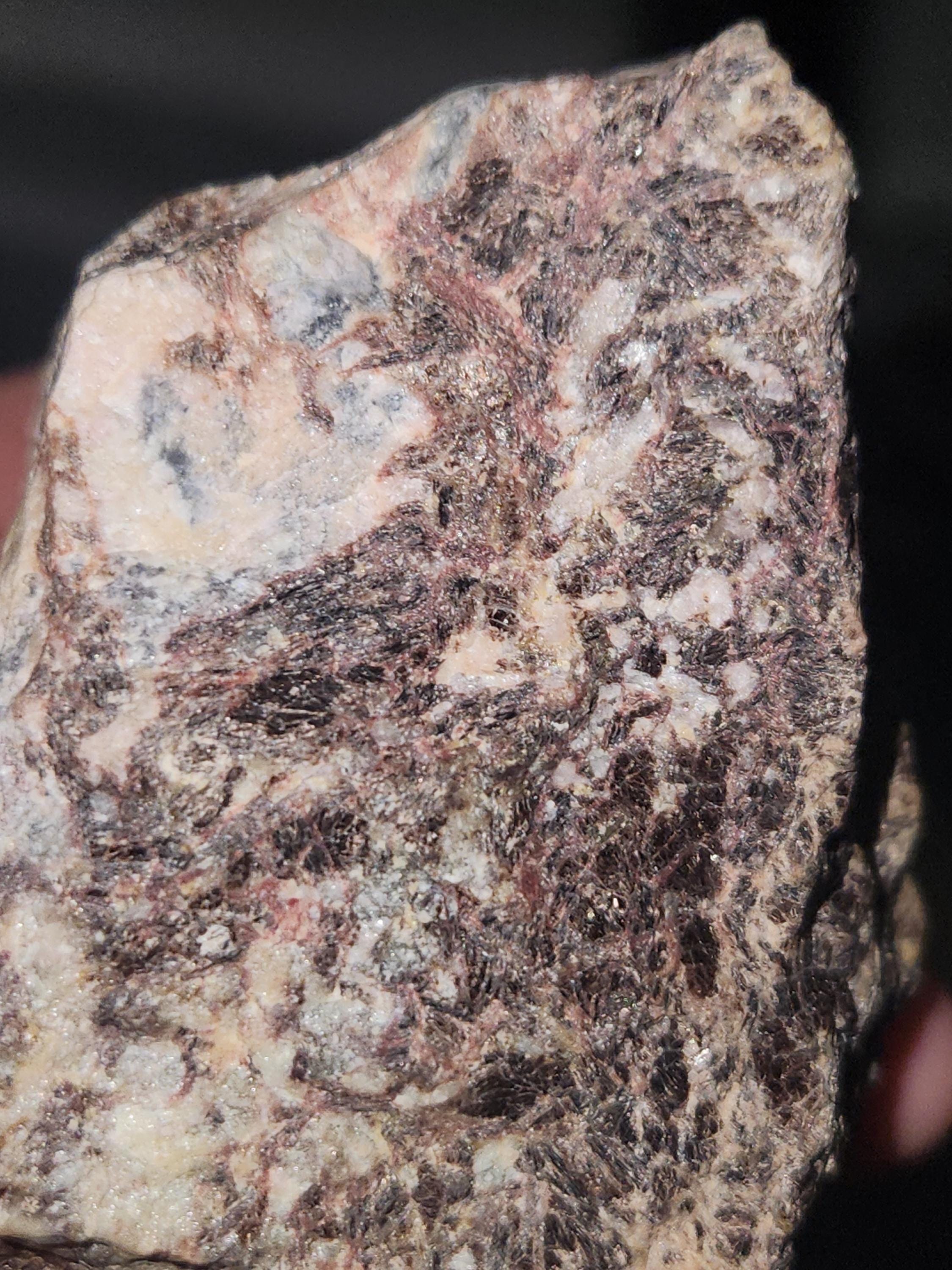 With Non-Fluorescent Light Tan Sugary Axinite, Blue-Grey Native Lead, Hendricksite Mica (Type Locality), Brown Andradite Garnet & Franklinite (Type Locality)