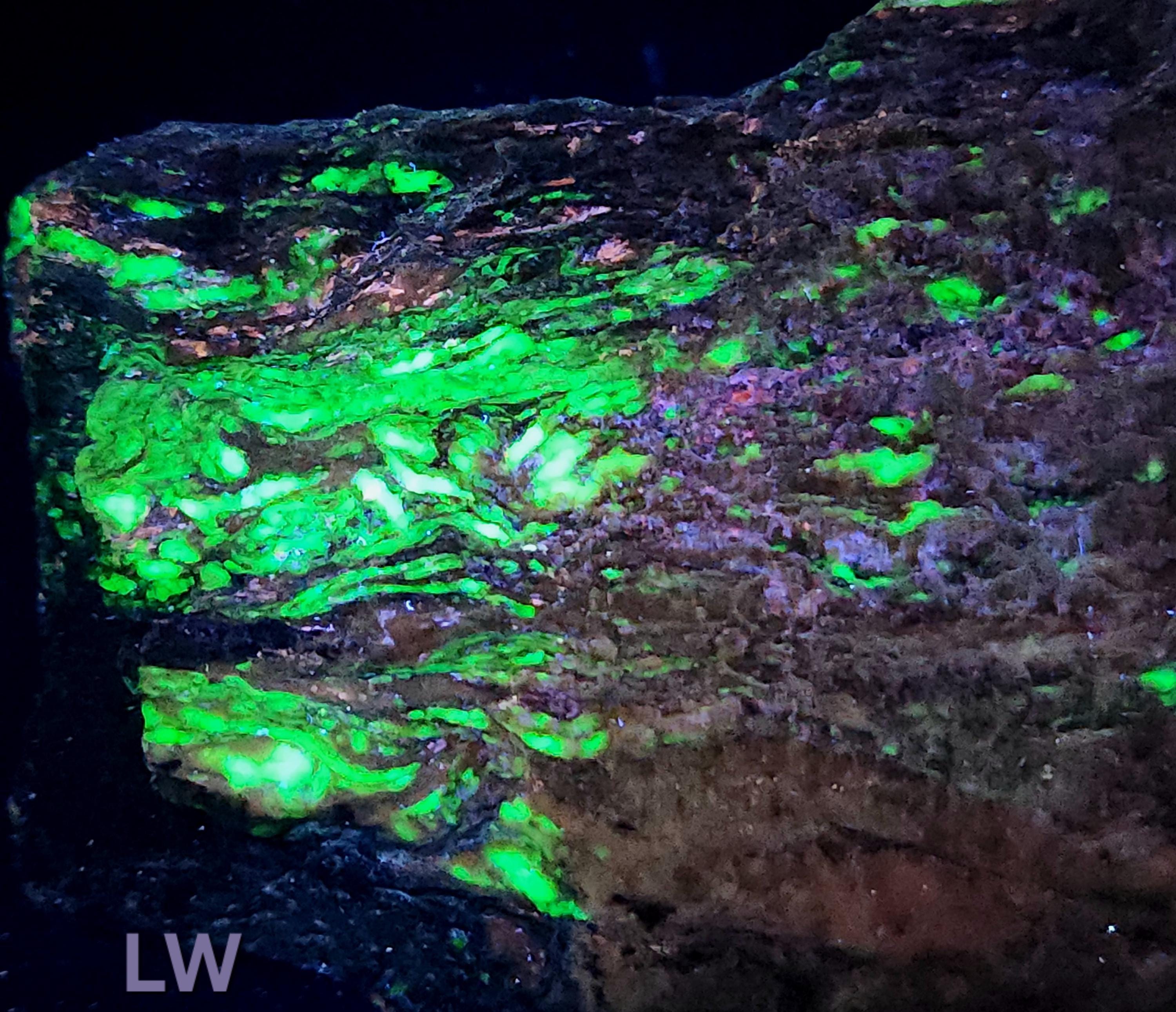 Big Super Bright & Colorful "Mylonitized Ore" / "Mylonite" - Shortwave/Midwave/Longwave Ultraviolet Fluorescent Willemite, Calcite & Sphalerite which was Squished & Stretched from Extreme Geological Forces!