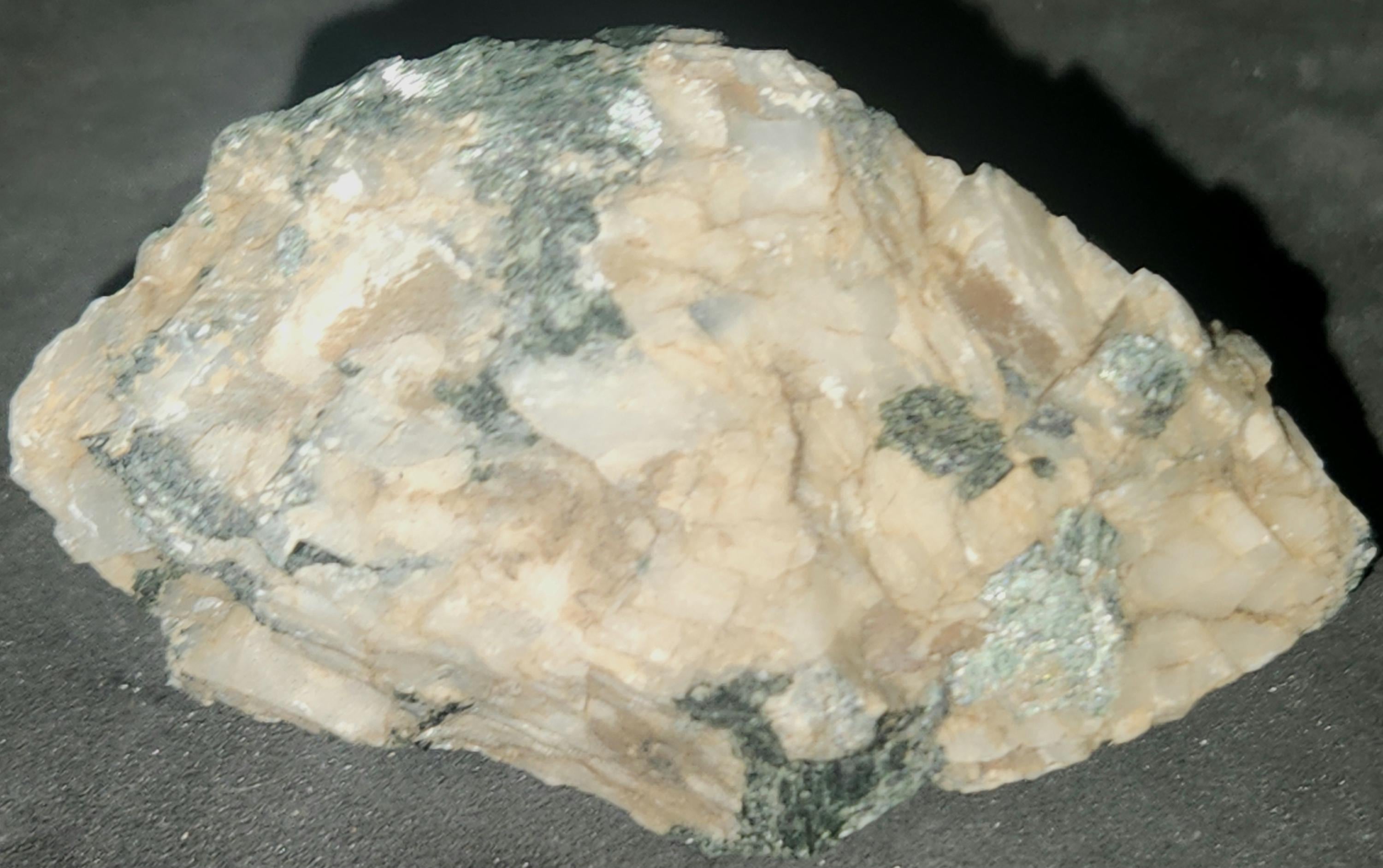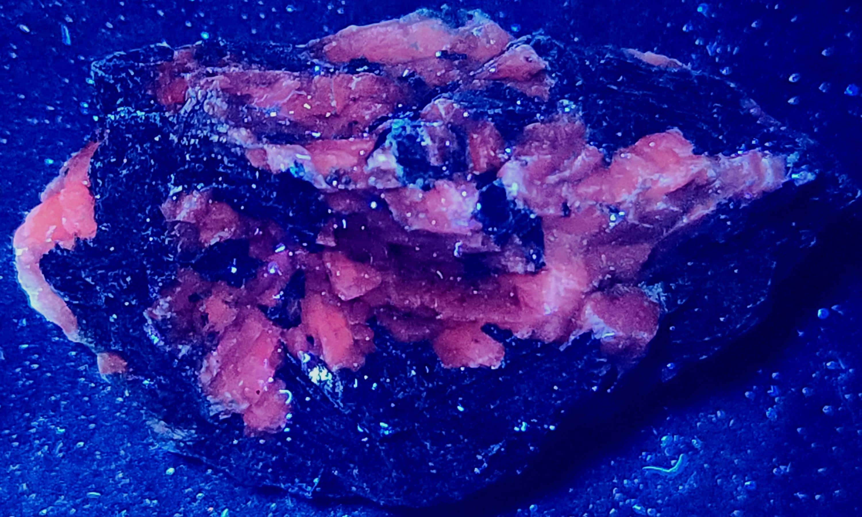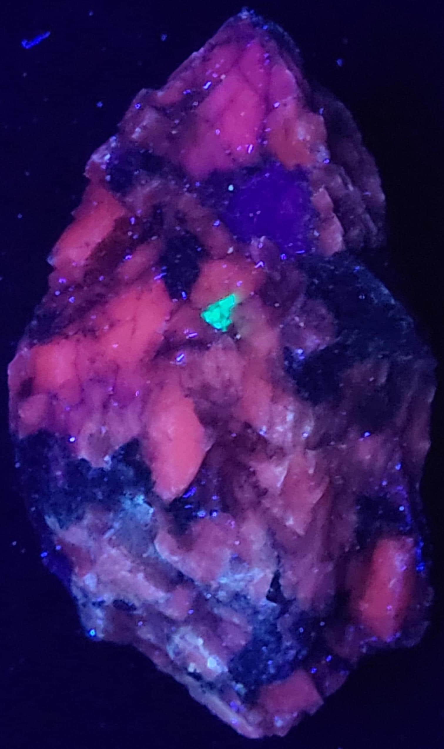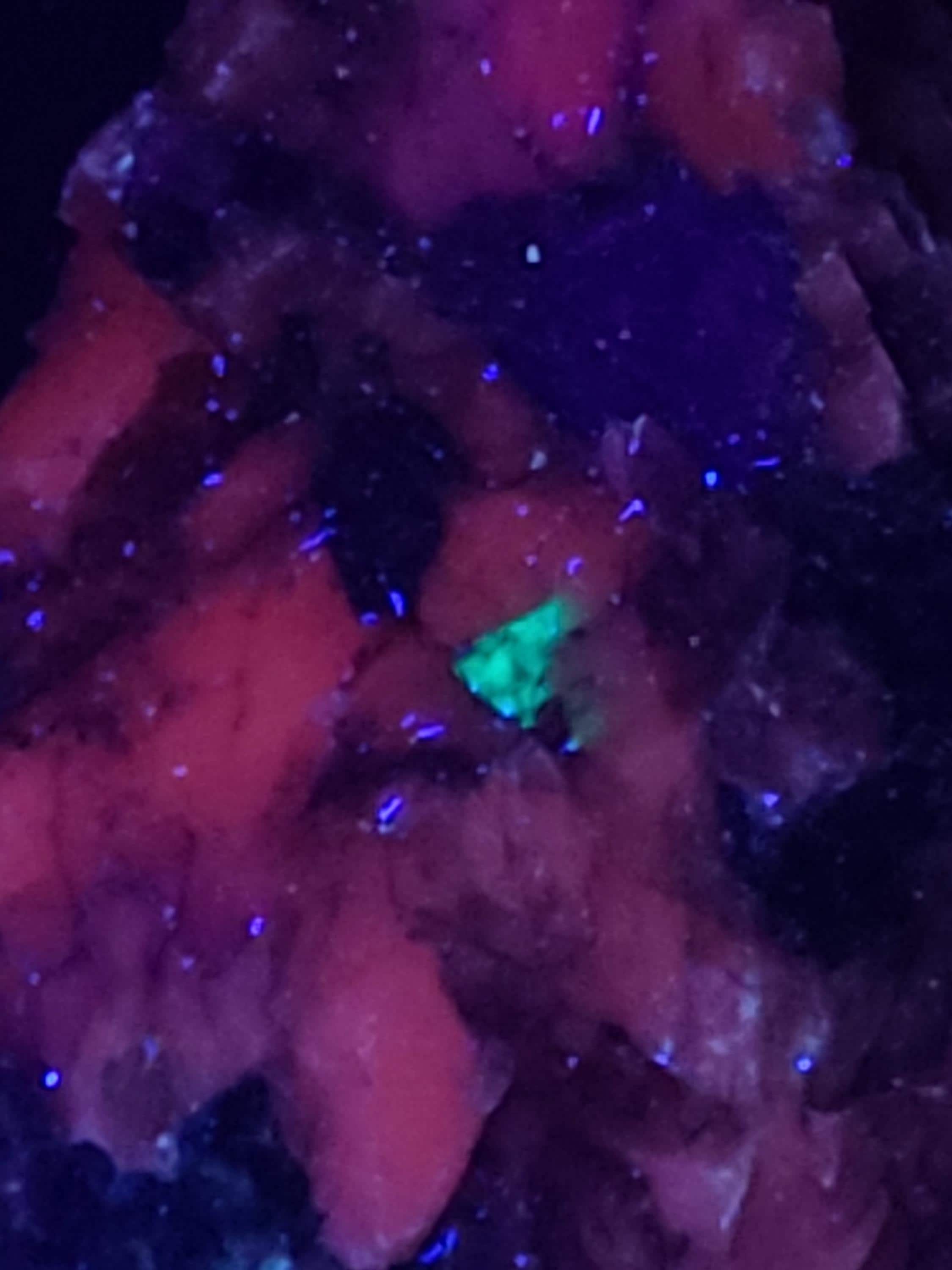 Fluorescent Genthelvite (Bright Mint Green LW & Very Dull Light Greenish-Blue SW) & Calcite (Bright Red/Orange SW & Duller Pink LW)