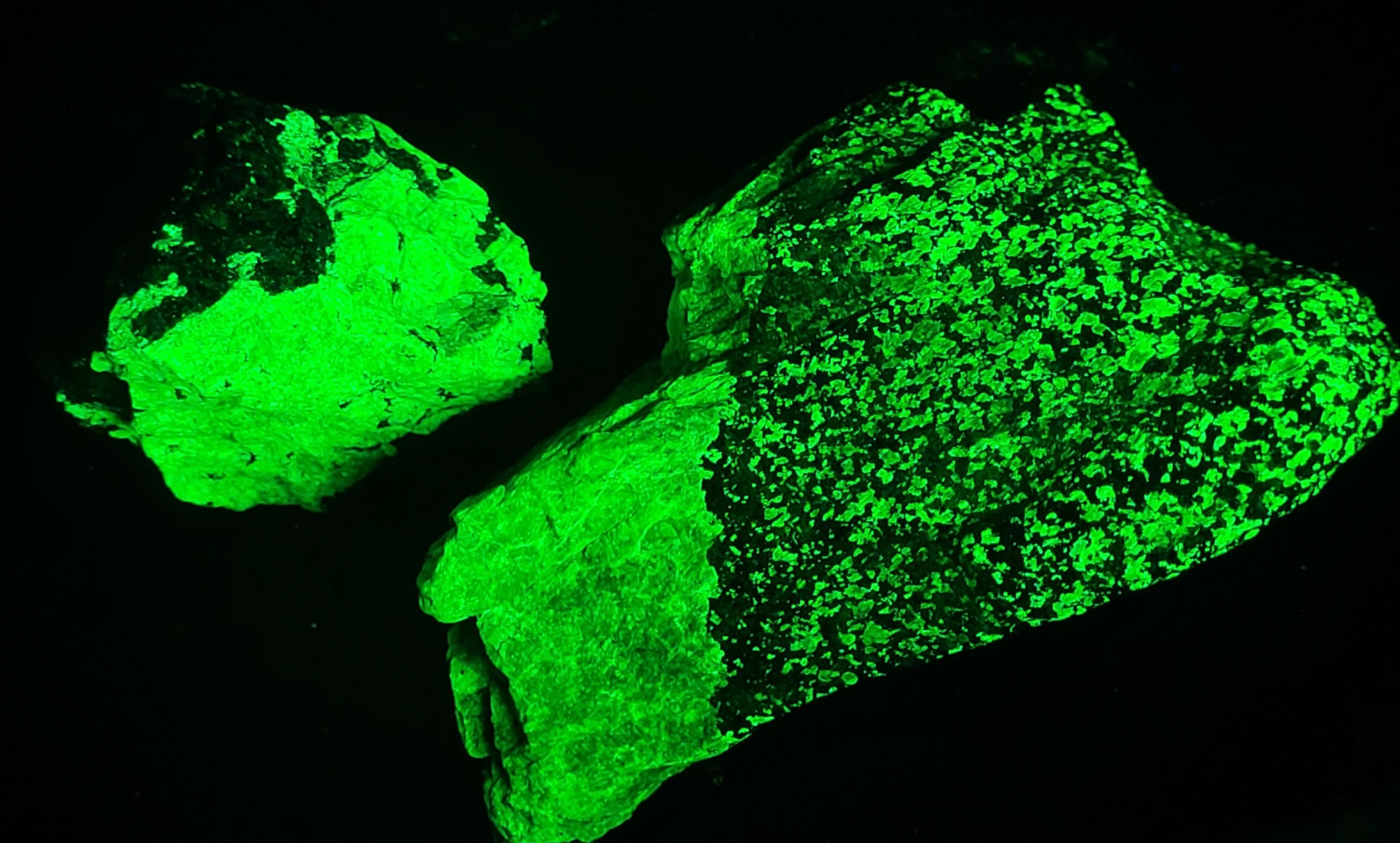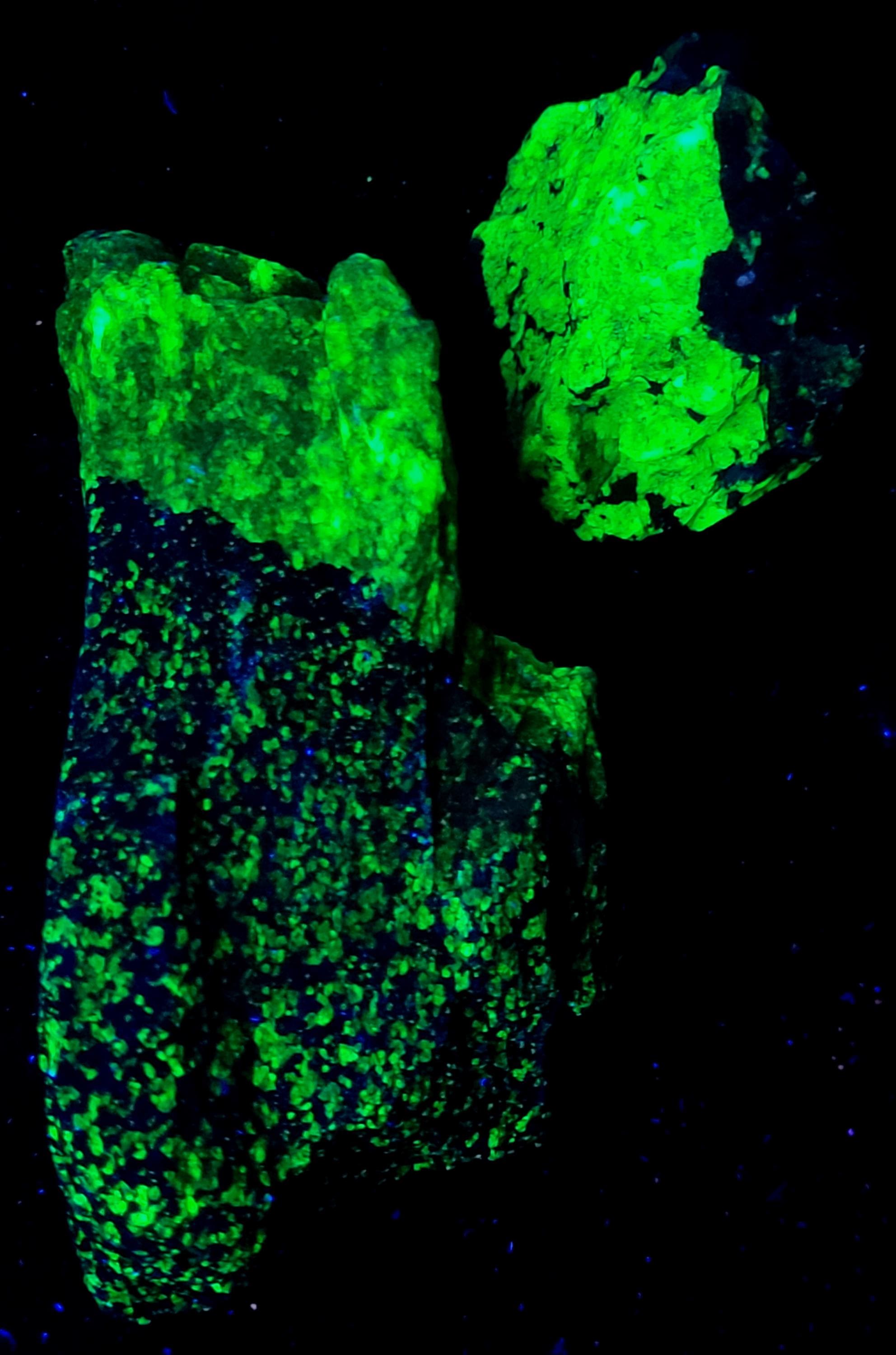 Lot of 2x Classic, Super Bright Shortwave SW + Longwave LW Ultraviolet Fluorescent Mineral Specimens From Franklin, New Jersey!