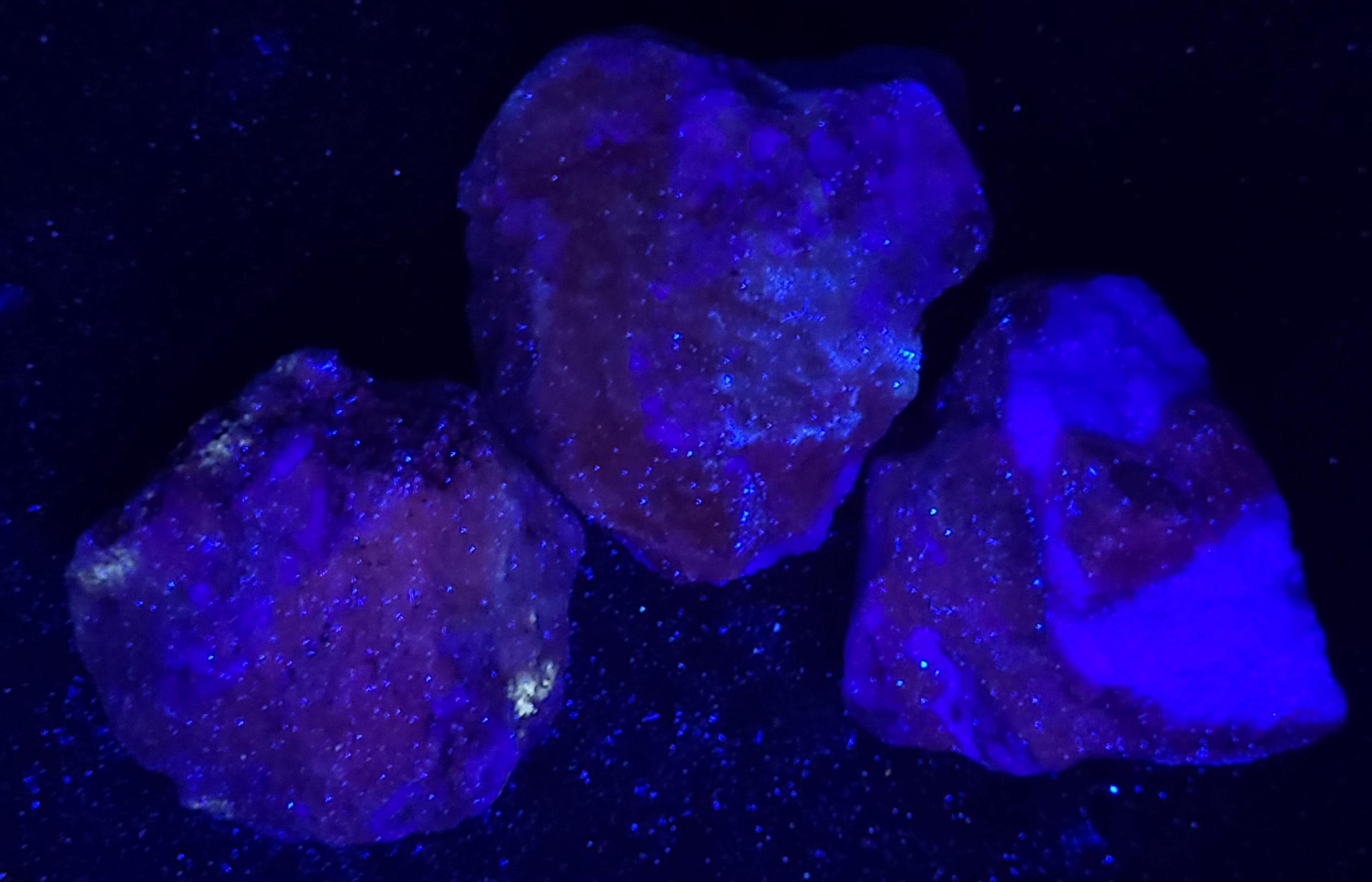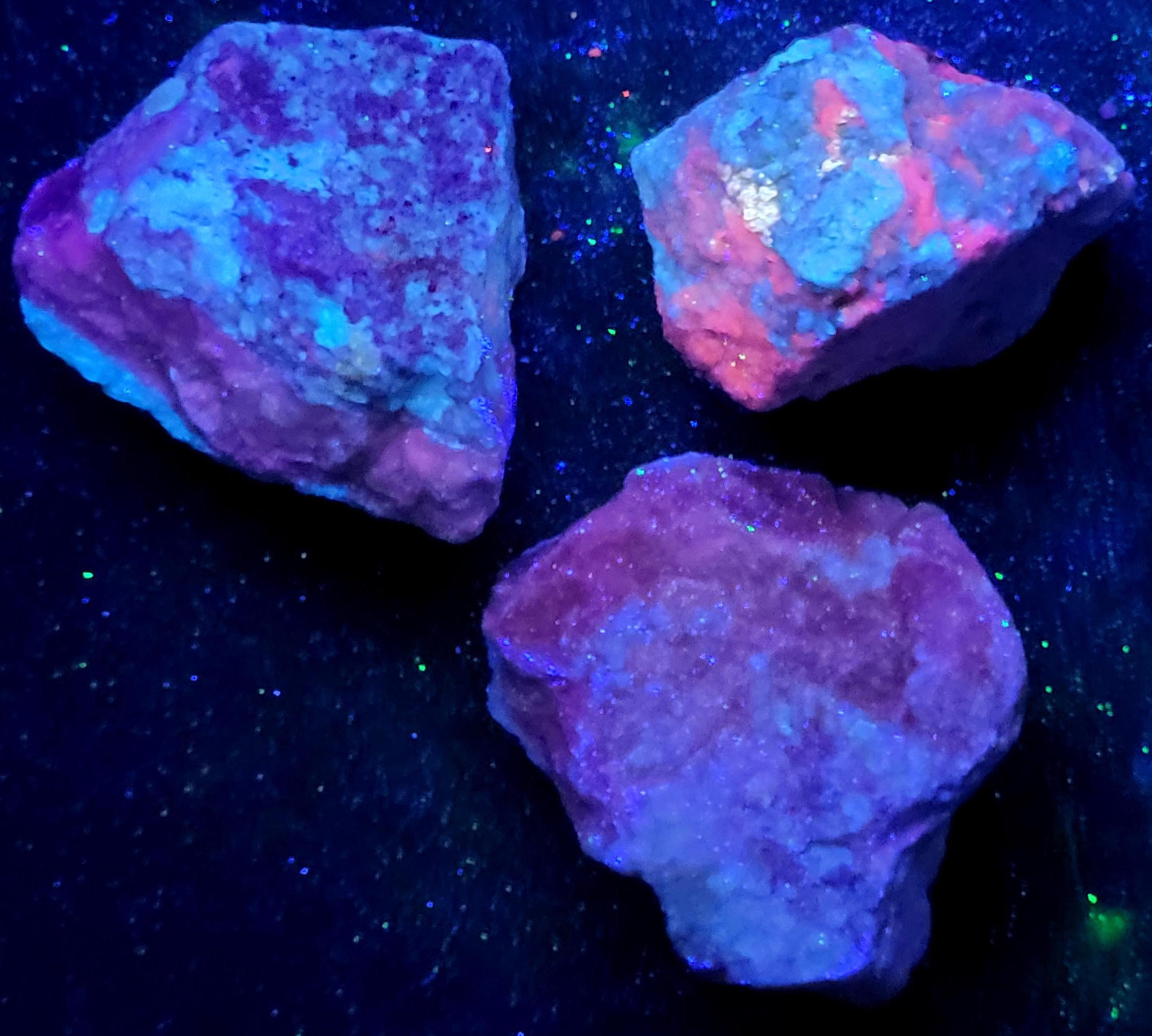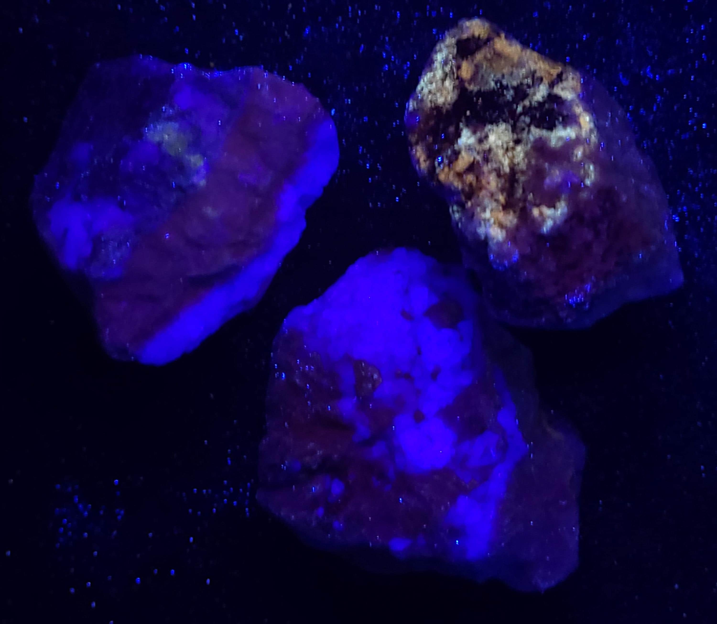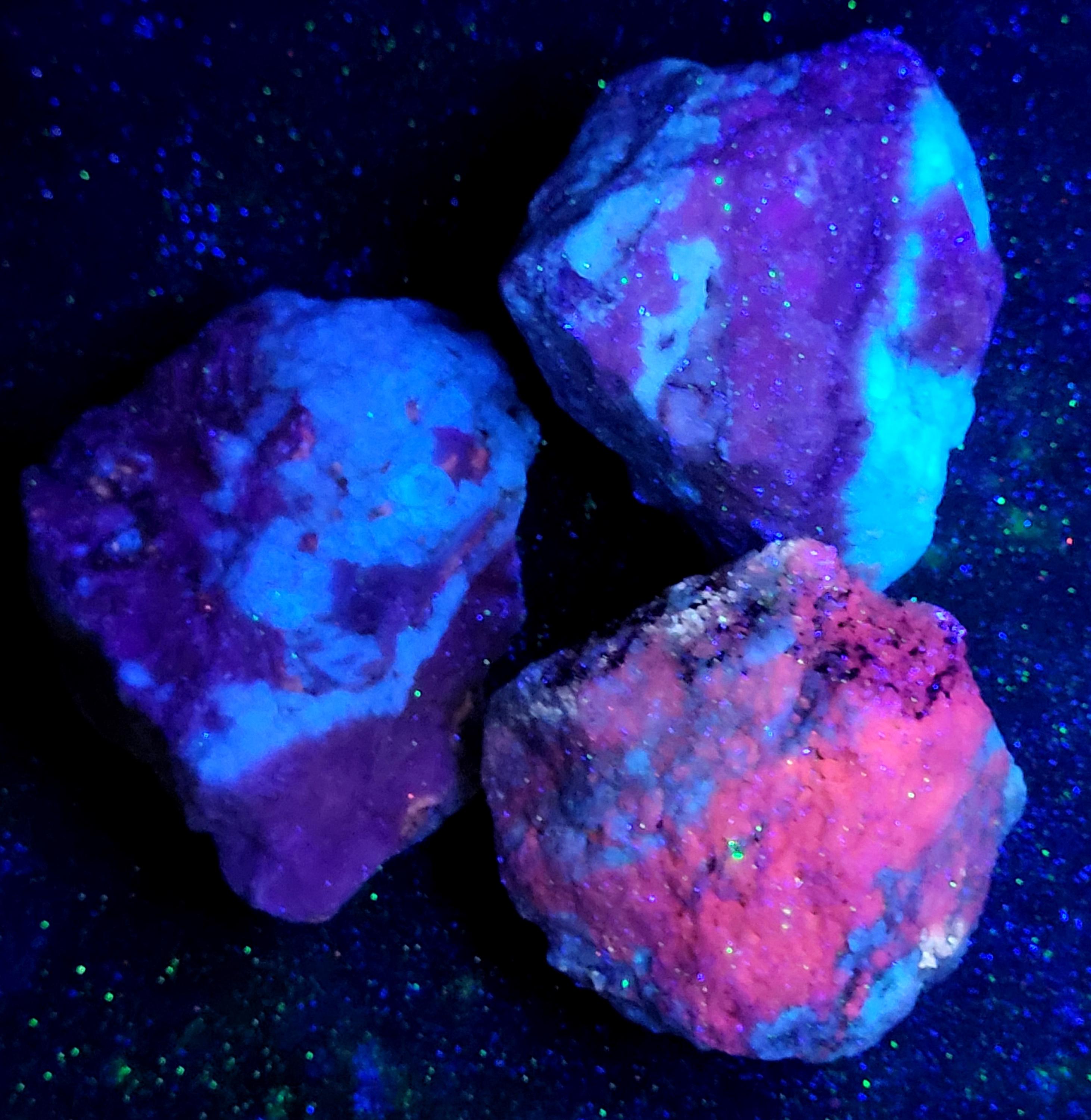 Lot of 3x Very Nice SW MW LW Ultraviolet Fluorescent Fluorite & Calcite Mineral Specimens!