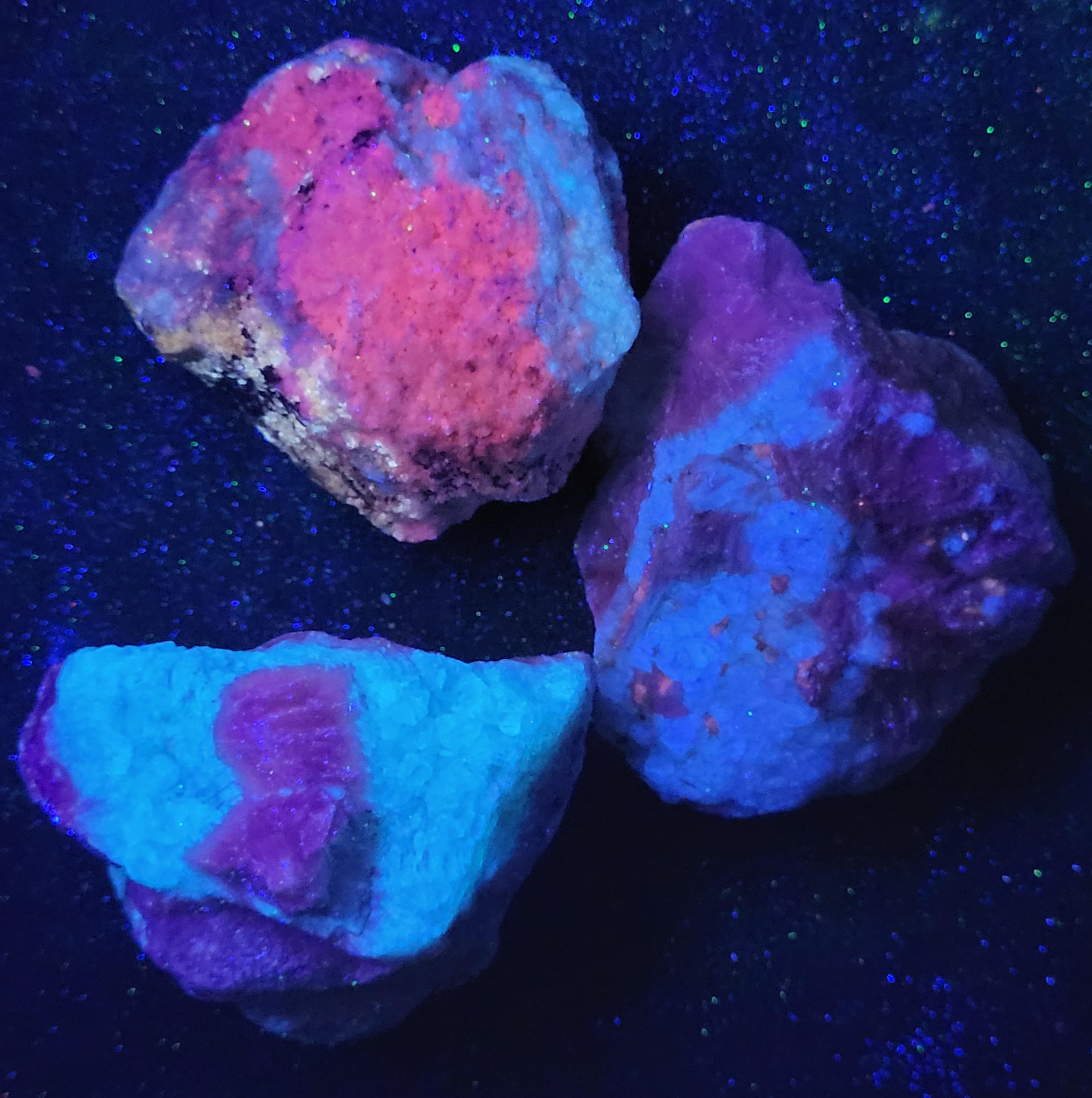 The First 3 Fluorescent Pics Show the Shortwave UV Responses Using a 35w WayTooCool SW UV Lamp. The Last 3 Fluorescent Pics Show the Longwave UV Response with a Convoy C8+ 365nm LED Flashlight. Also Look Great Under MW UV (NOT Shown) Too!