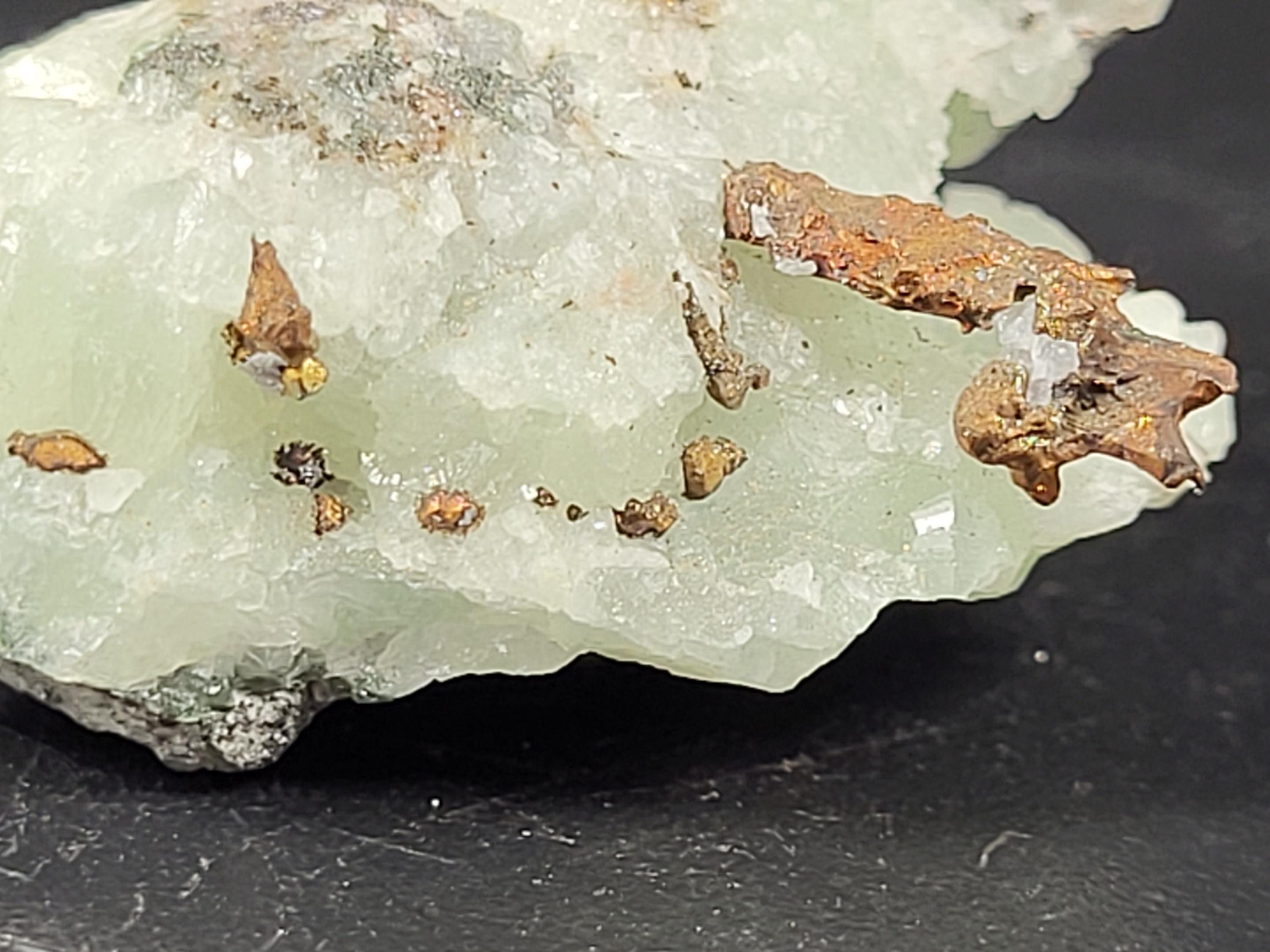Gorgeous, Rare Combination of Native Copper on Green Prehnite Crystals from Michigan!