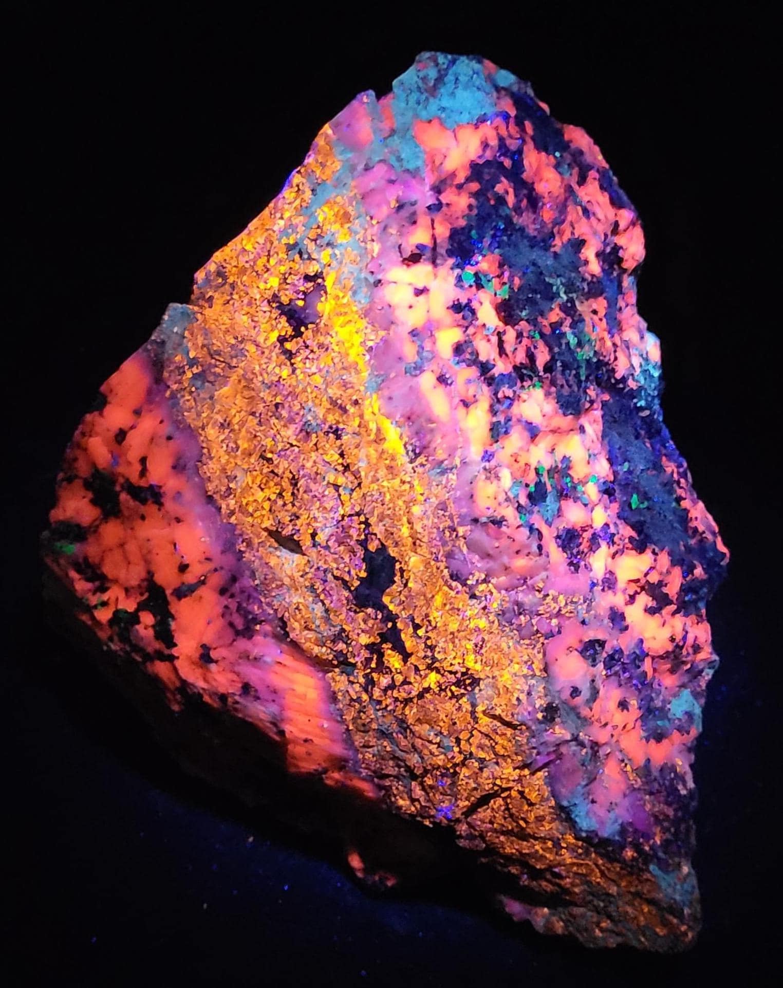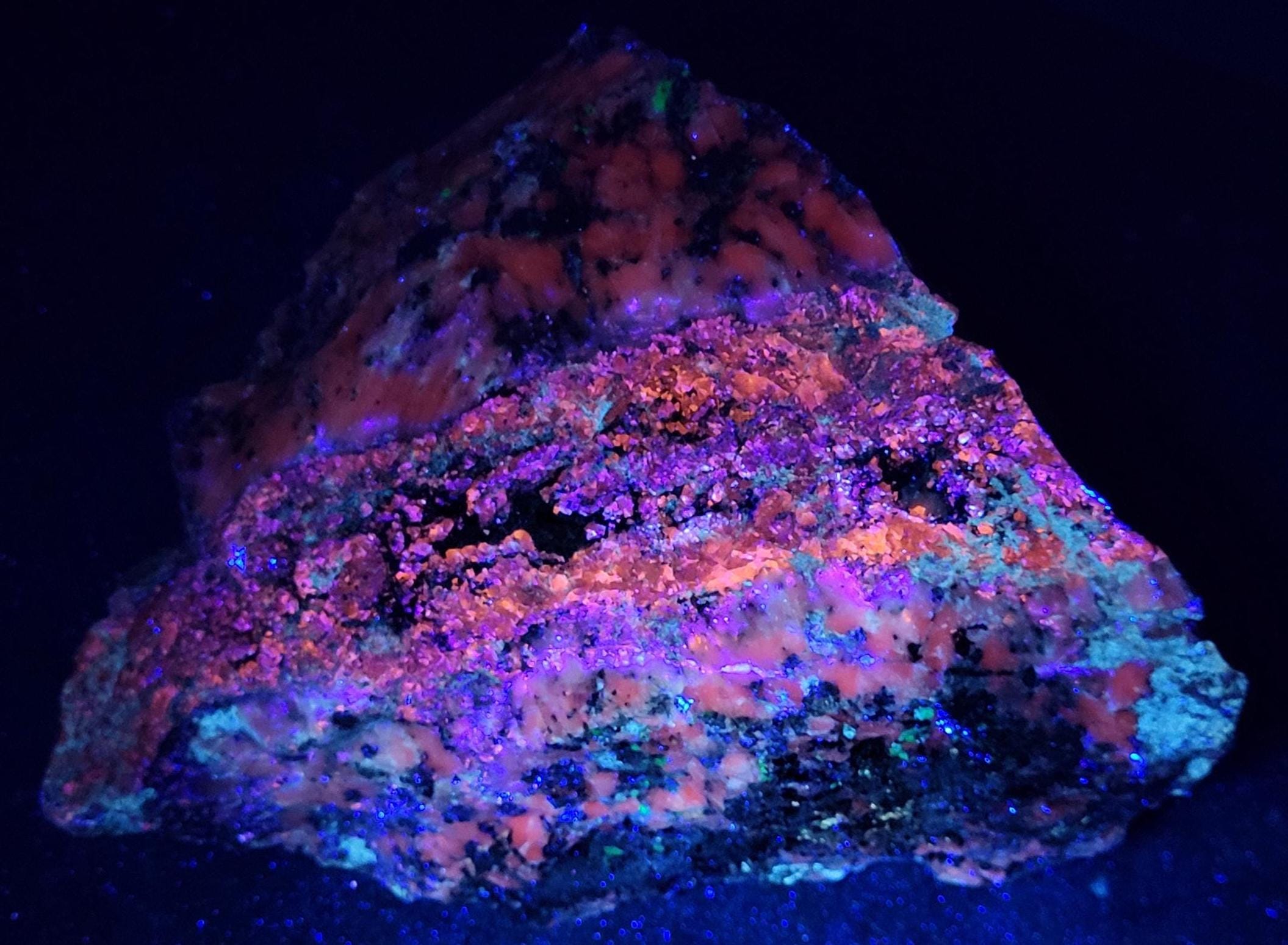 The First 4 Fluorescent Pics Show the Shortwave UV Fluorescent Response and were taken Using a WayTooCool 35 Watt SW UV Light. The Next 4 Show the Midwave (MW) Response Using an FS Hunter L6 Pro 310nm LED Flashlight. The Last 3 Show the Longwave (LW) UV Response under a Convoy C8+ LED LW UV Flashlight.