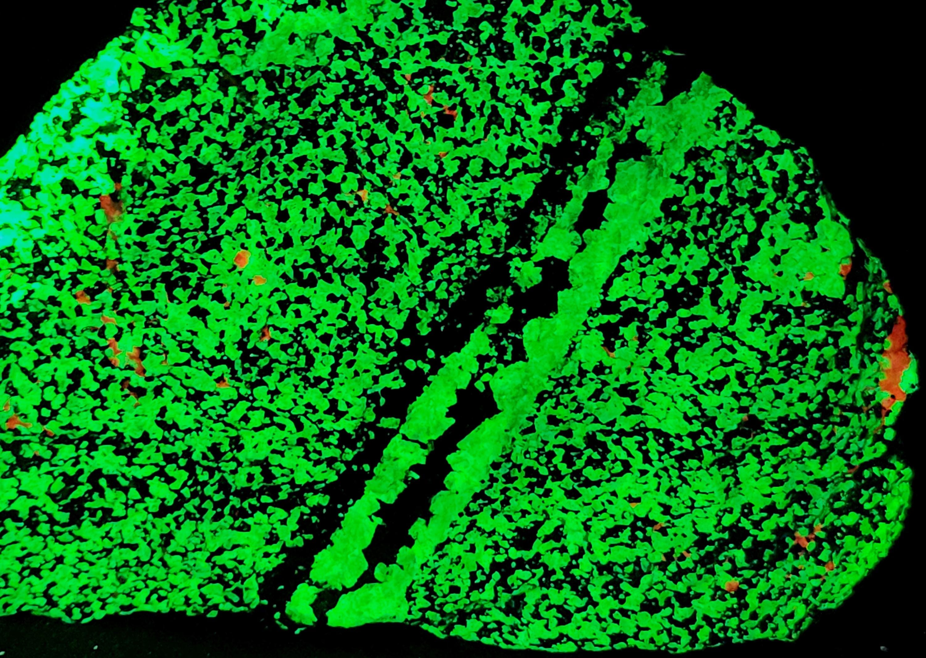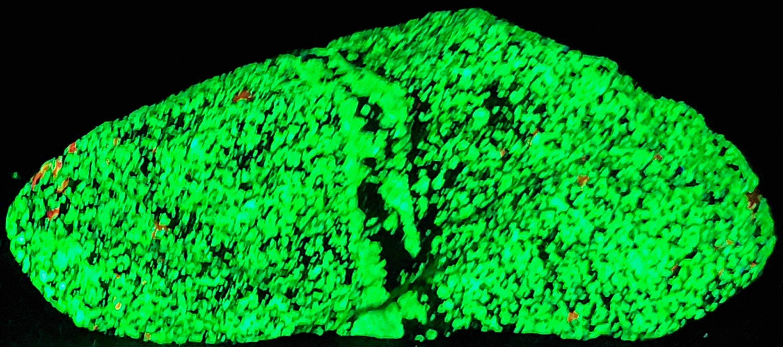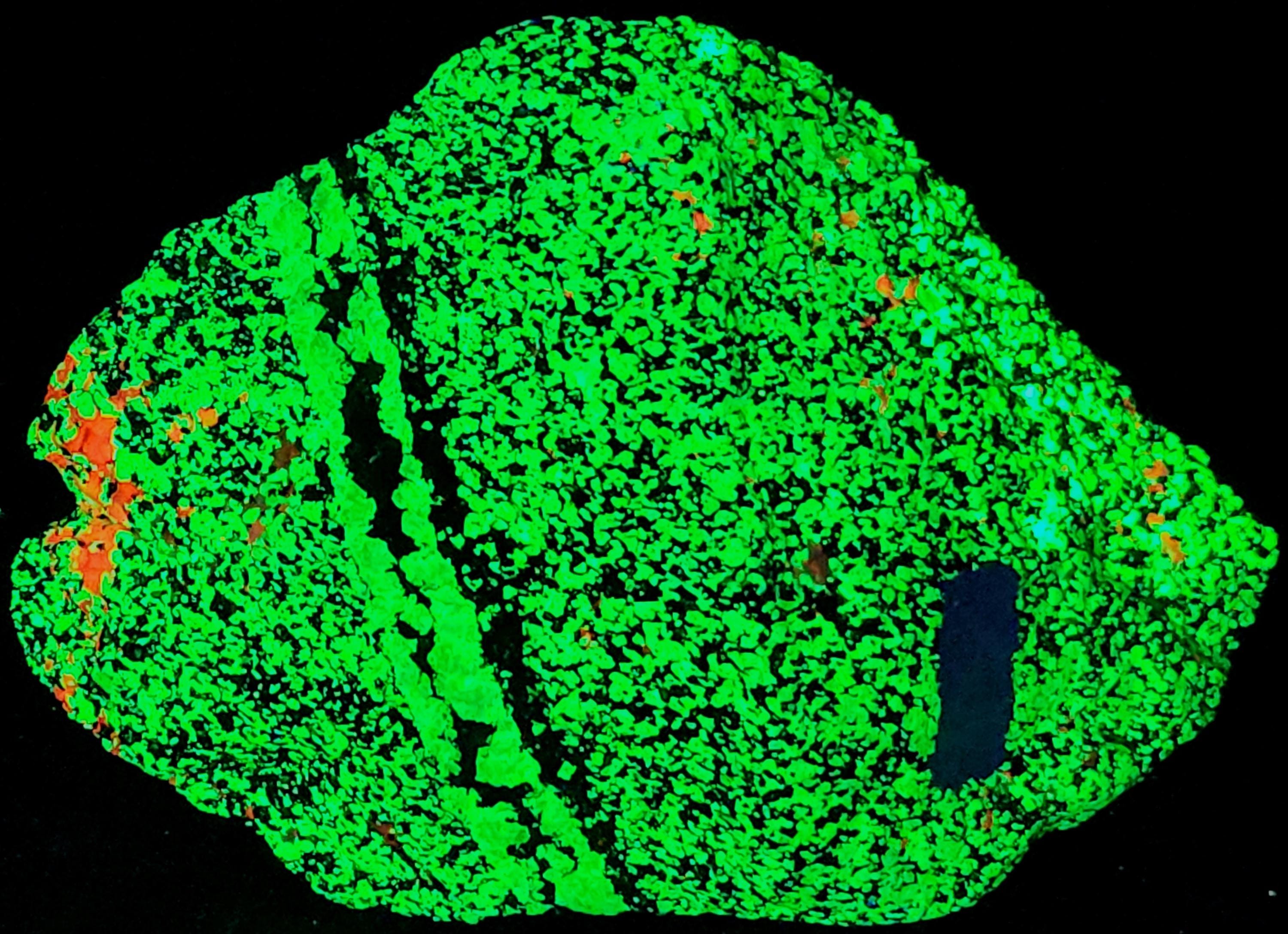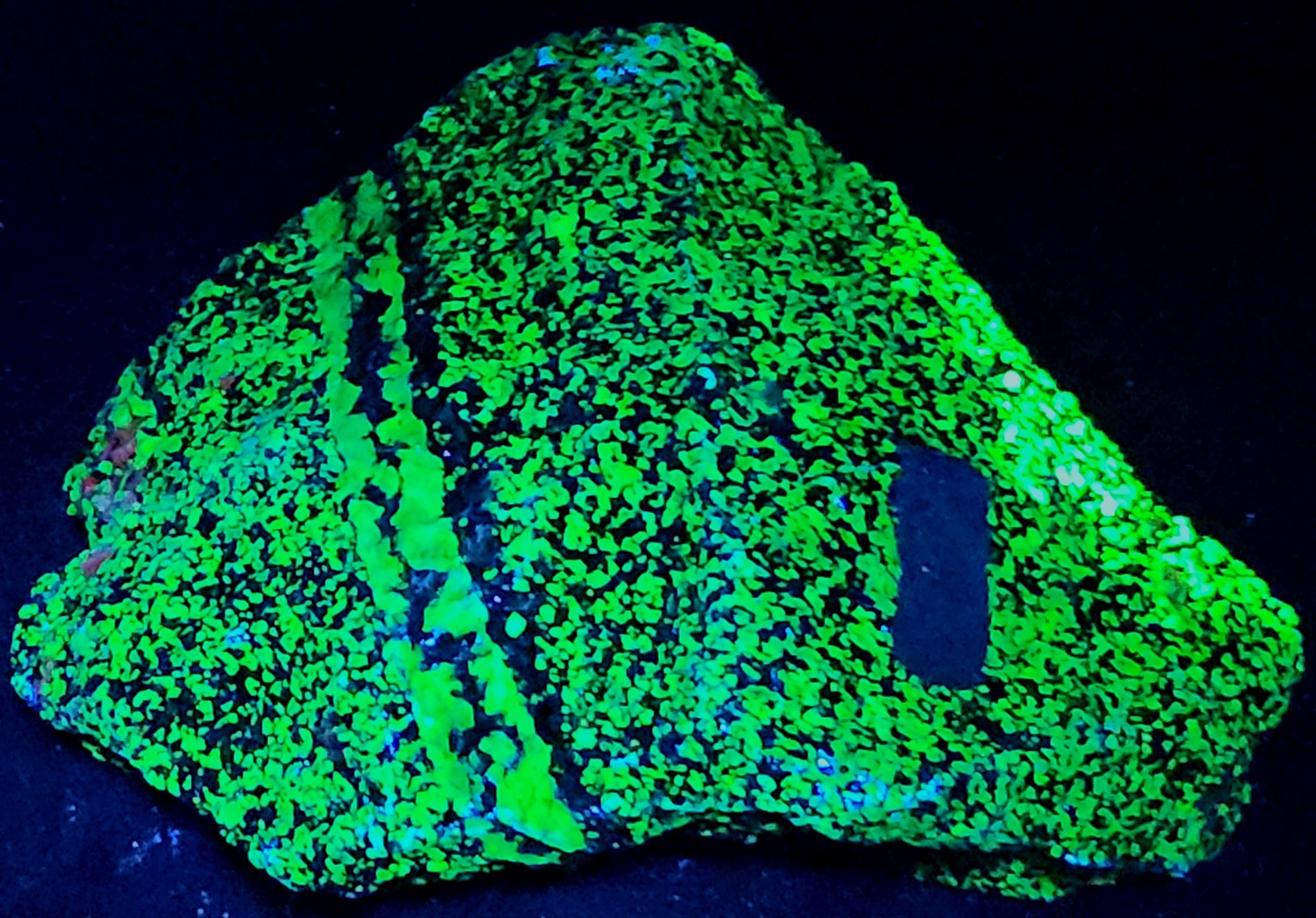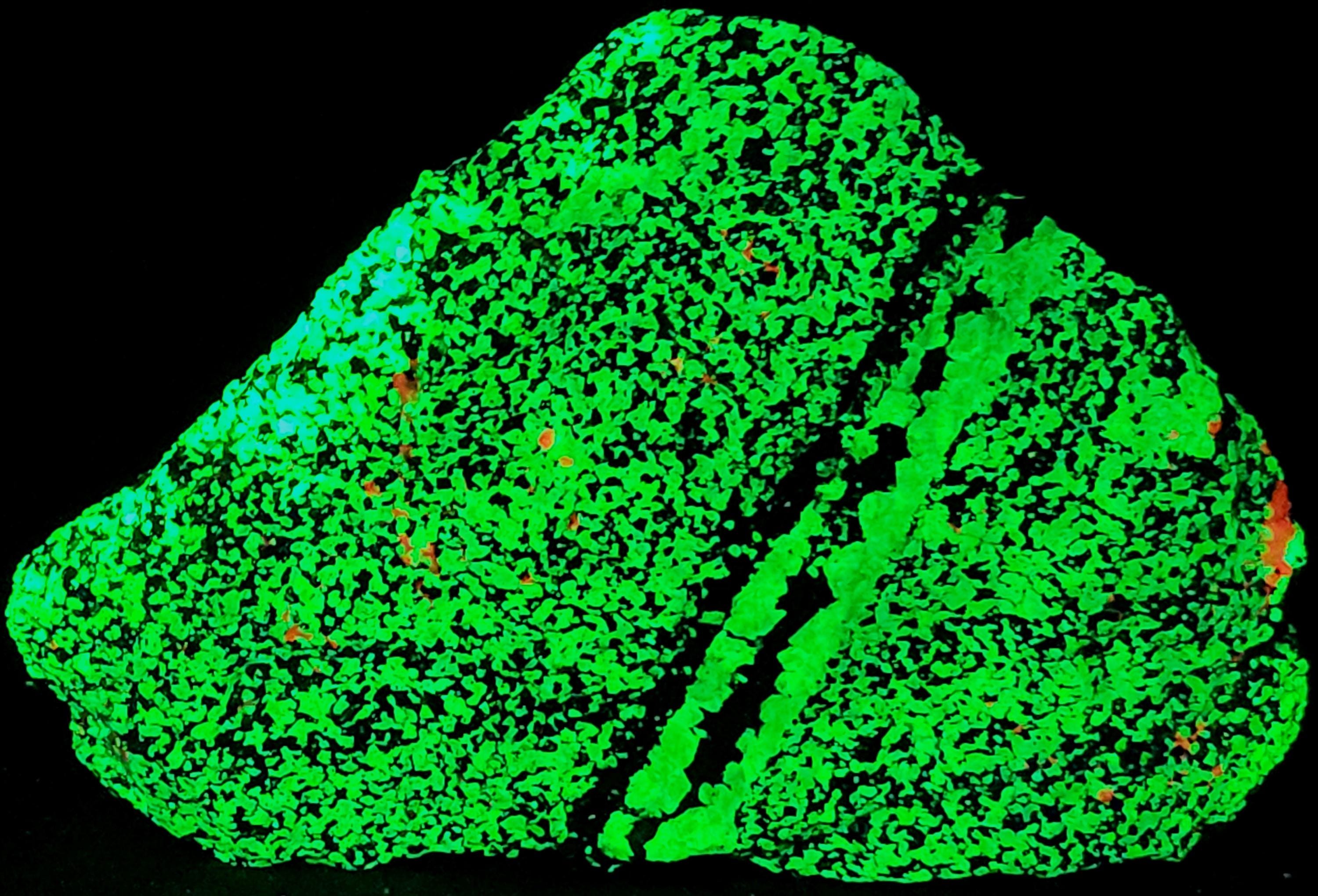 Fluorescent Willemite (Bright Green SW & LW) & Calcite (Bright Red/Orange SW & Dull Pink/Red LW)