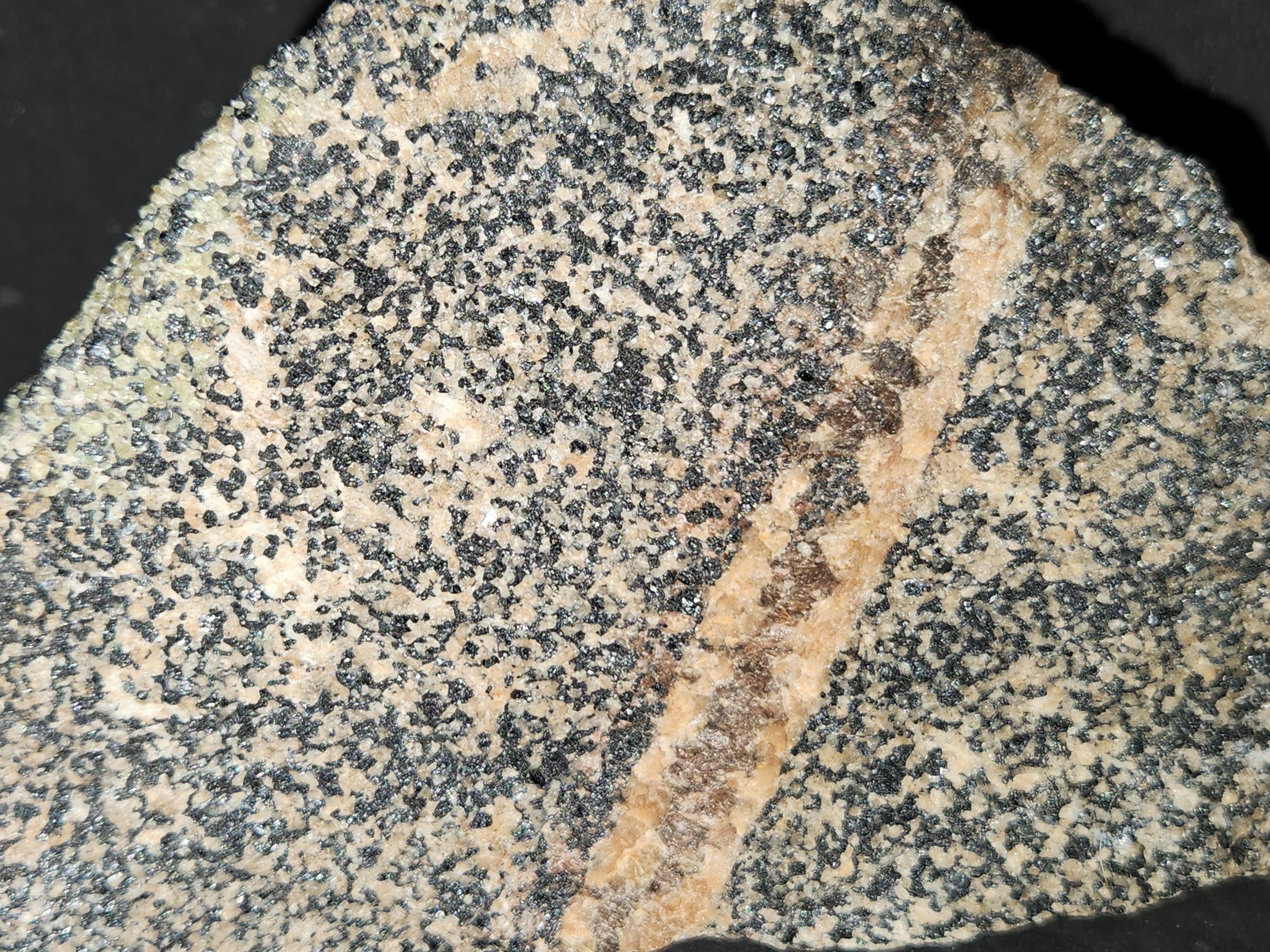 Very Nice Piece with Unusual Vein of Willemite & Tephroite? through a Matrix of Willemite, Franklinite & a bit of Calcite!