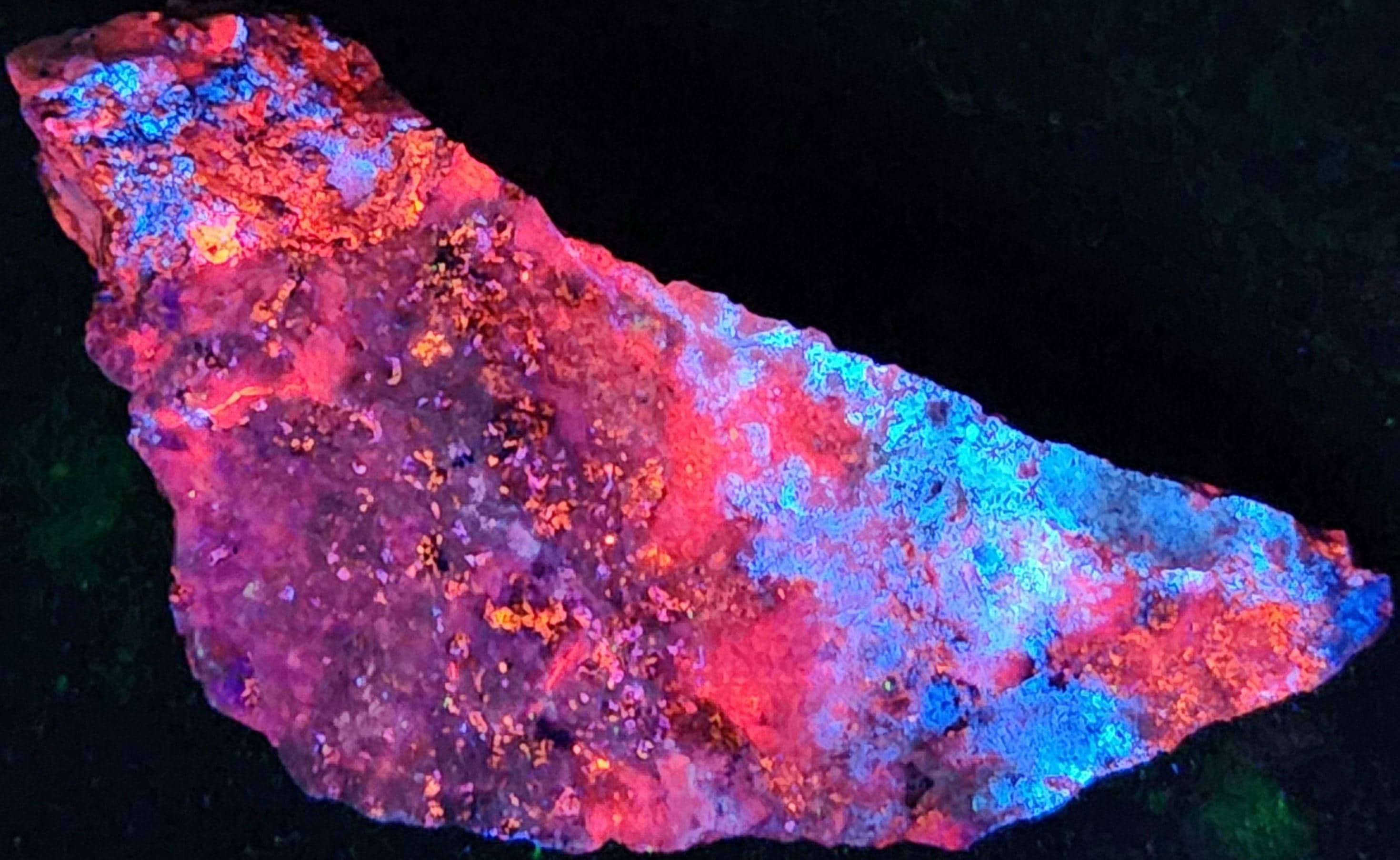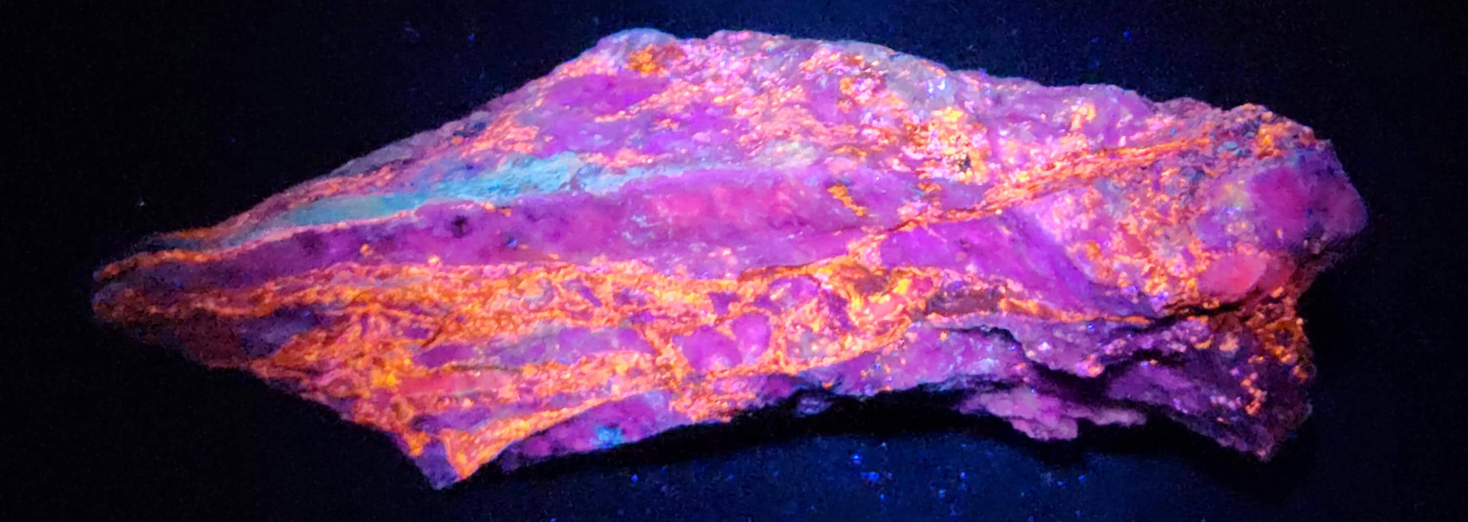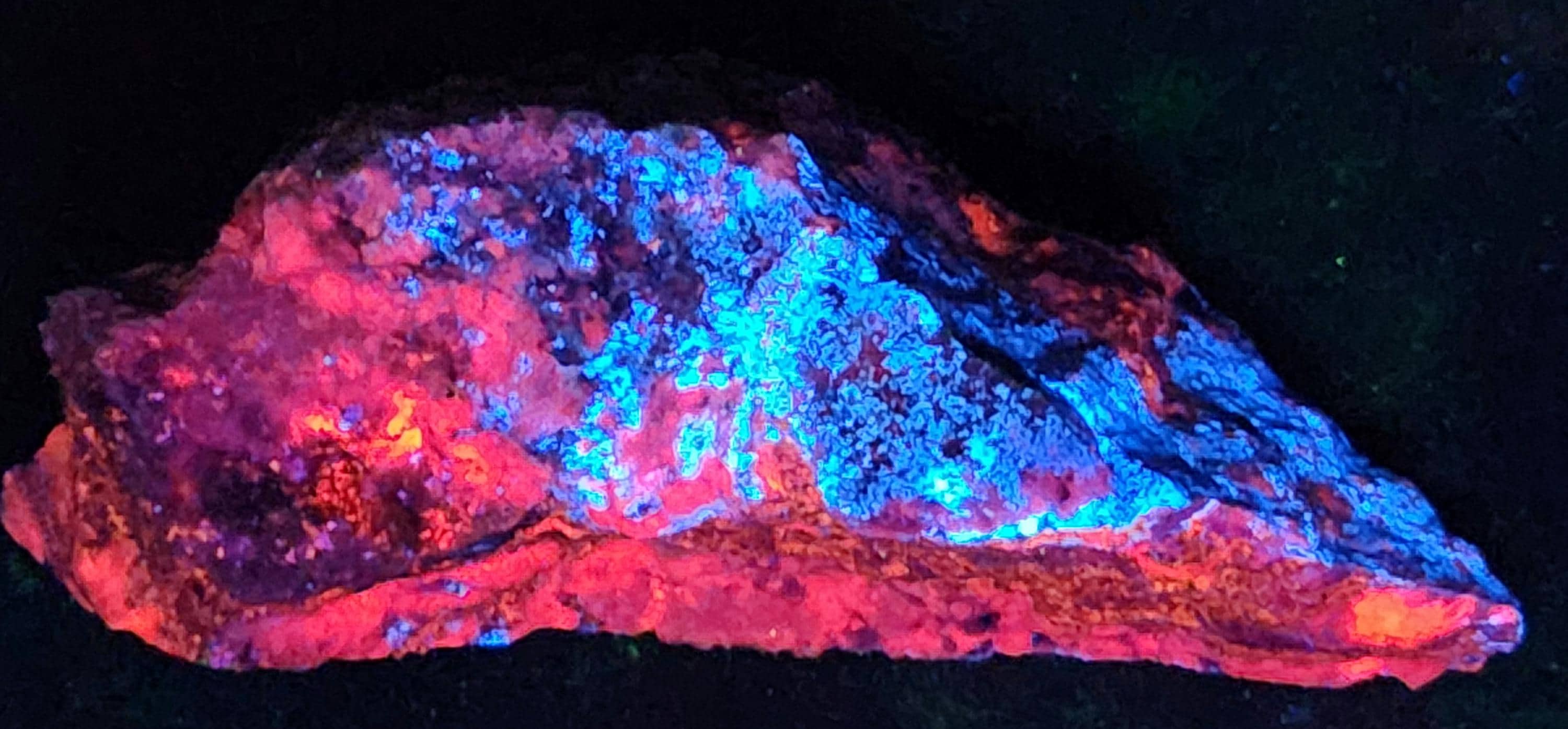 Fluorescent Hydrozincite (Bright Blue-White SW/MW/LW), Sphalerite (Orange/Red SW, Bright Orange/Red/Pink MW & Bright Orange/Pink/Purple/Blue LW + LW Phosphorescent Too!!!) & Calcite (Bright Red/Orange SW, Bright Pink/Purple MW & Dull Pink/Purple LW)