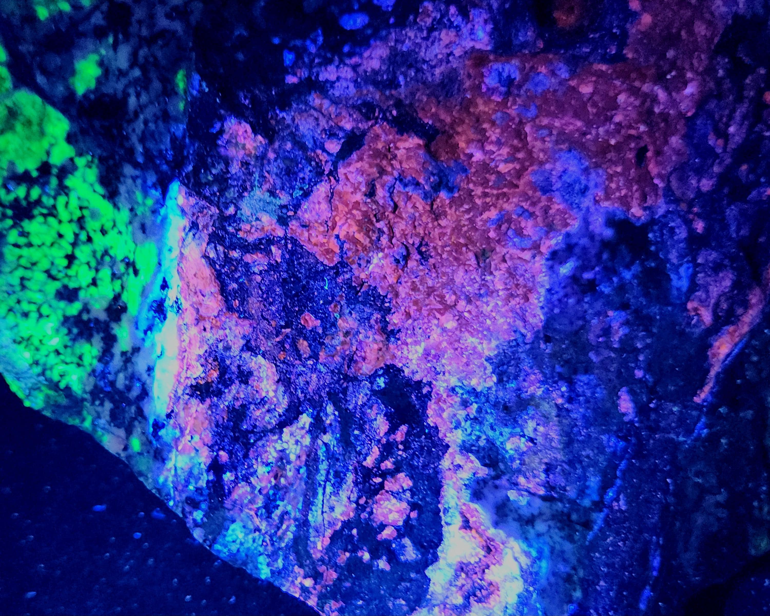 The First 5 Fluorescent Pics Show the Longwave (LW) UV Response under a Convoy C8+ 365nm LED Flashlight, and Pic 6 Shows the LW Phosphorescence After Turning Off the Light. The Last 3 Fluorescent Pics Show the Shortwave UV Fluorescent Response and were taken Using a WayTooCool 35 Watt SW UV Light.
