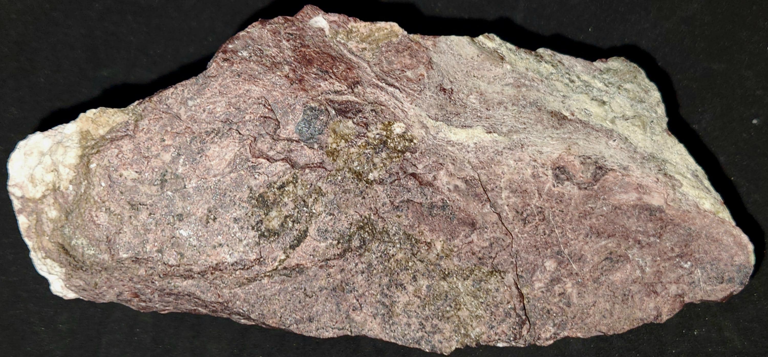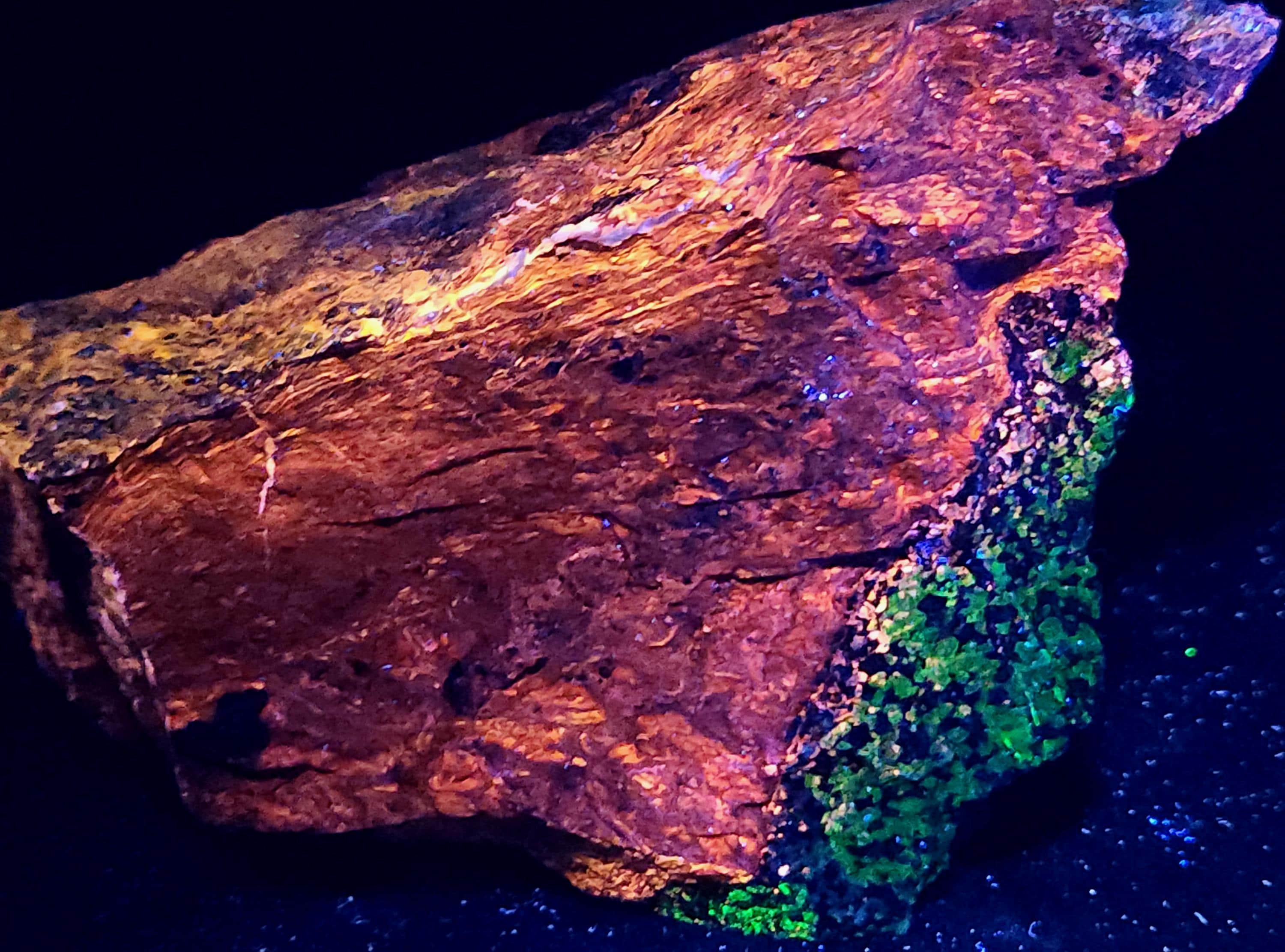 Fluorescent Thick Vein of Mahogany Sphalerite (Dull Red/Orange/Pink SW & Bright Orange/Red/Purple/Pink/Blue LW) & Willemite (Bright Green SW & Duller Green LW)