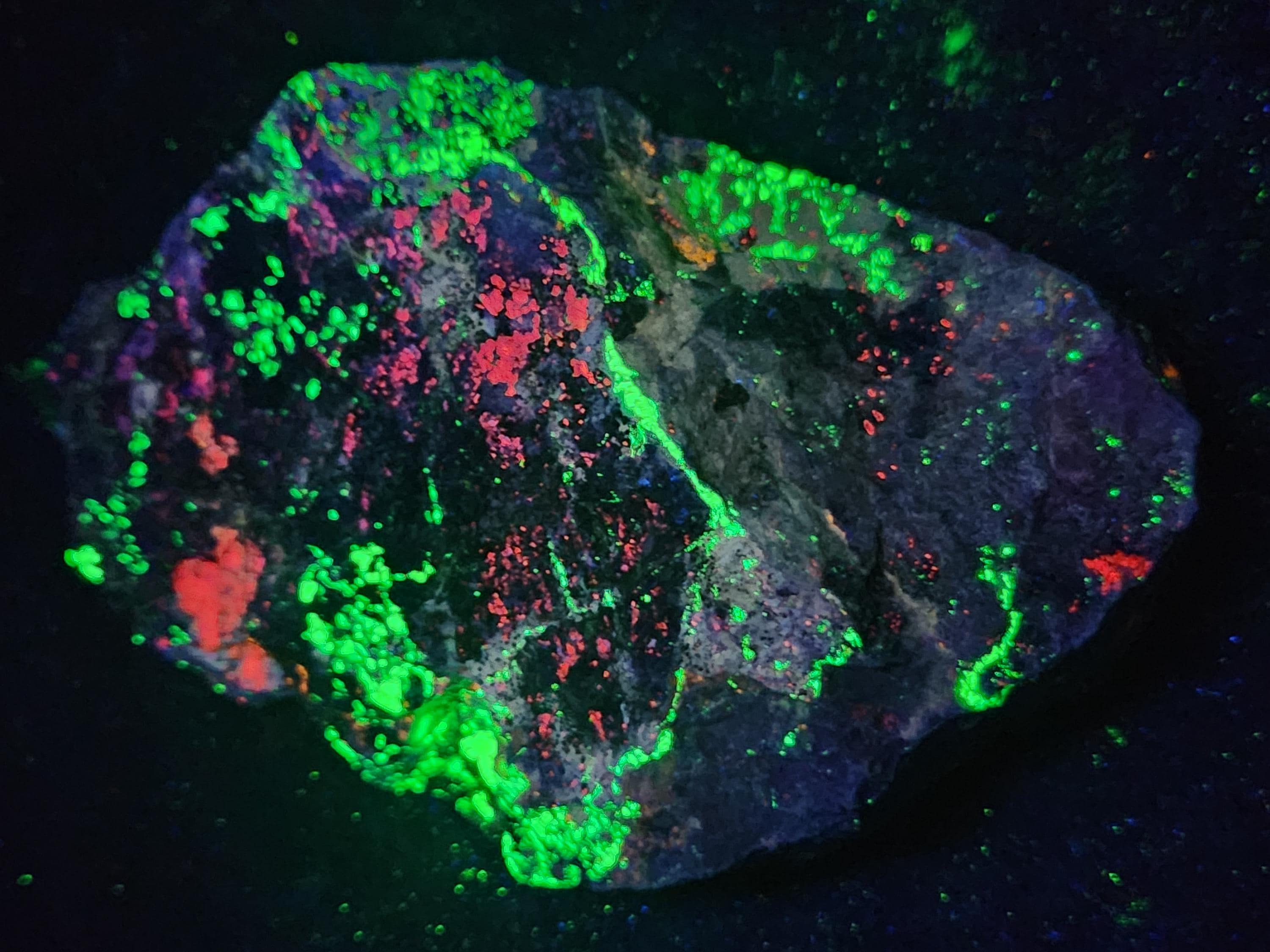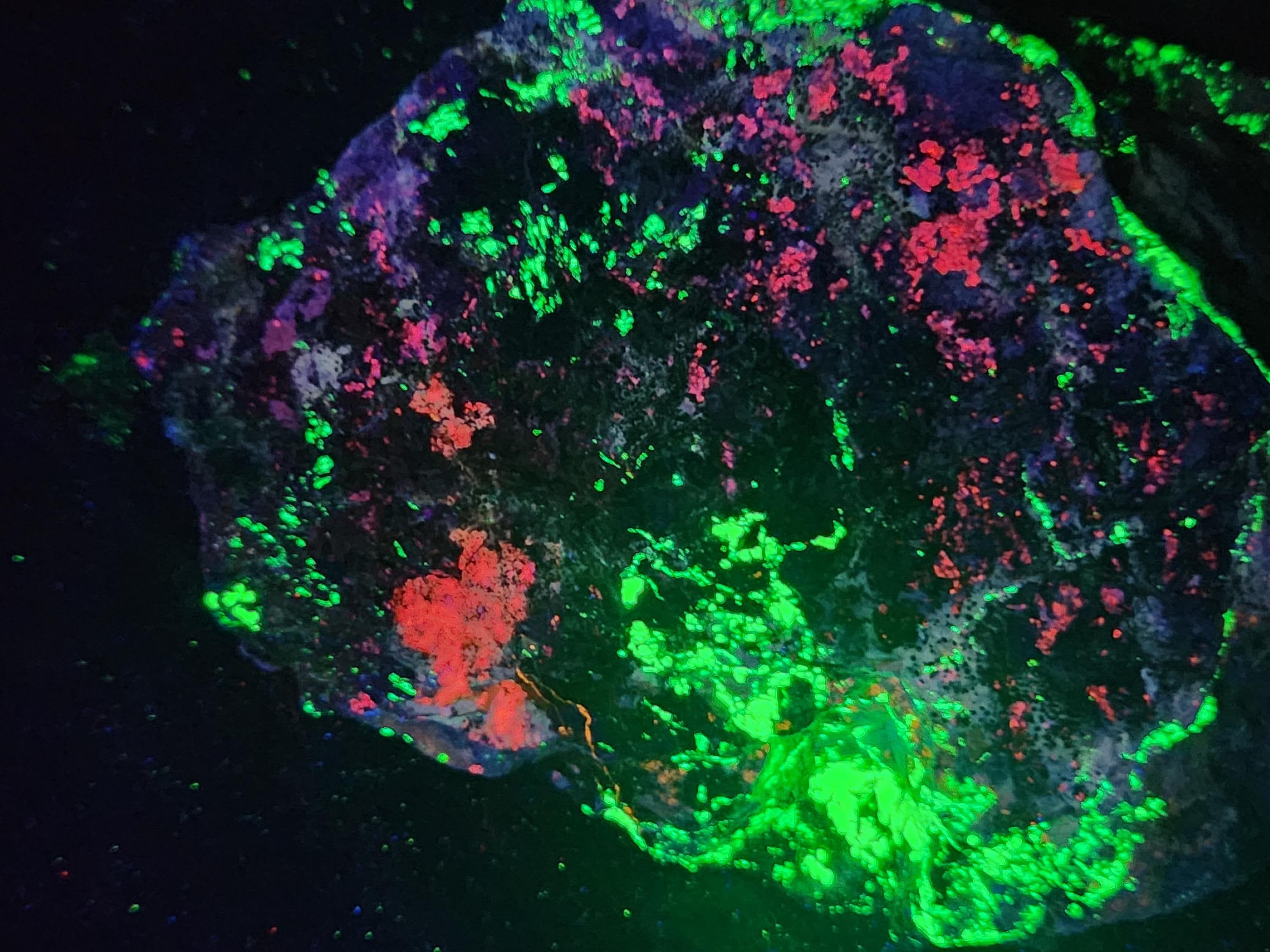 The First 8 Fluorescent Pics are Shortwave (SW) UV Light & were Taken Using a 35w WayTooCool SW UV Light. The Last 3 Fluorescent Pics Show the Midwave UV Response Using an FS Hunter L6 Pro 310nm LED Flashlight.
