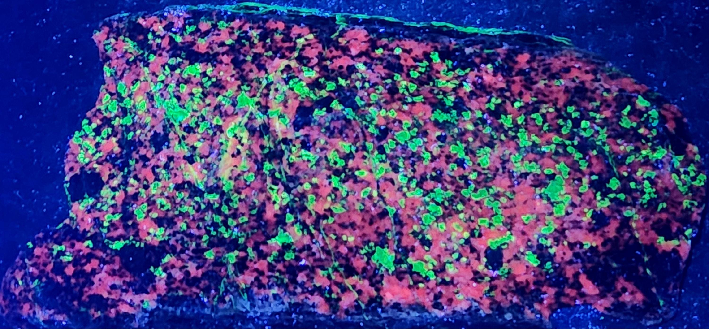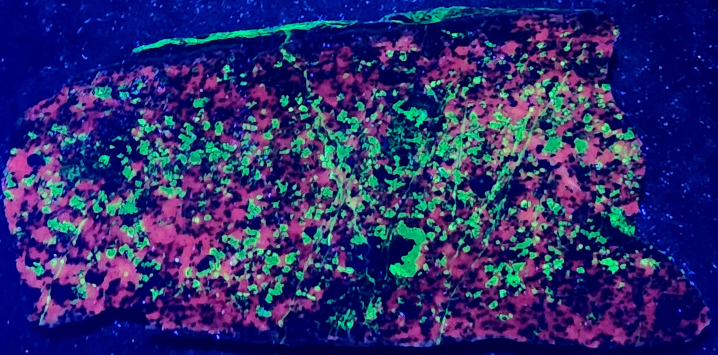 Fluorescent Willemite Veins (Bright Green SW, MW & LW + Very SW Phosphorescent To!!!) in Calcite (Bright Red/Orange SW & Pink/Red MW, LW)