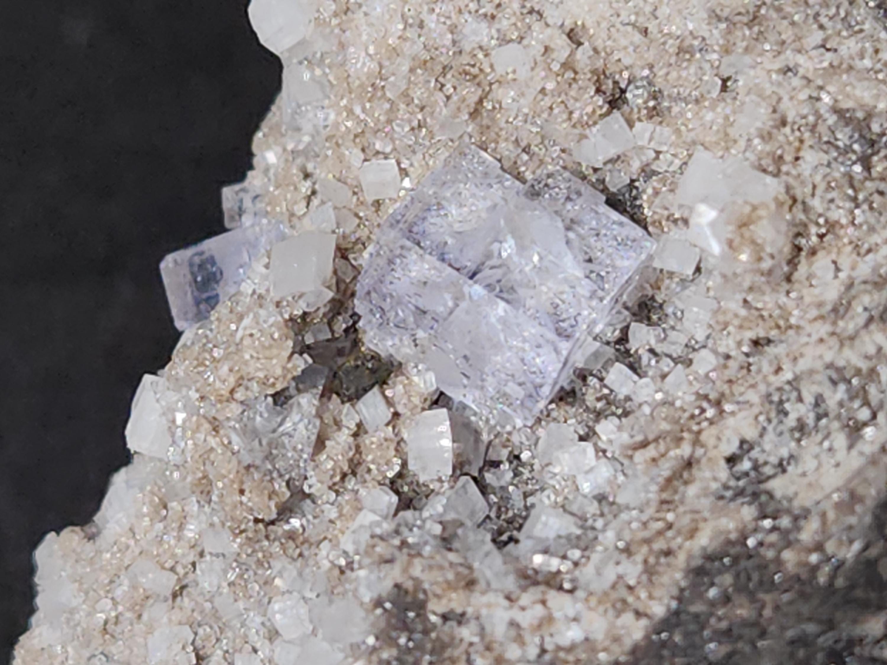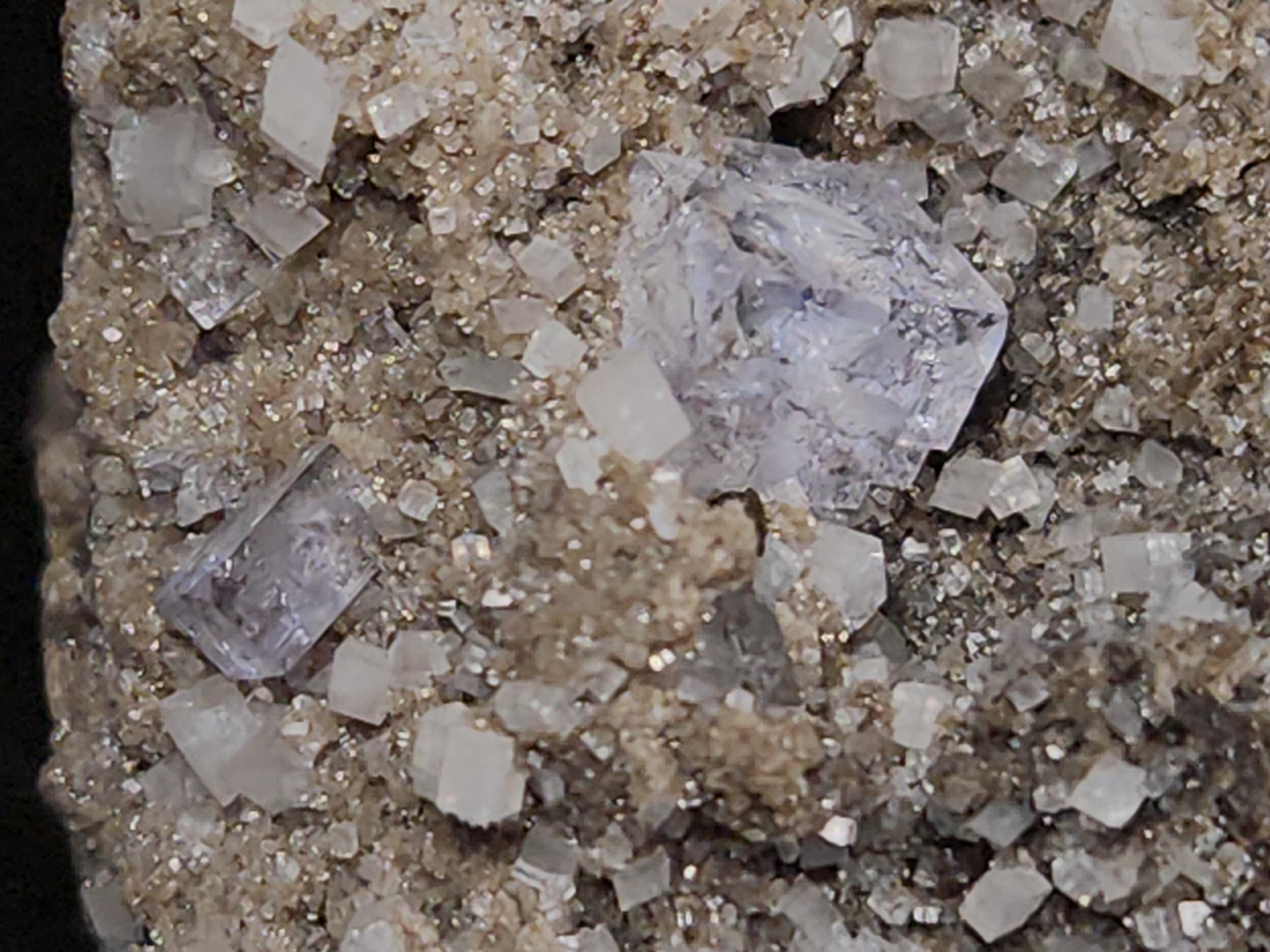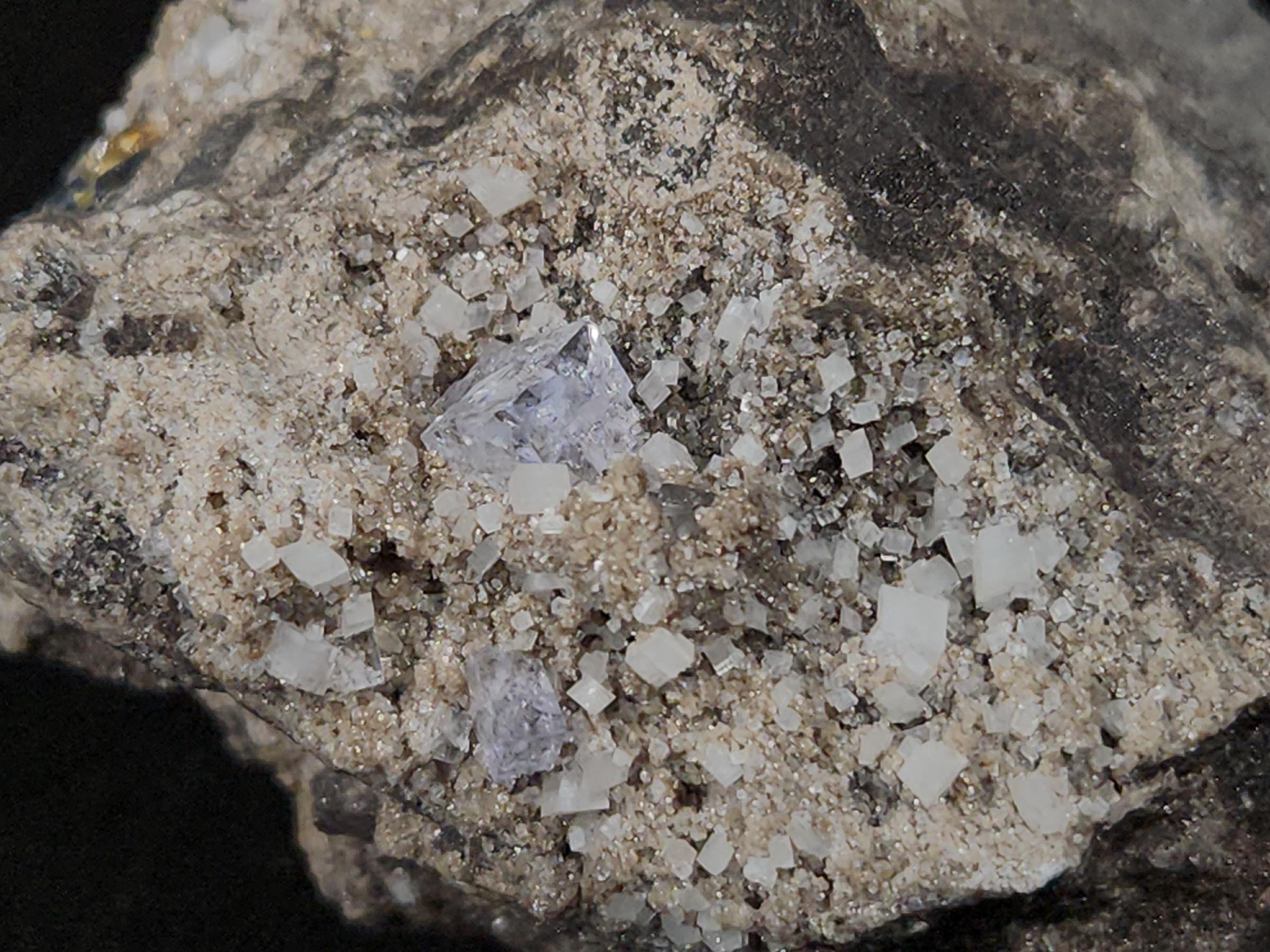 Gorgeous Specimen with 2 Tiny Beautiful, Clear Ice Blue Fluorite Crystals Nestled Among Dolomite & Calcite Crystals from New York State!