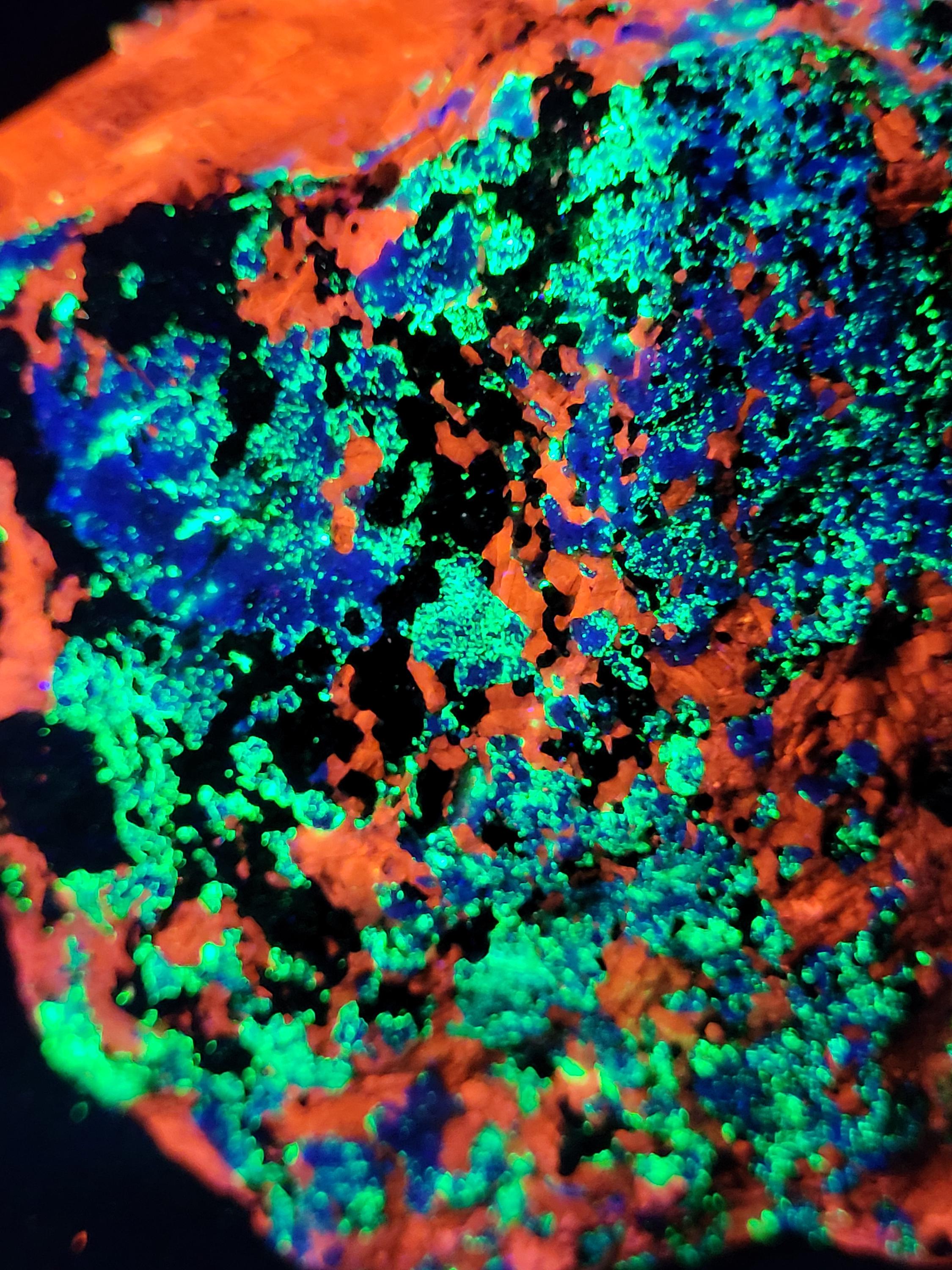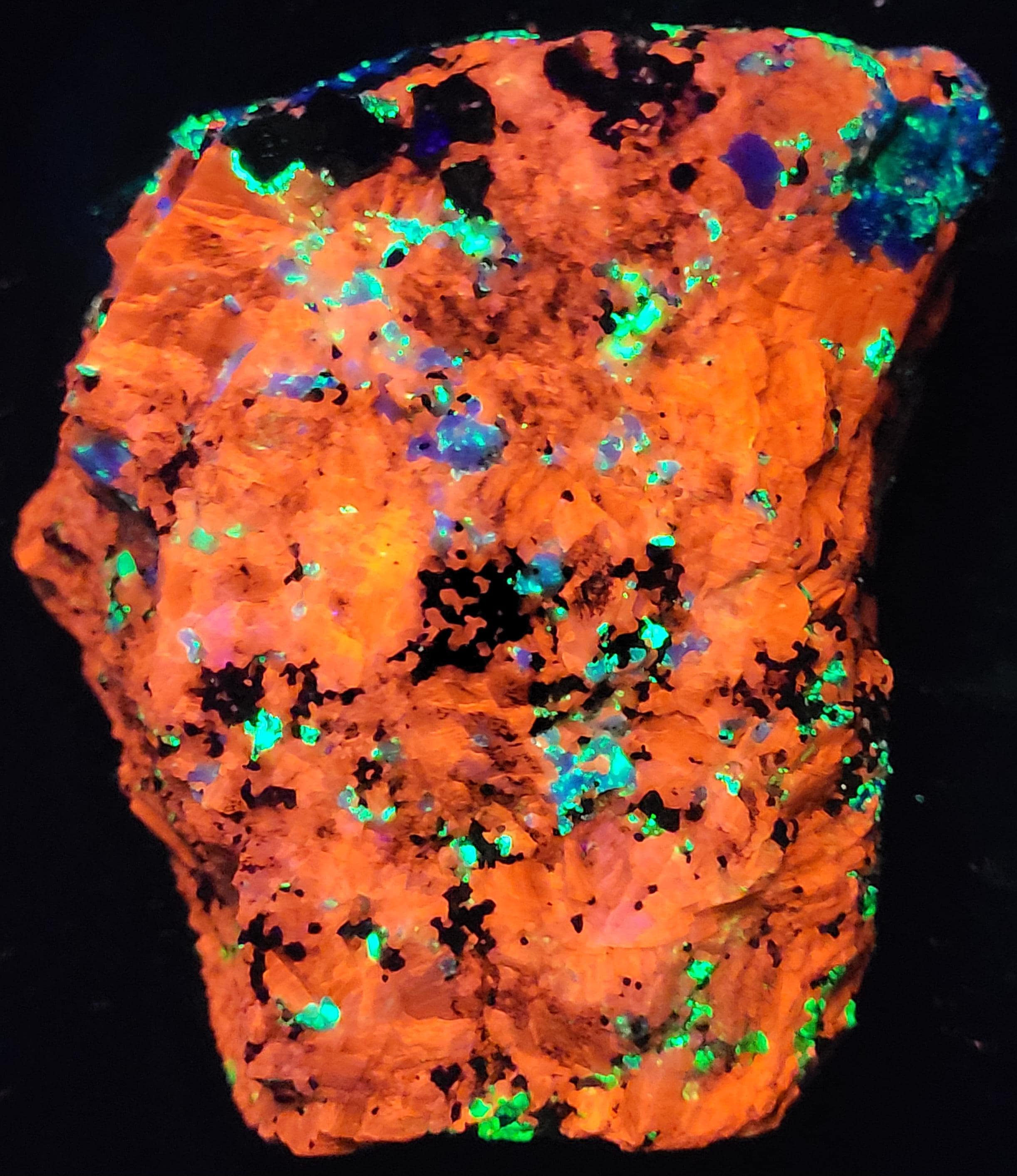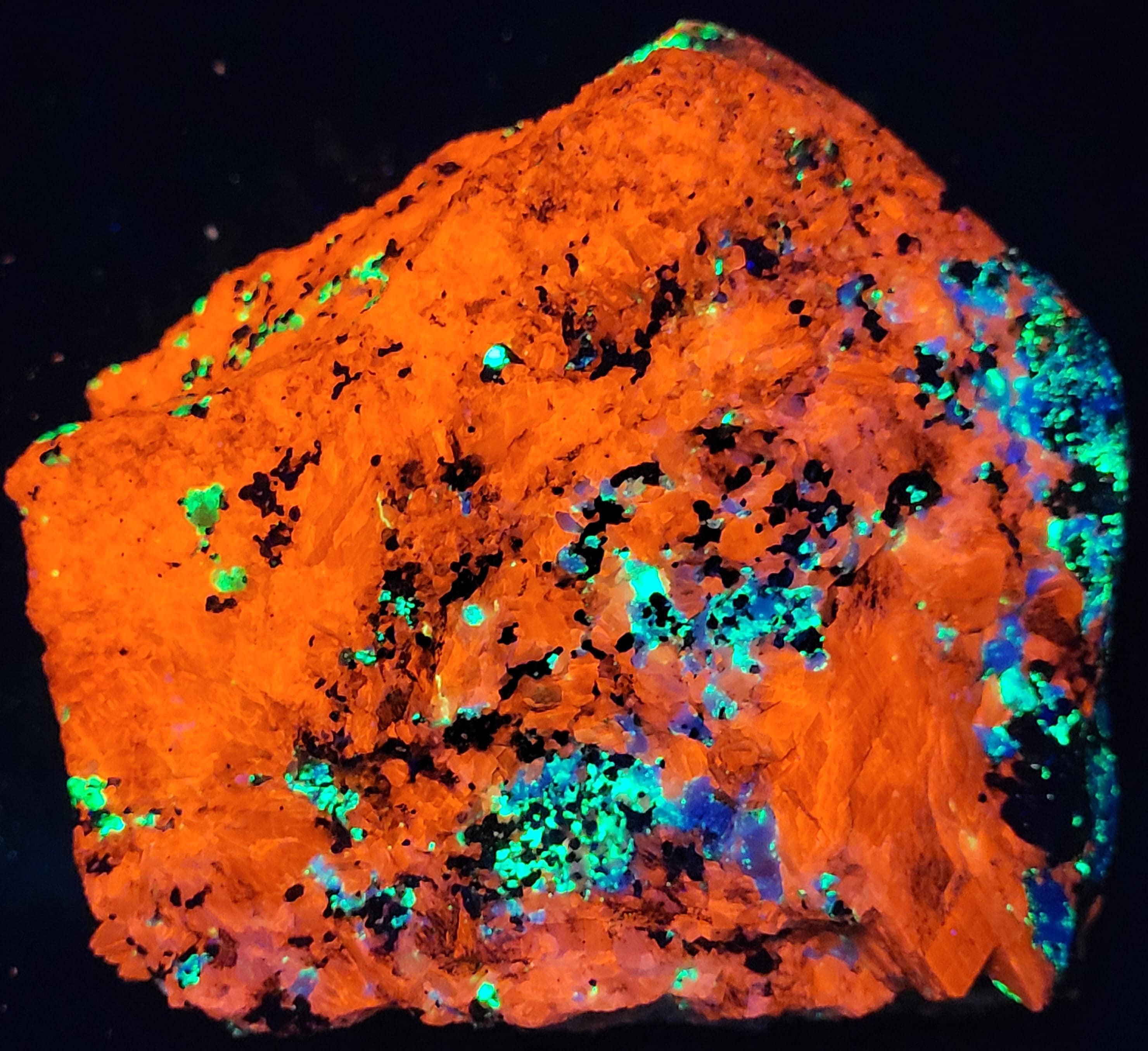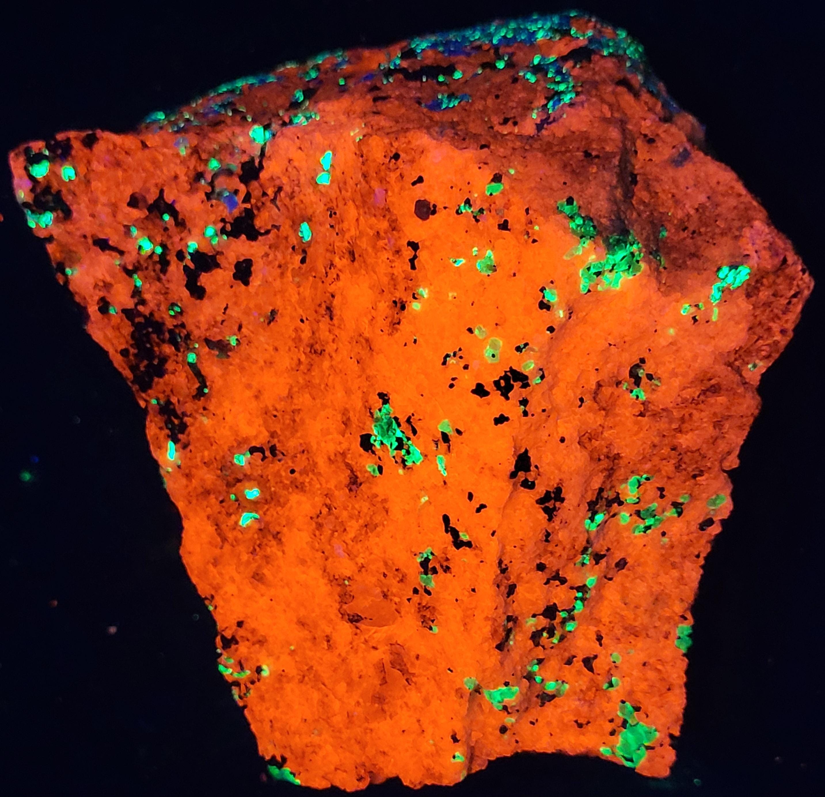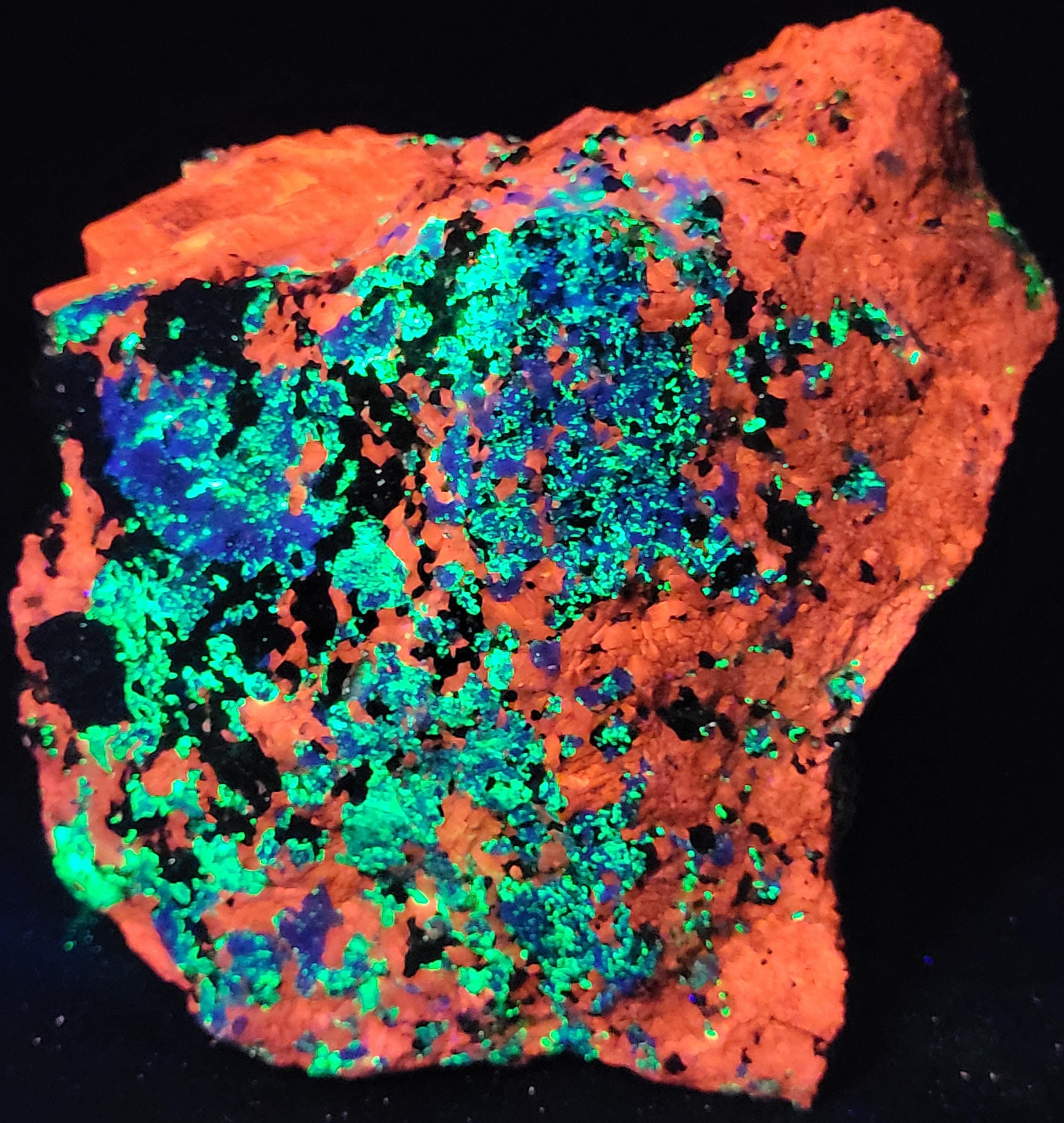 Fluorescent Hardystonite (Blue / Violet SW), Willemite (Bright Green SW & LW) & Calcite (Bright Red/Orange SW)