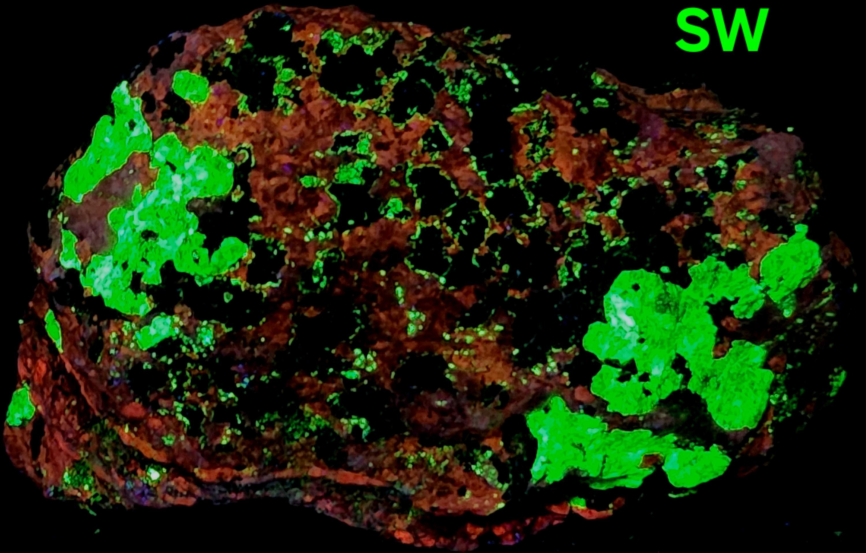Top A++ Classic Shortwave, Midwave & Longwave Fluorescent + LW Phosphorescent Mineral Specimen from the Sterling Hill Mine in New Jersey!