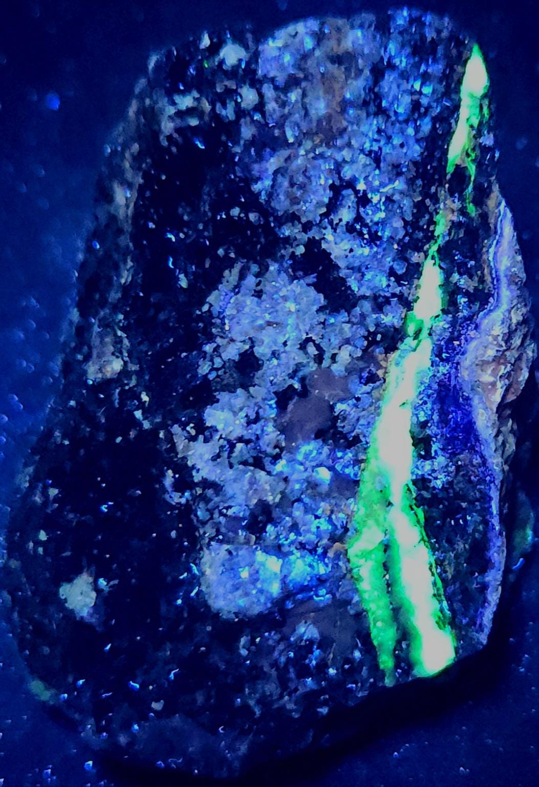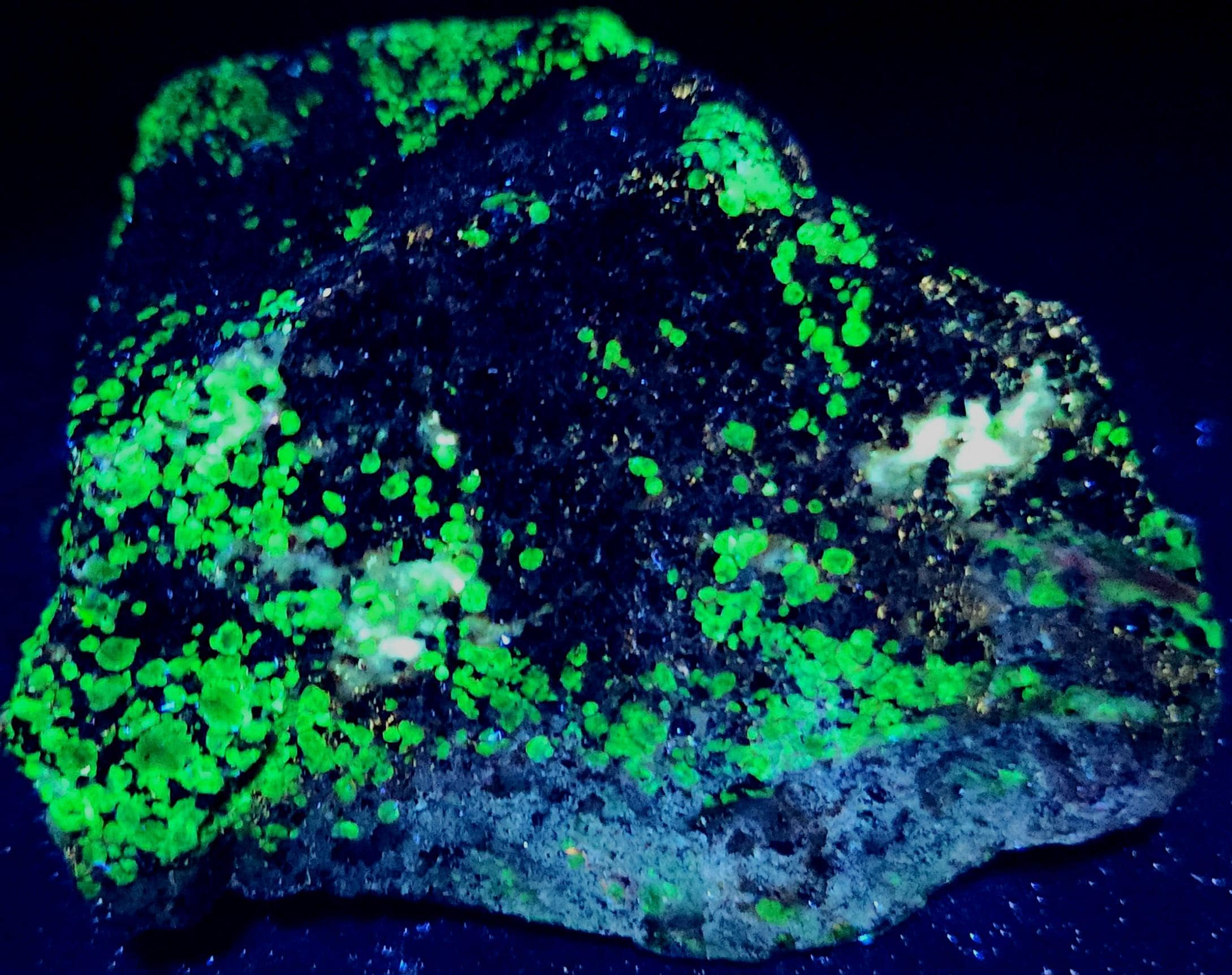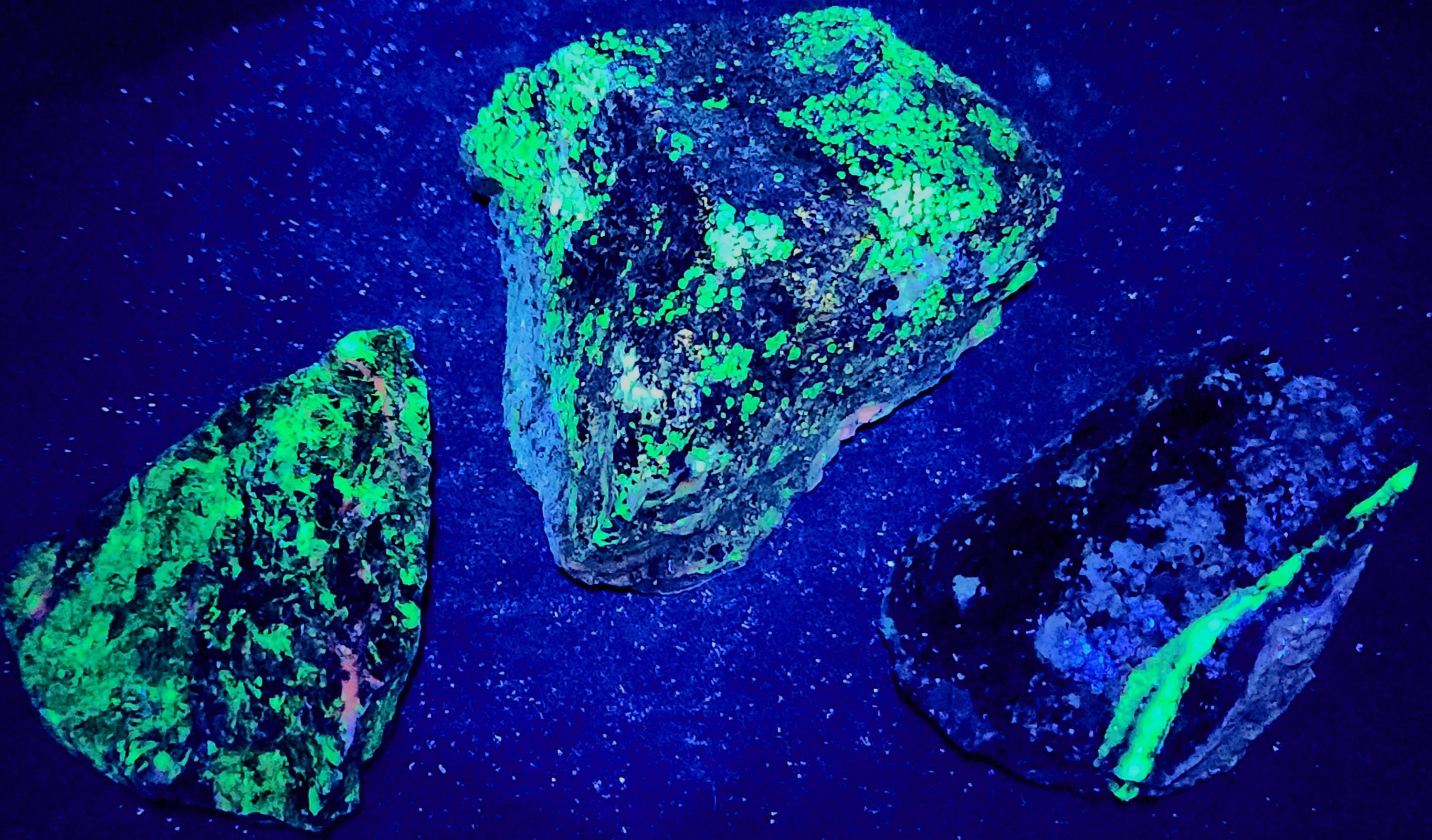 The First 4 Fluorescent Pics Show the Shortwave UV Fluorescent Response, All Taken Using a 35w WayTooCool SW Light. The Last 7 Fluorescent Pics Show the LW Response Using a Convoy C8+ 365nm LED Flashlight.