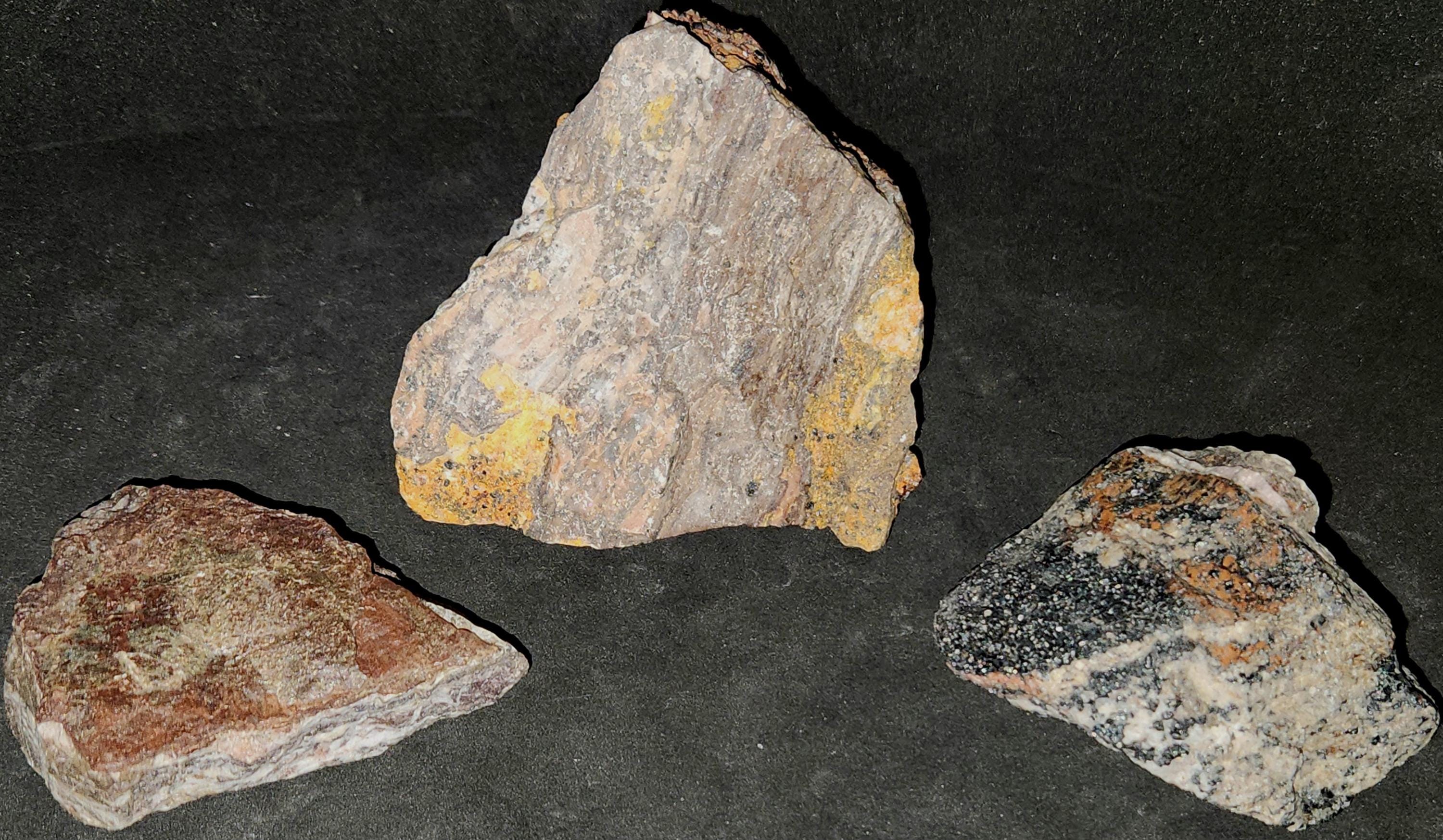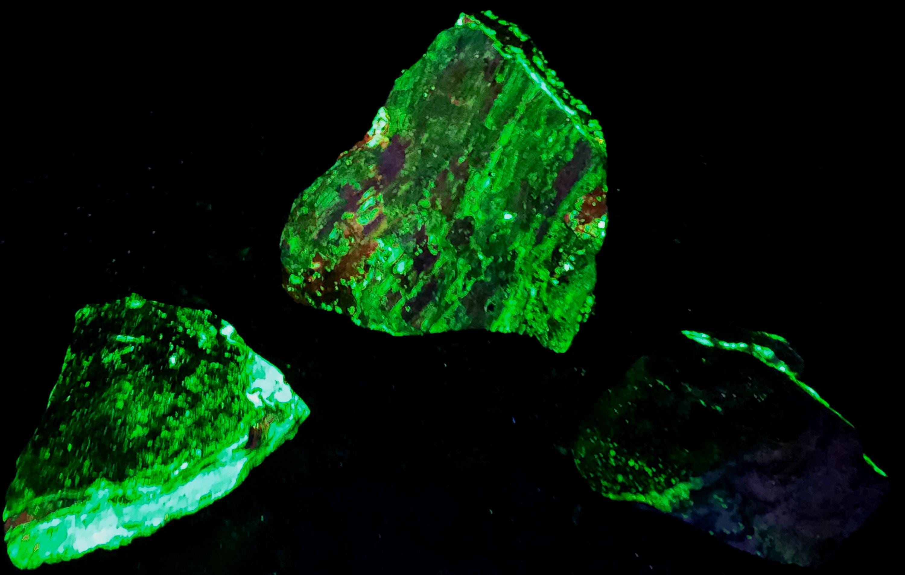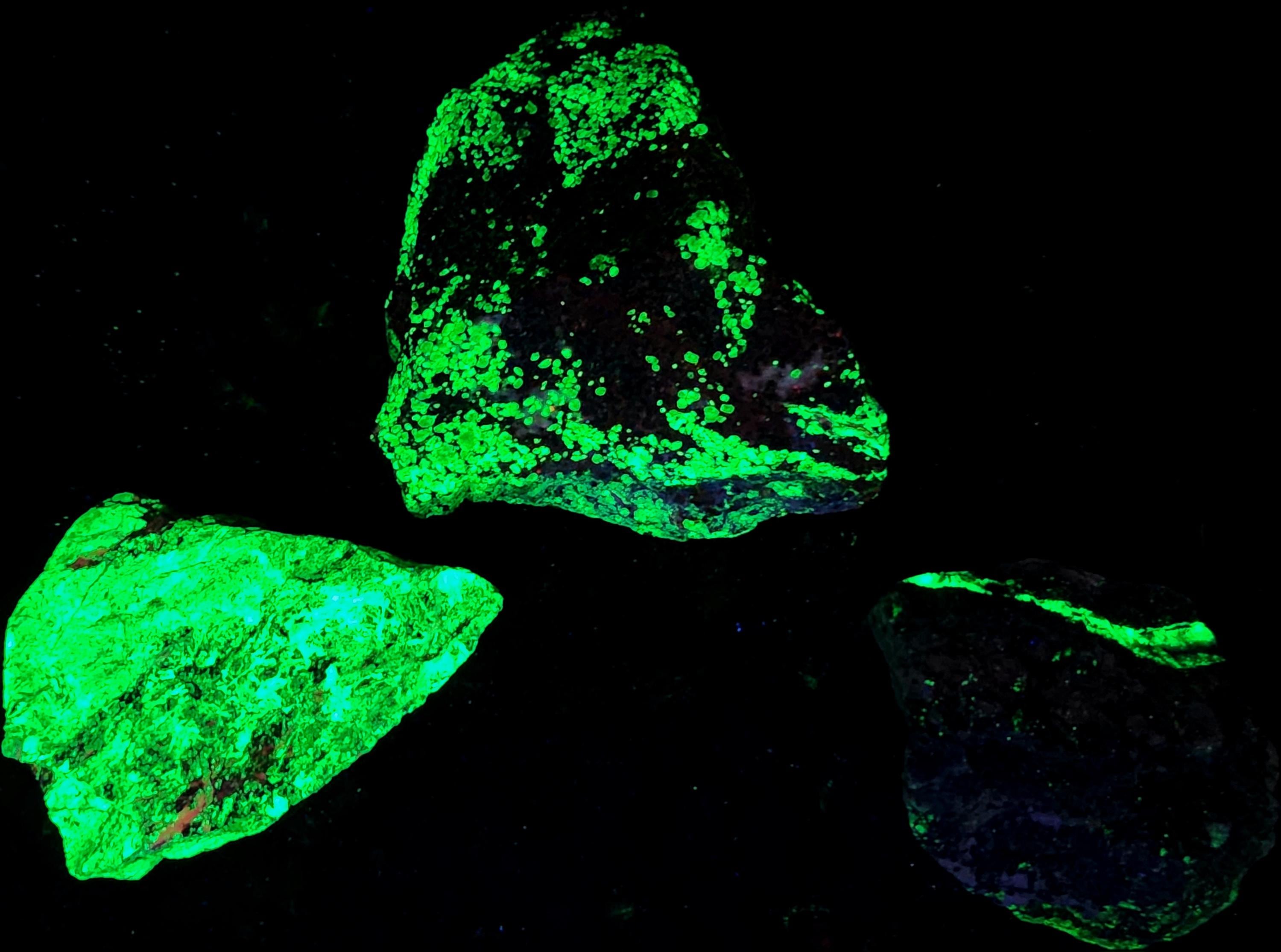 Lot of 3x Classic, Bright Shortwave SW + Longwave LW Ultraviolet Fluorescent Mineral Specimens From the Sterling Hill Mine in New Jersey!