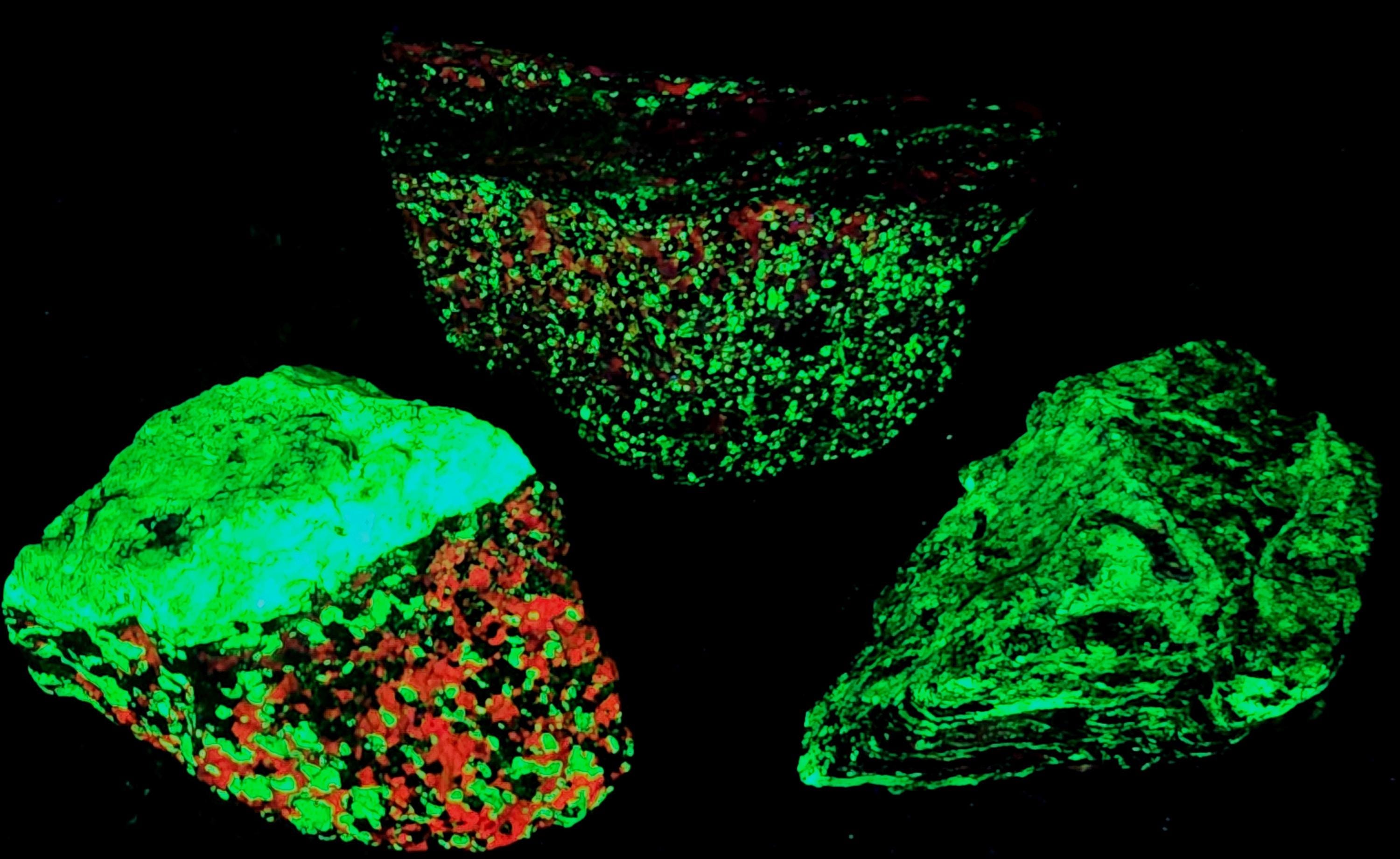 Lot of 3x Classic, Super Bright Shortwave SW + Longwave LW Ultraviolet Fluorescent Mineral Specimens From the Sterling Hill Mine in New Jersey!