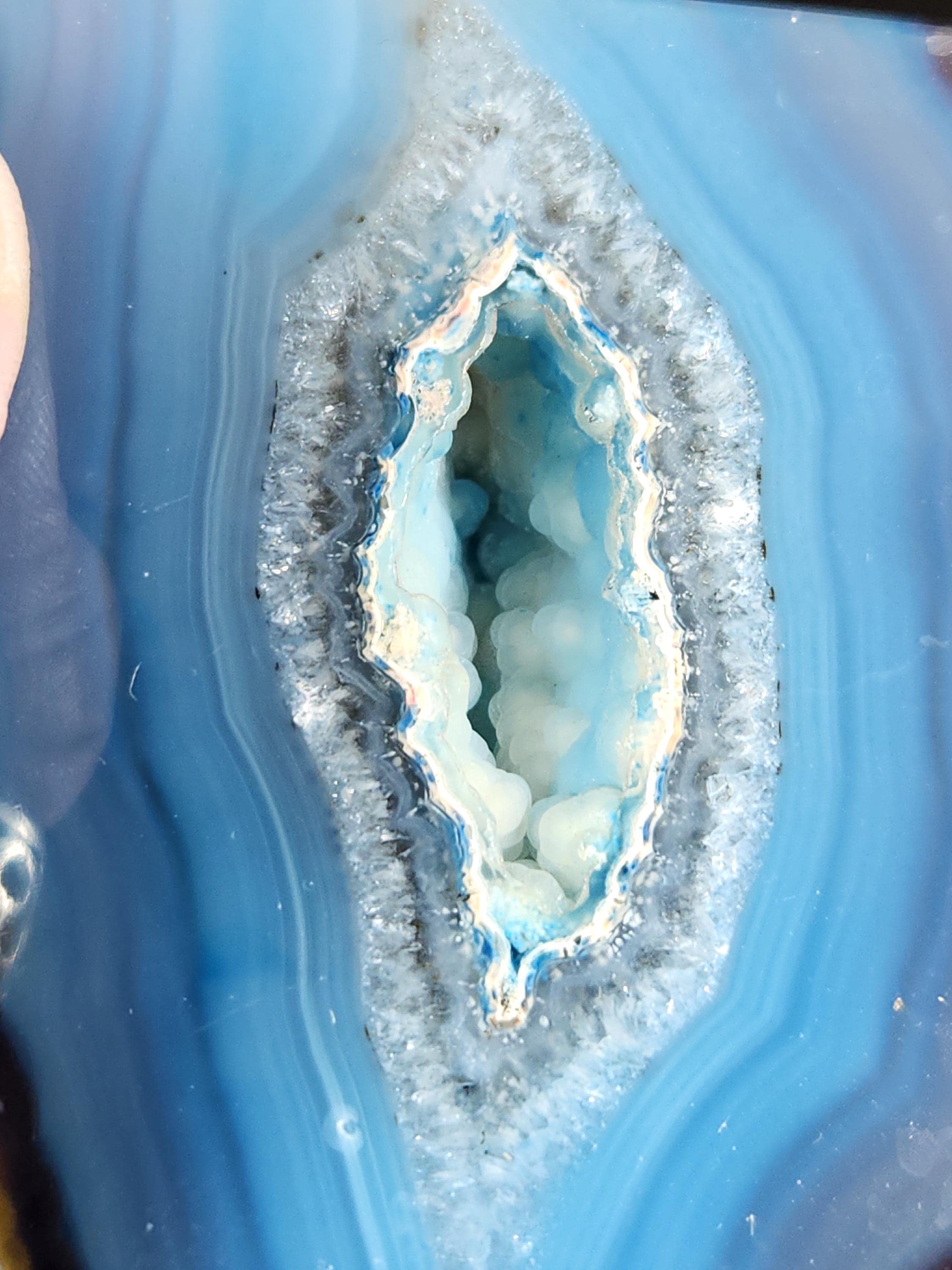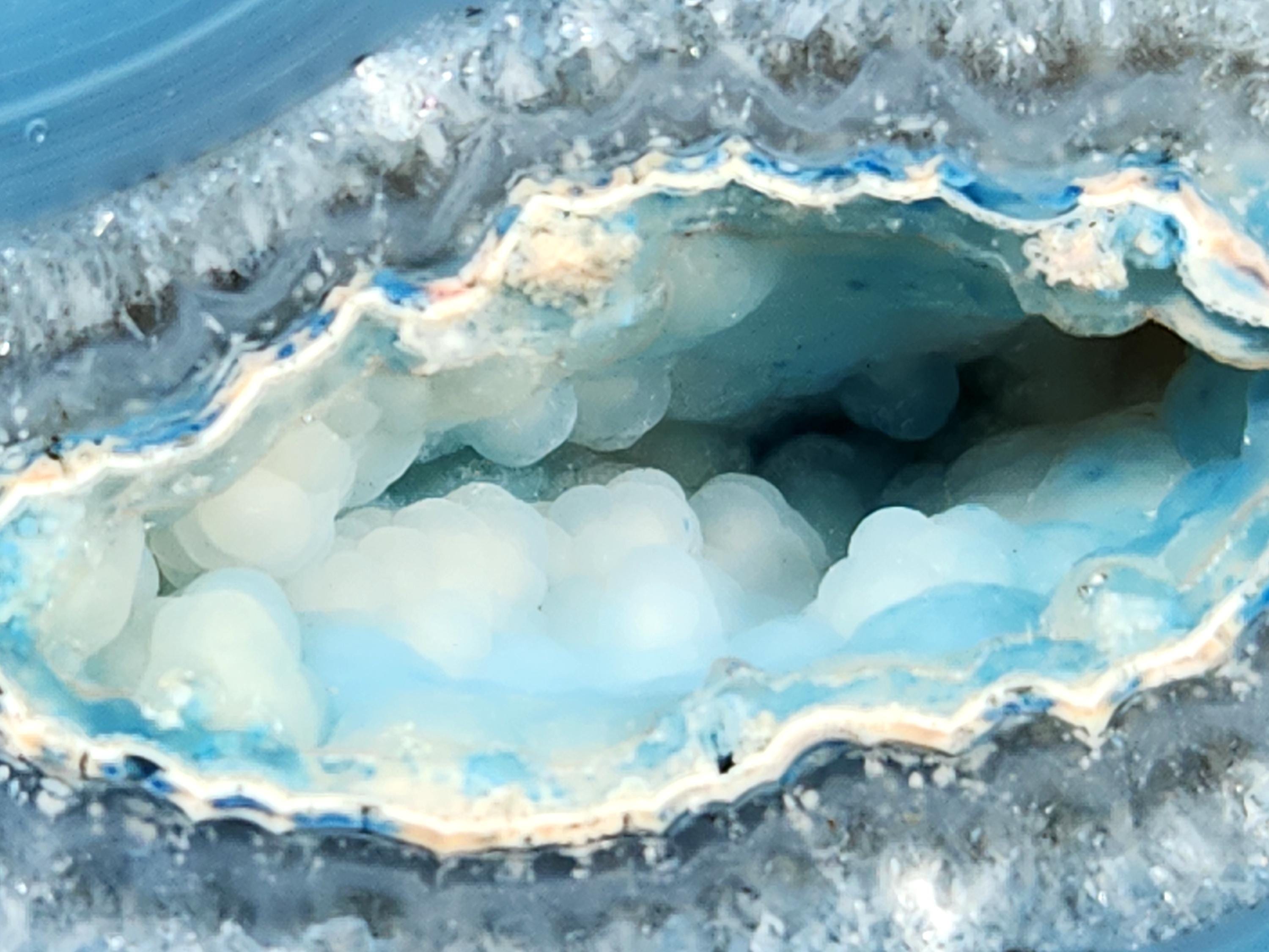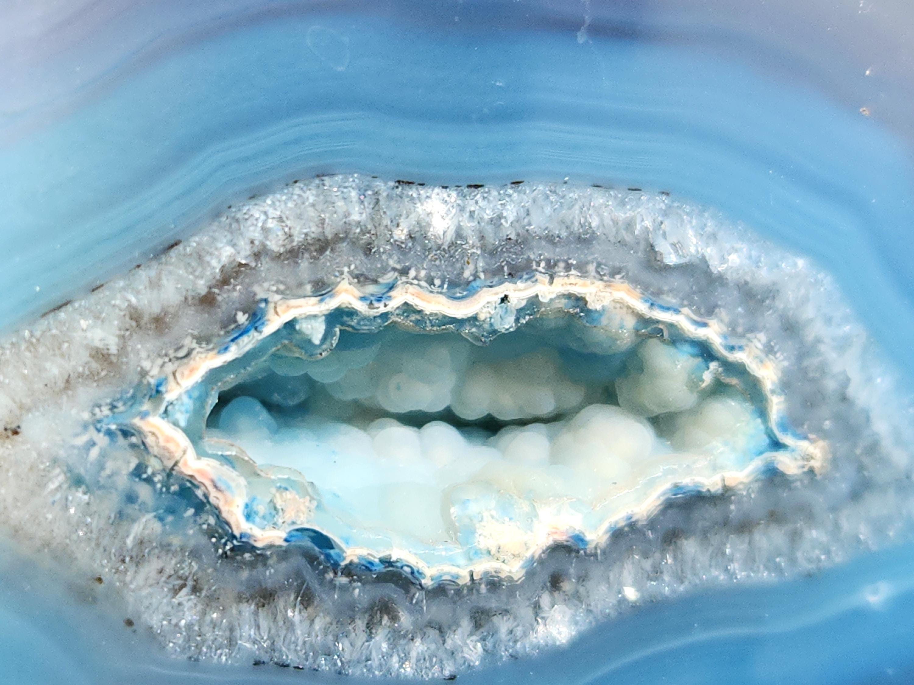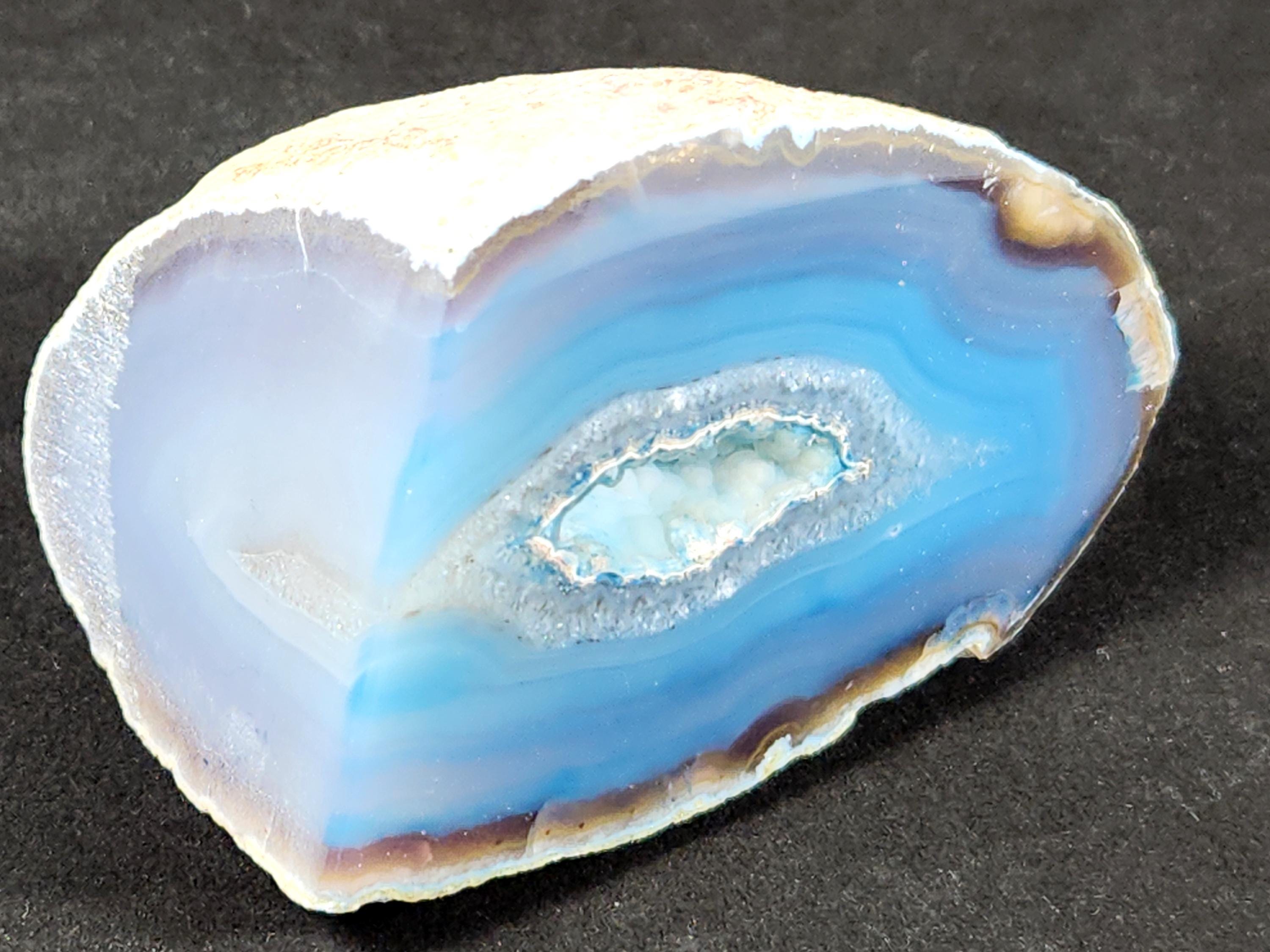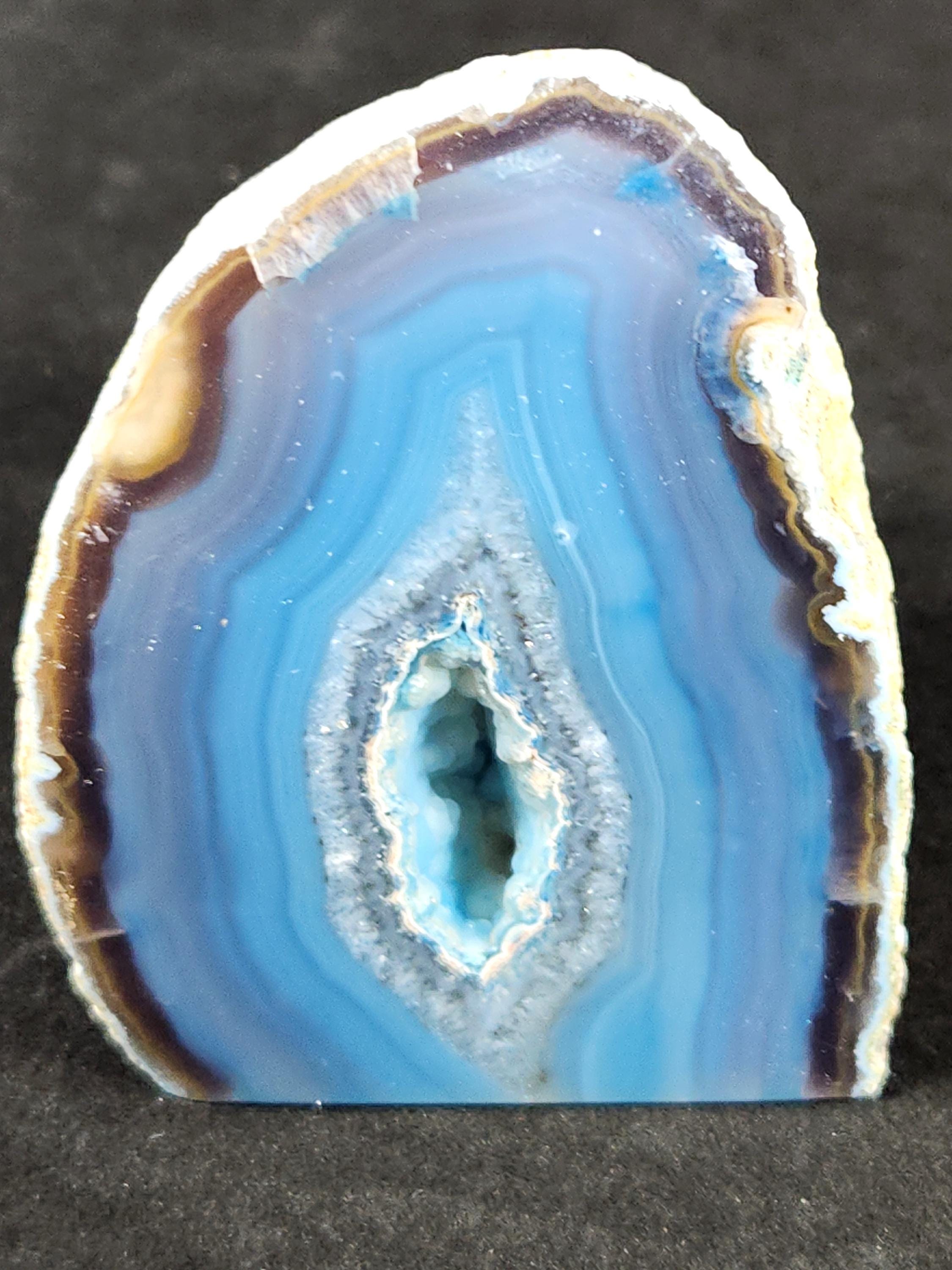 Cut & Polished Bright Blue Dyed Agate Geode with Druzy Quartz Crystals which has a Highly Polished Display Face on 2 Sides!