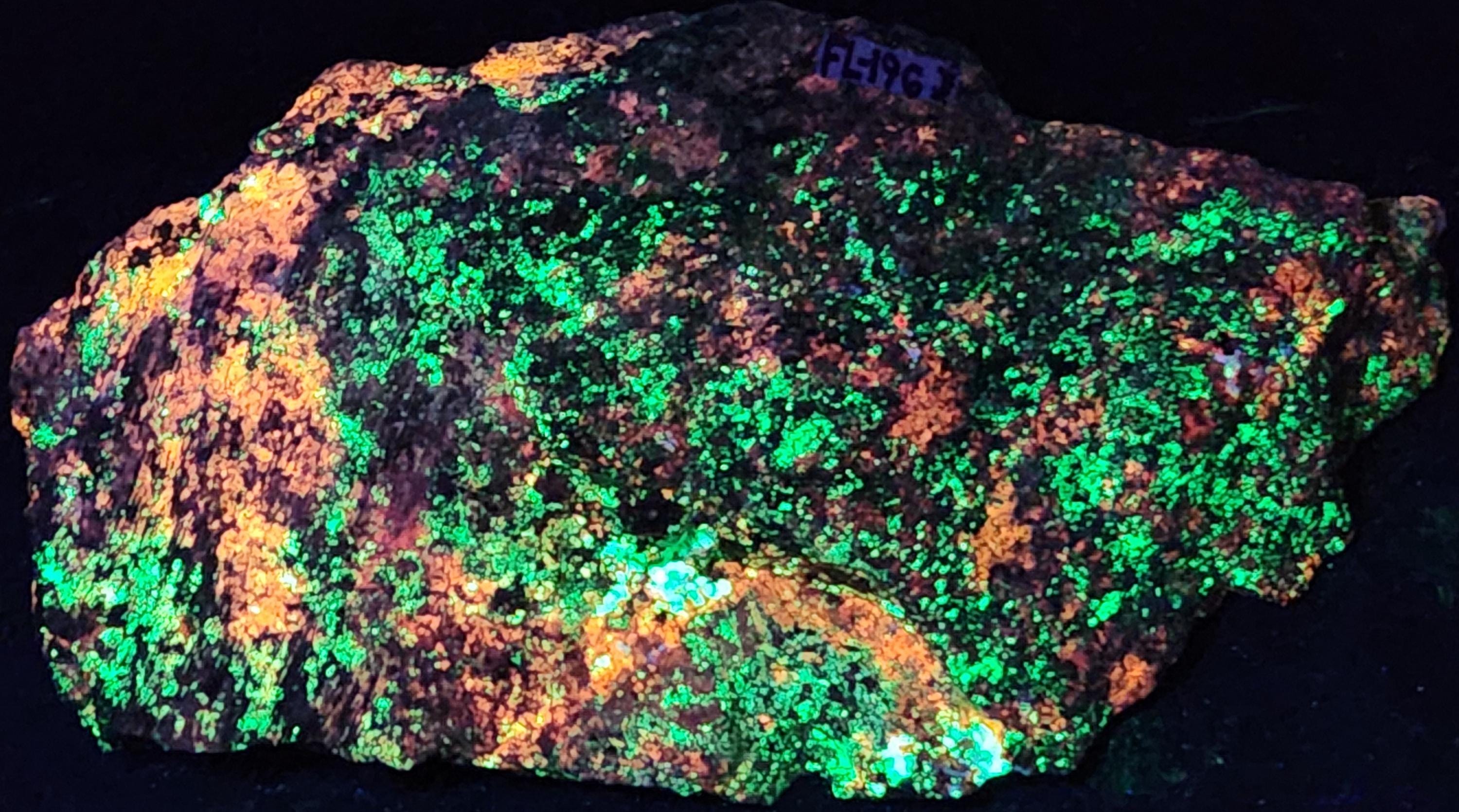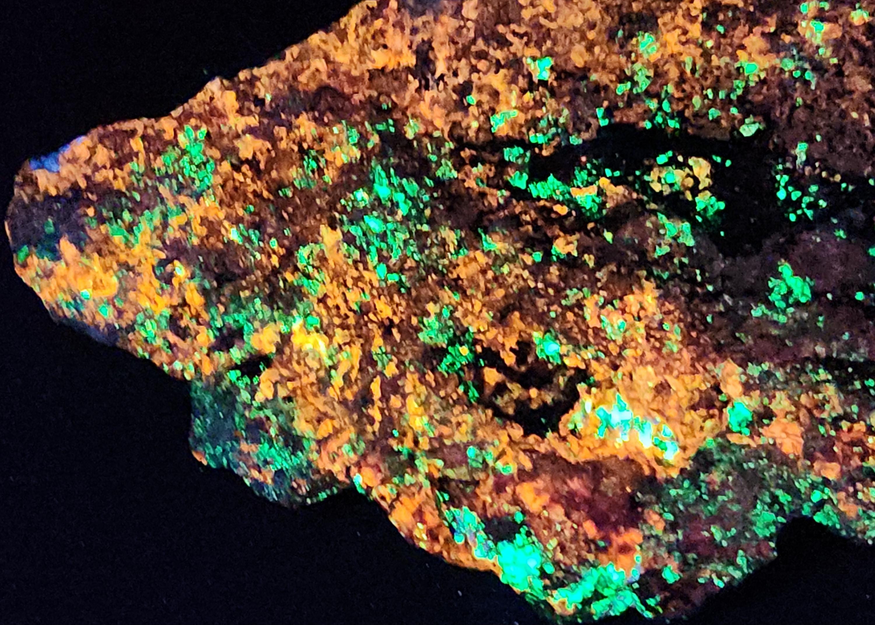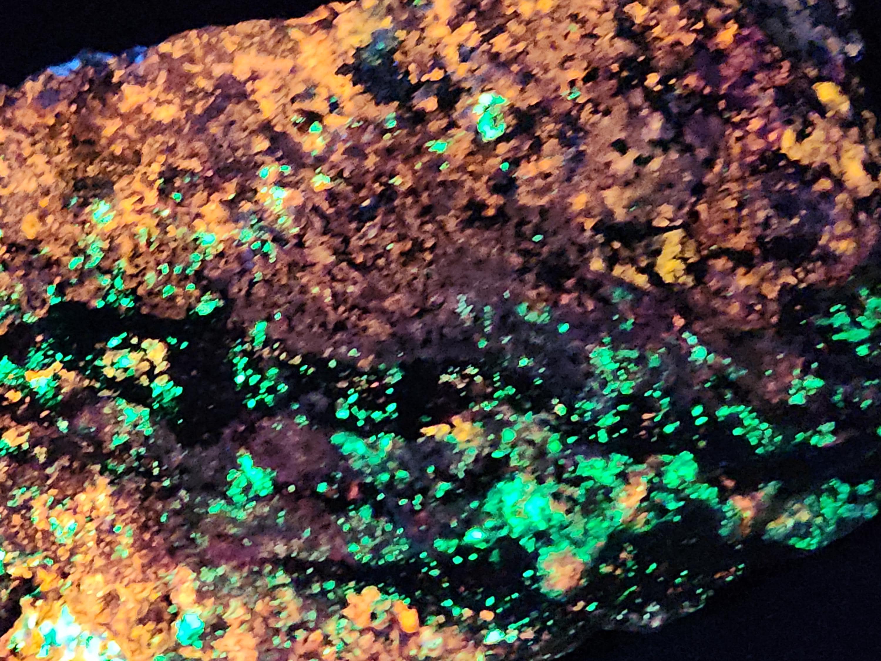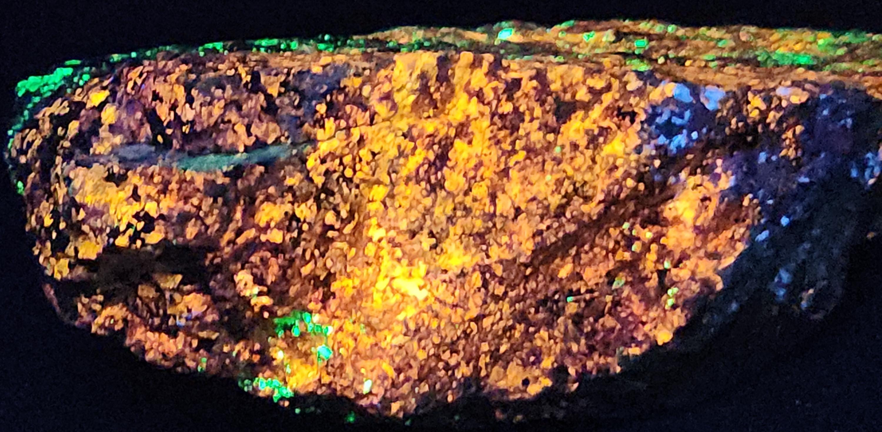 Fluorescent Very Rare Fibrous Wollastonite (Bright Orange SW), Margarosanite (Bright Blue SW) & Willemite (Bright Green SW & LW)