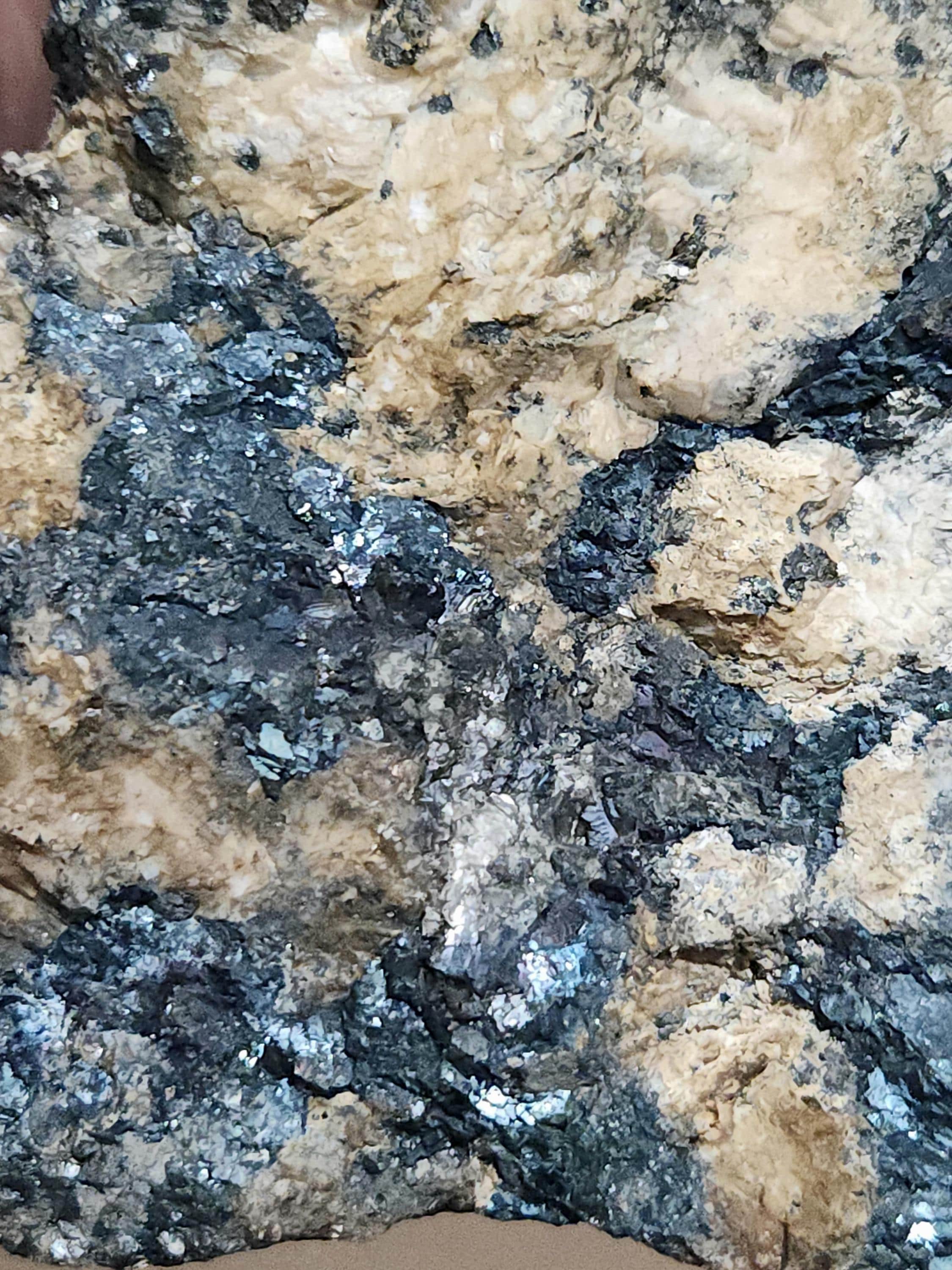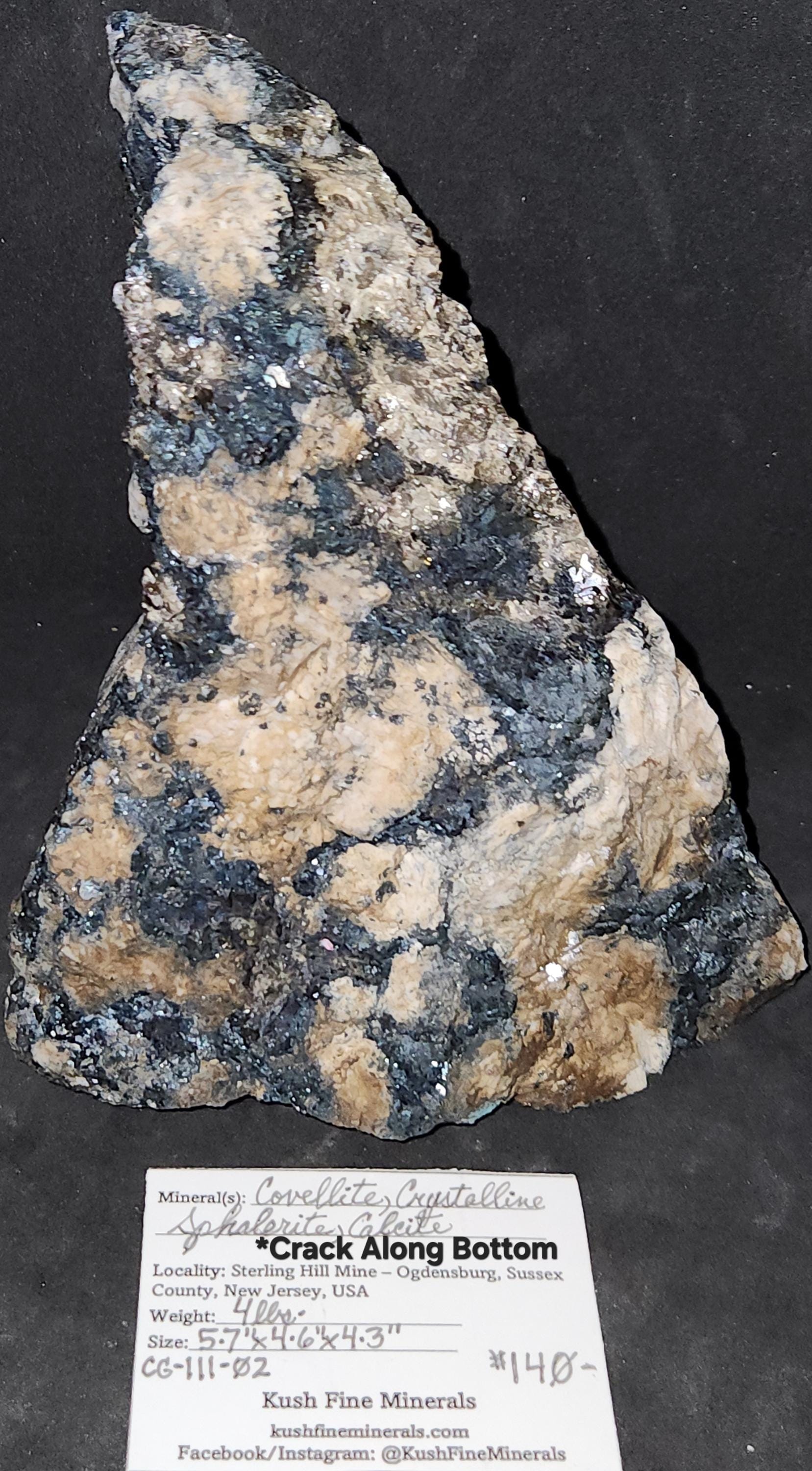With Very Rich Non-Fluorescent, Blue Iridescent Covellite & Grey/Black Chalcocite in Calcite