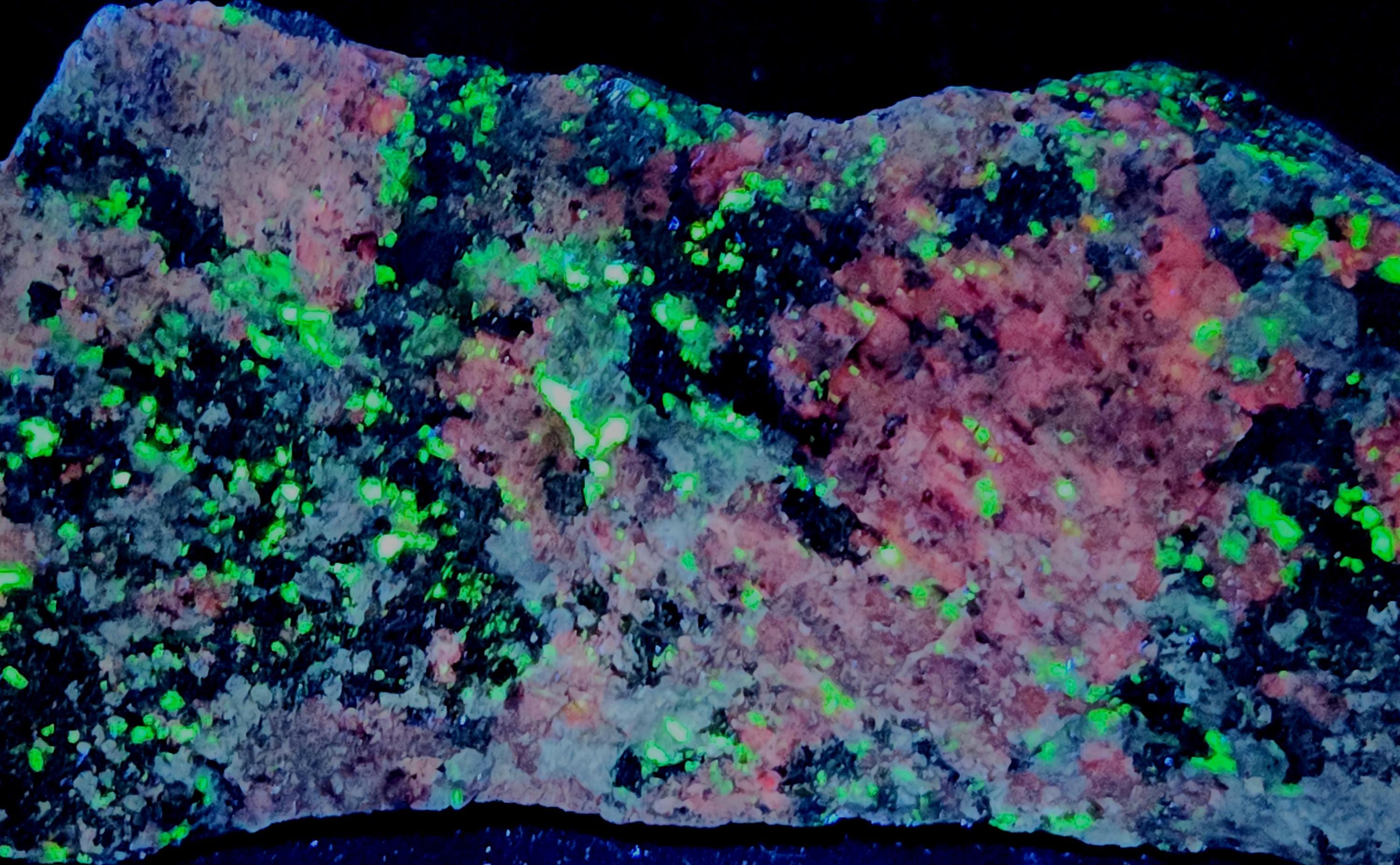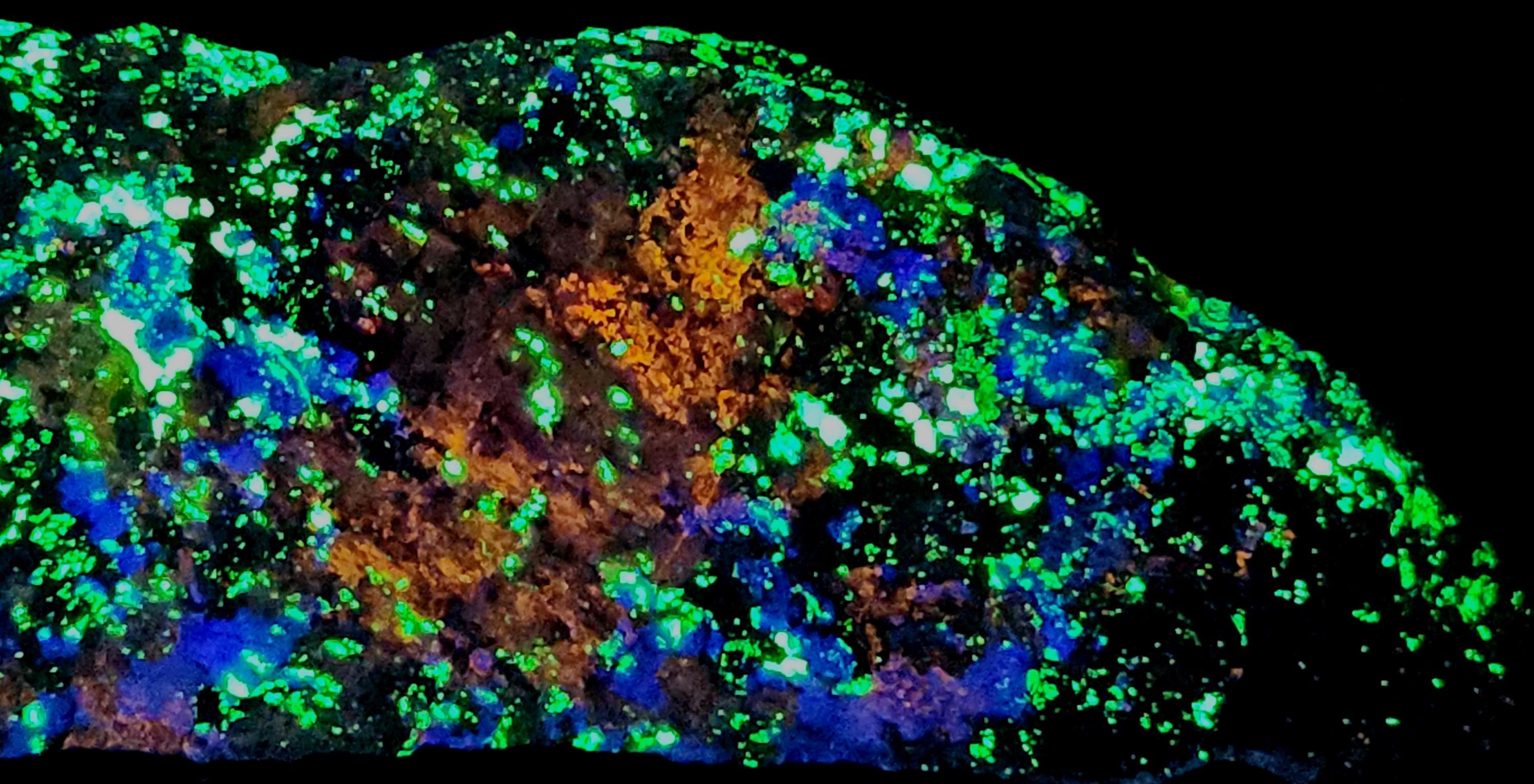 Rare Longwave Fluorescent Bustamite (Red to Pink LW), Clinohedrite (Orange SW), Hardystonite (Blue SW) & Willemite (Bright Green SW & LW)