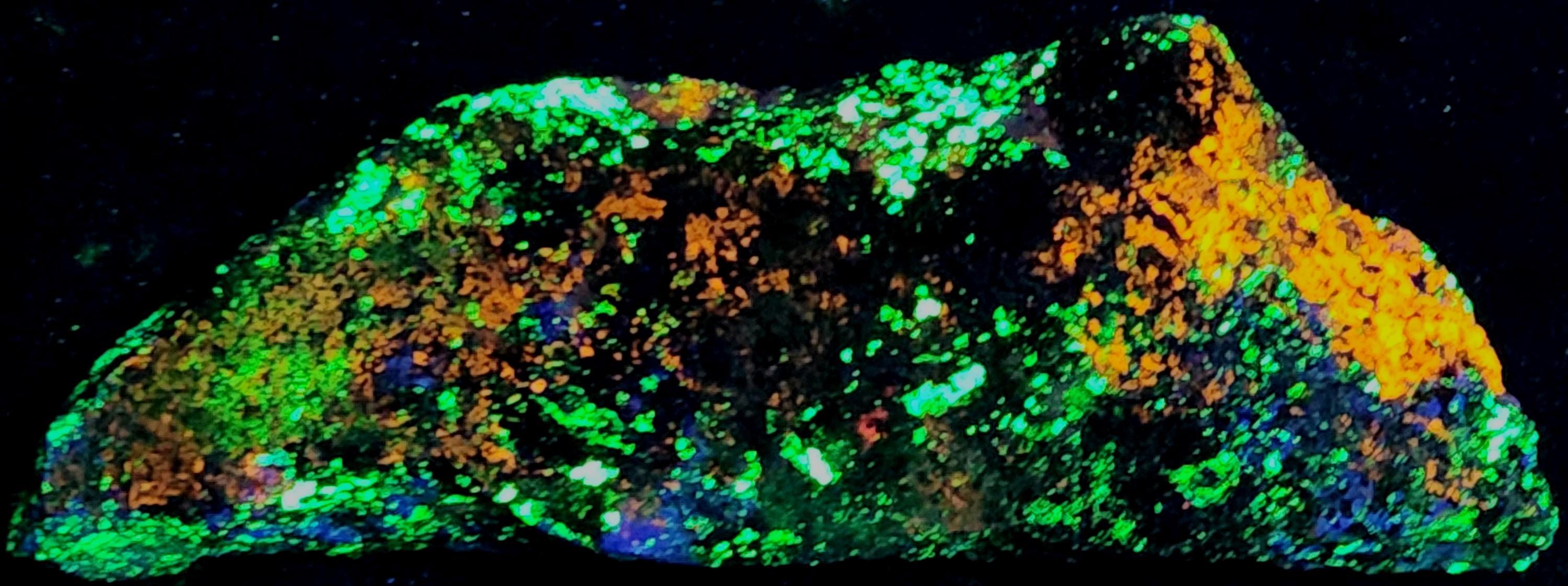 Top A++ Classic Shortwave & Longwave Ultraviolet Fluorescent Mineral Specimen from Franklin, NJ with Excellent Fluorescent Coverage, Very Bright Colors & Gorgeous Patterns!