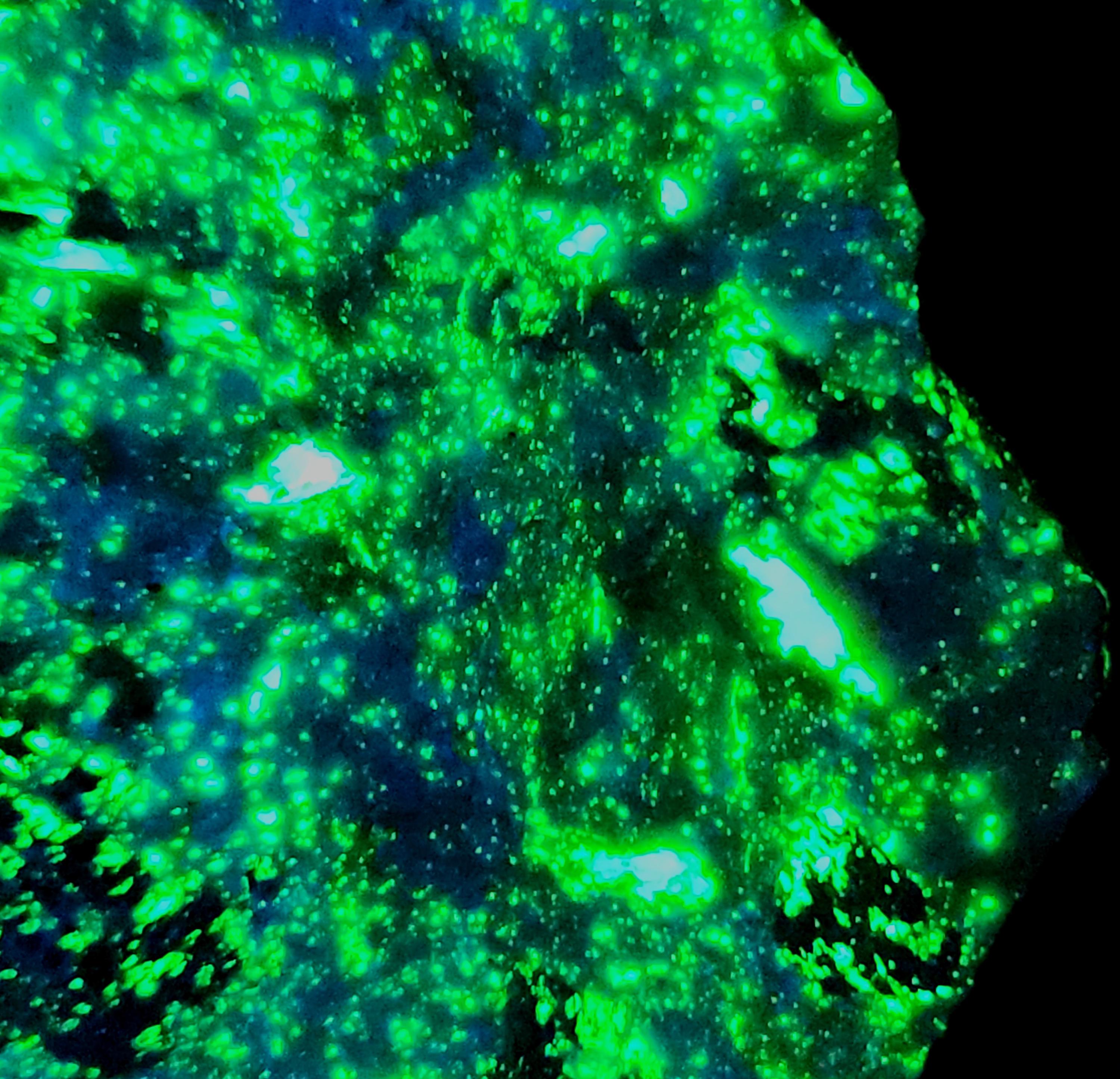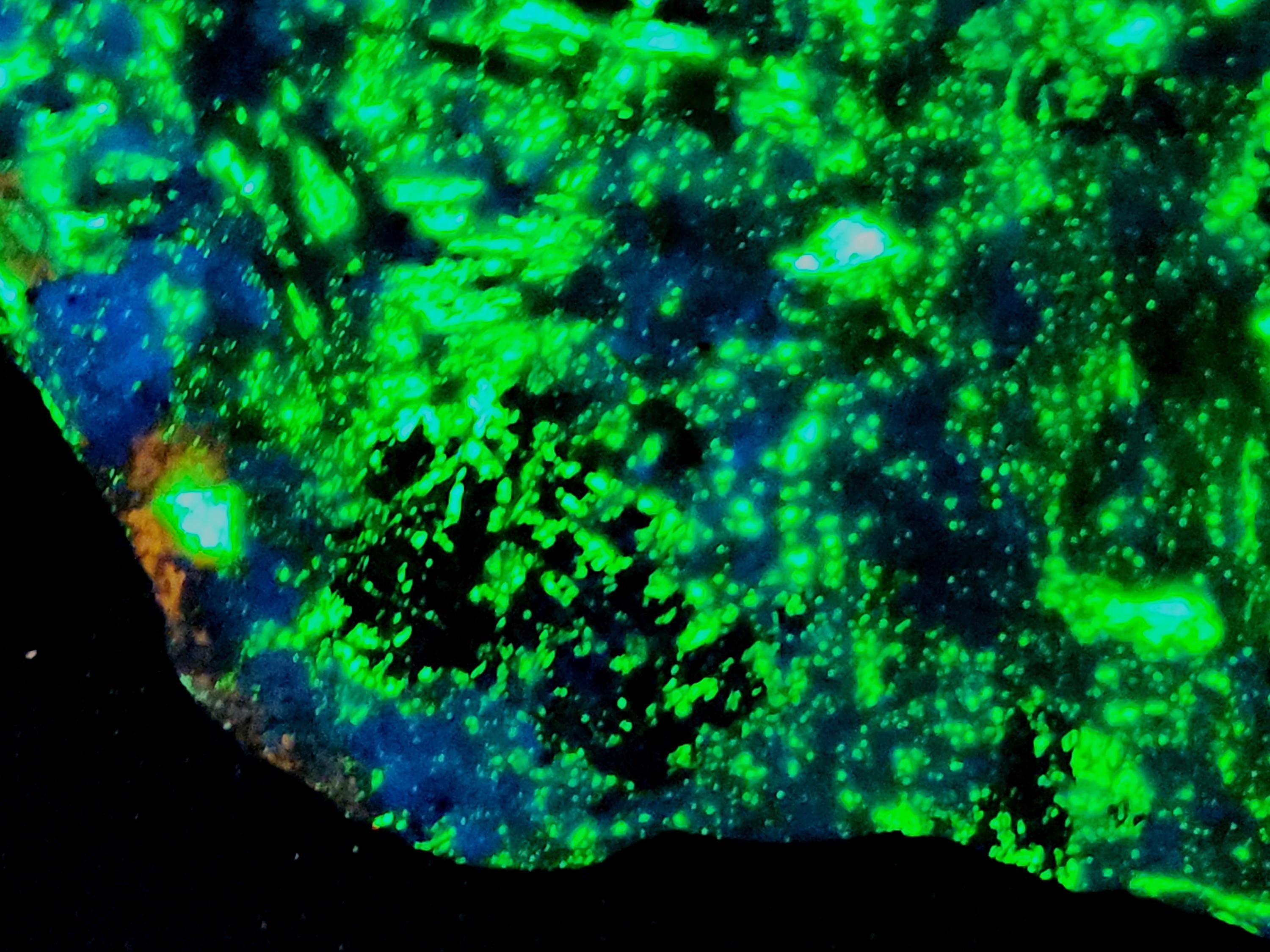 All Fluorescent Pics Show the Shortwave (SW) UV Response & were Taken Using a 35w WayTooCool SW Light. Fluorescent Response will Vary Depending on Strength of Light Used.