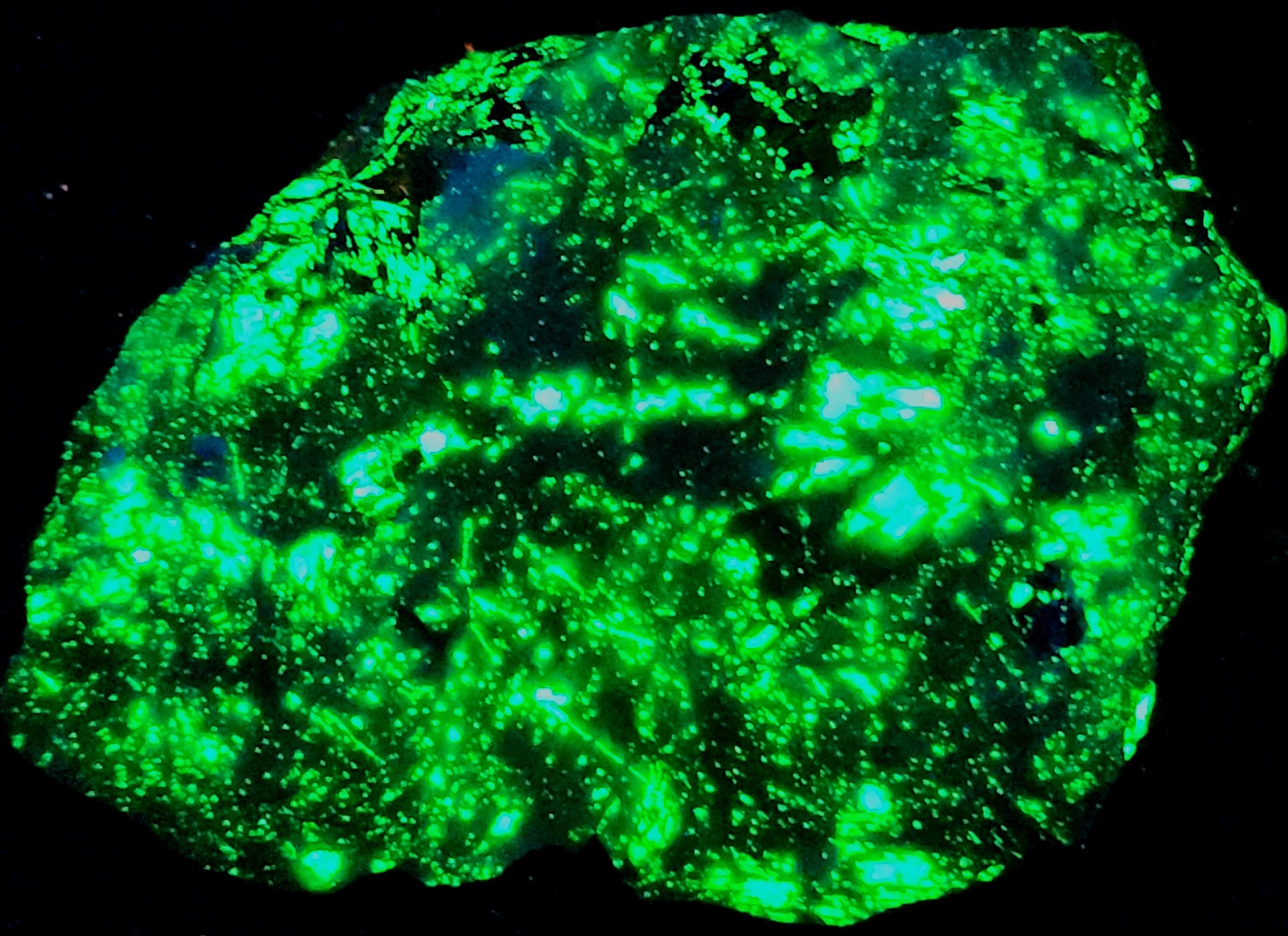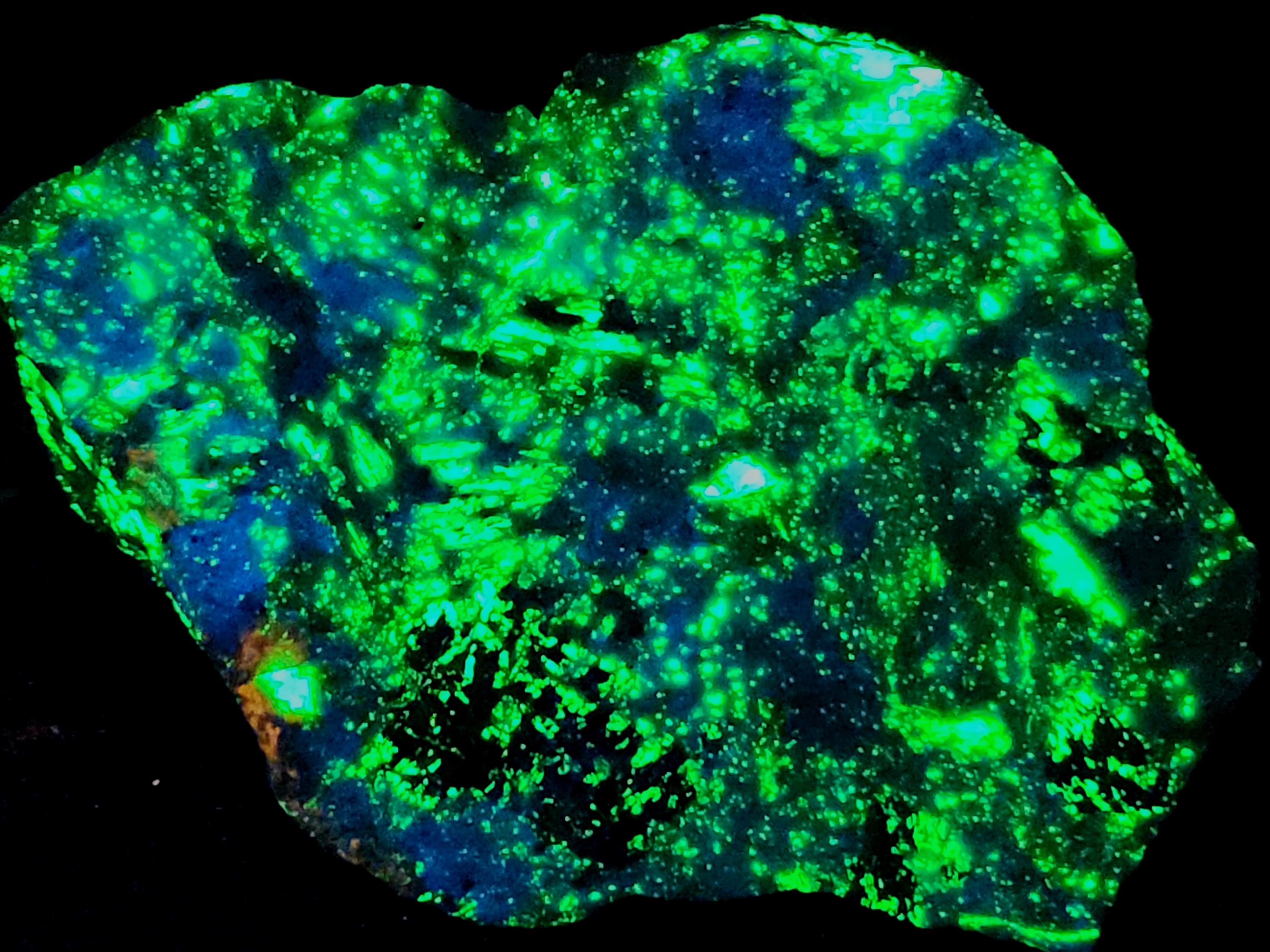 Rare Fluorescent Xonotlite (Bright Blue SW), Willemite (Bright Green SW & LW) & Clinohedrite (Orange SW)