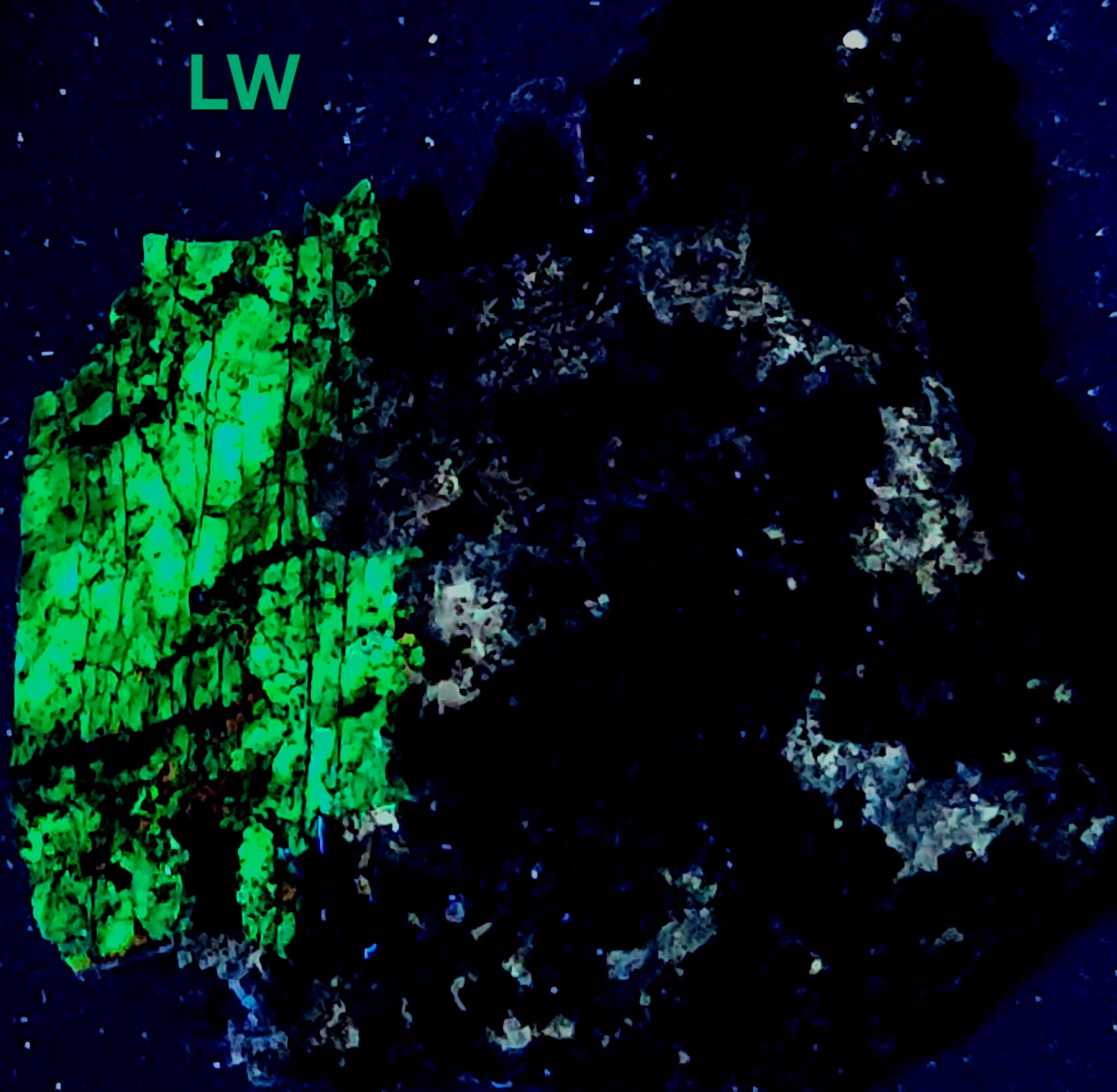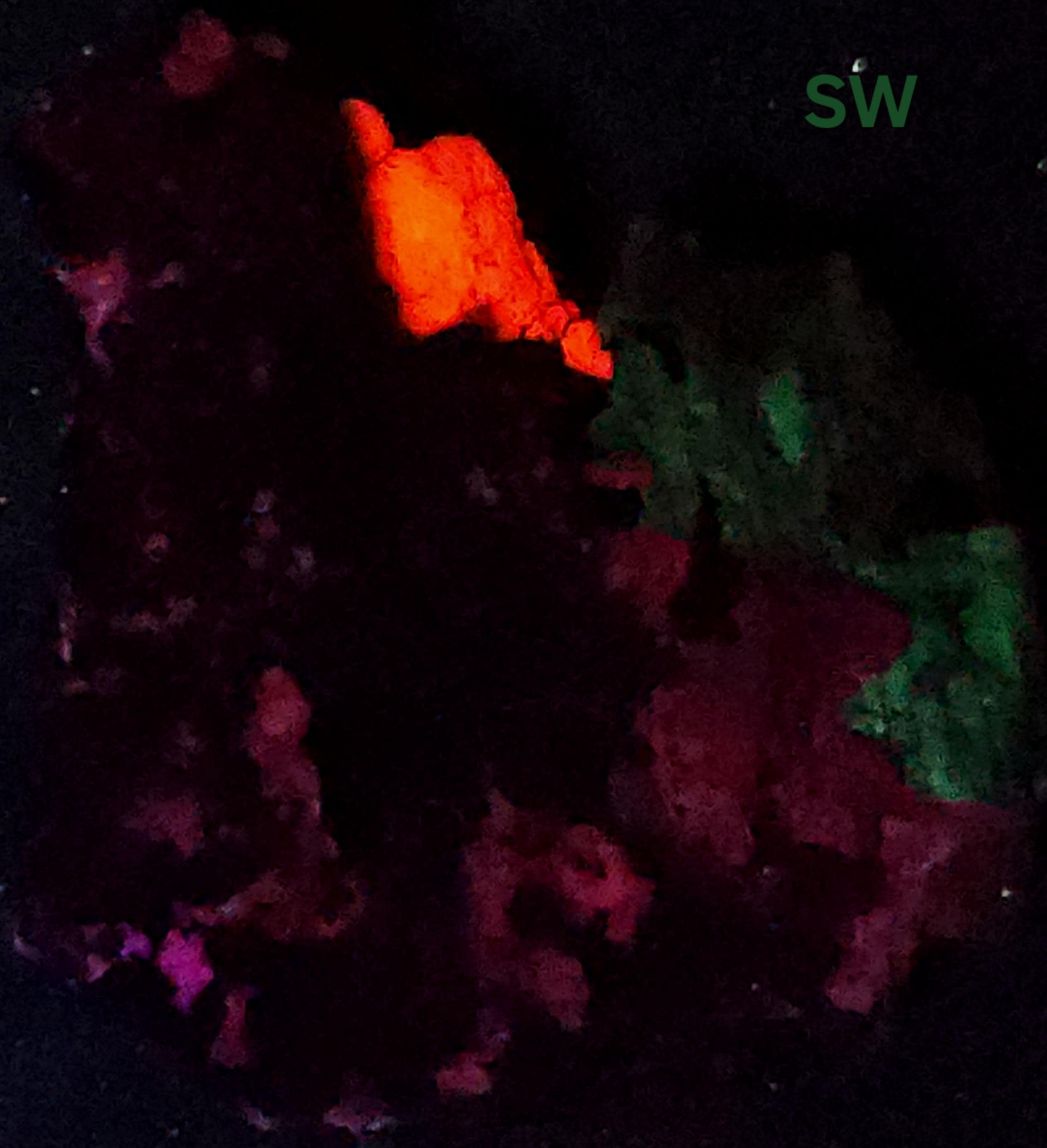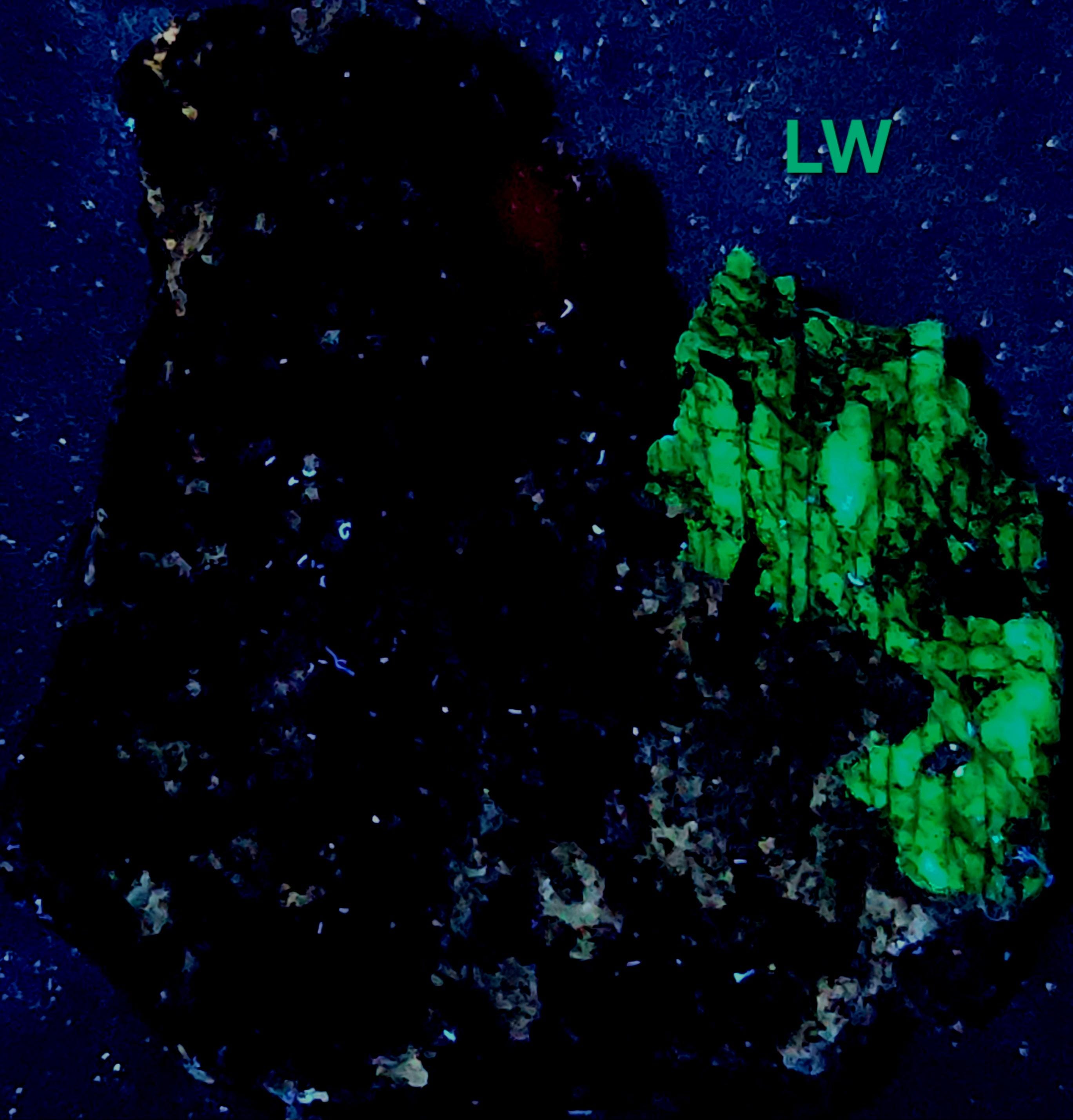 The First 2 Fluorescent PicsShow the Longwave (LW) UV Response Using a Convoy C8+ 365nm LED Flashlight. The Last 2 Show the Shortwave (SW) UV Response & were Taken with a 35w WayTooCool SW UV Light.