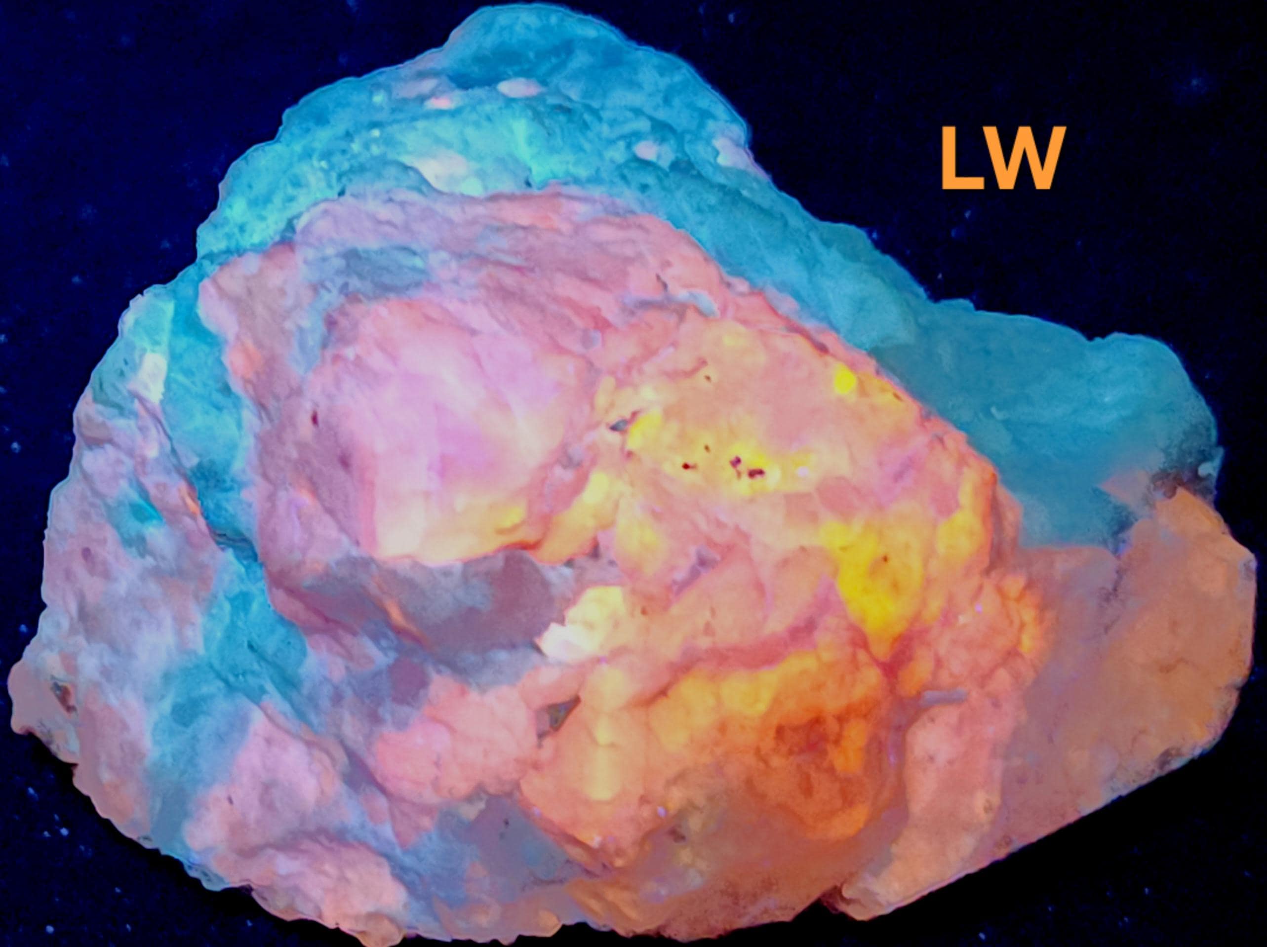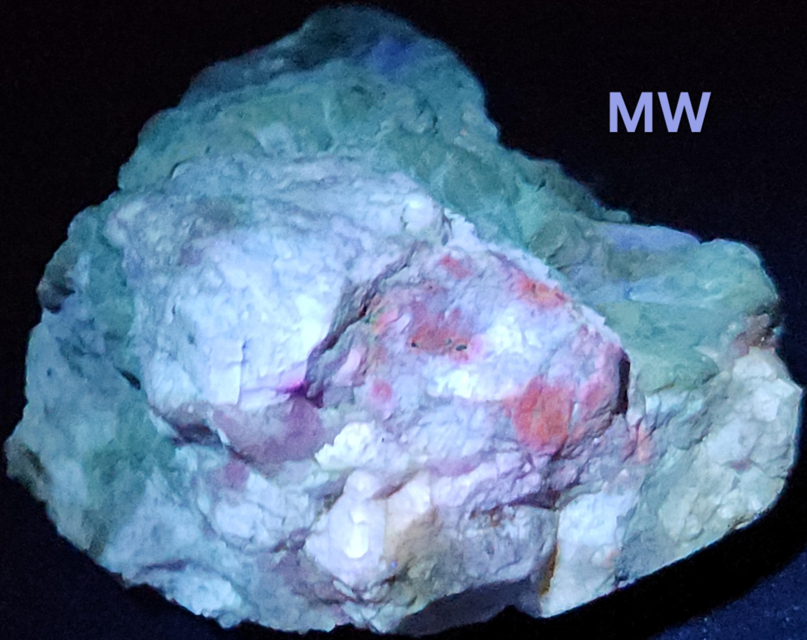 Classic, Multiwave Ultraviolet Fluorescent + Phosphorescent + Tenebreescent Mineral Specimen with Very Bright Colors & Gorgeous Patterns from Afghanistan!