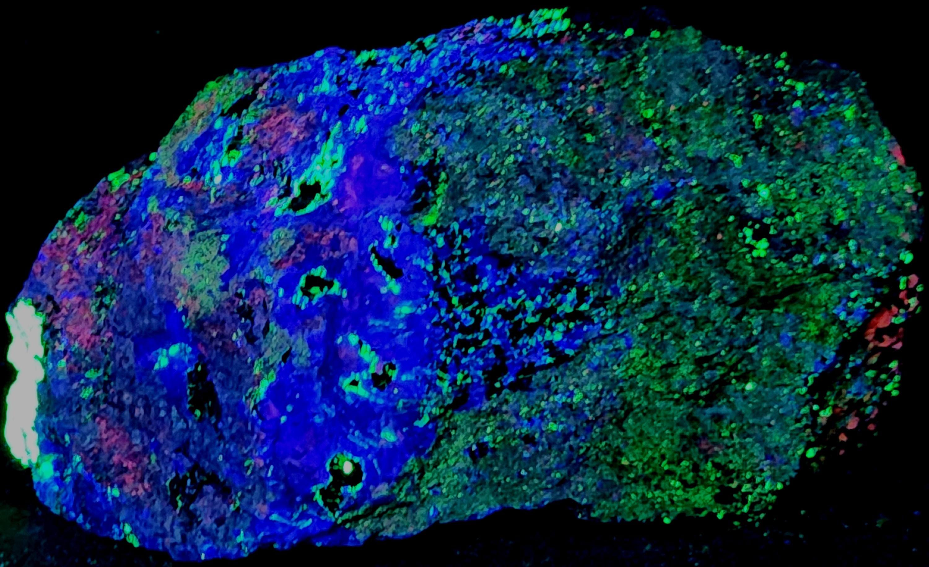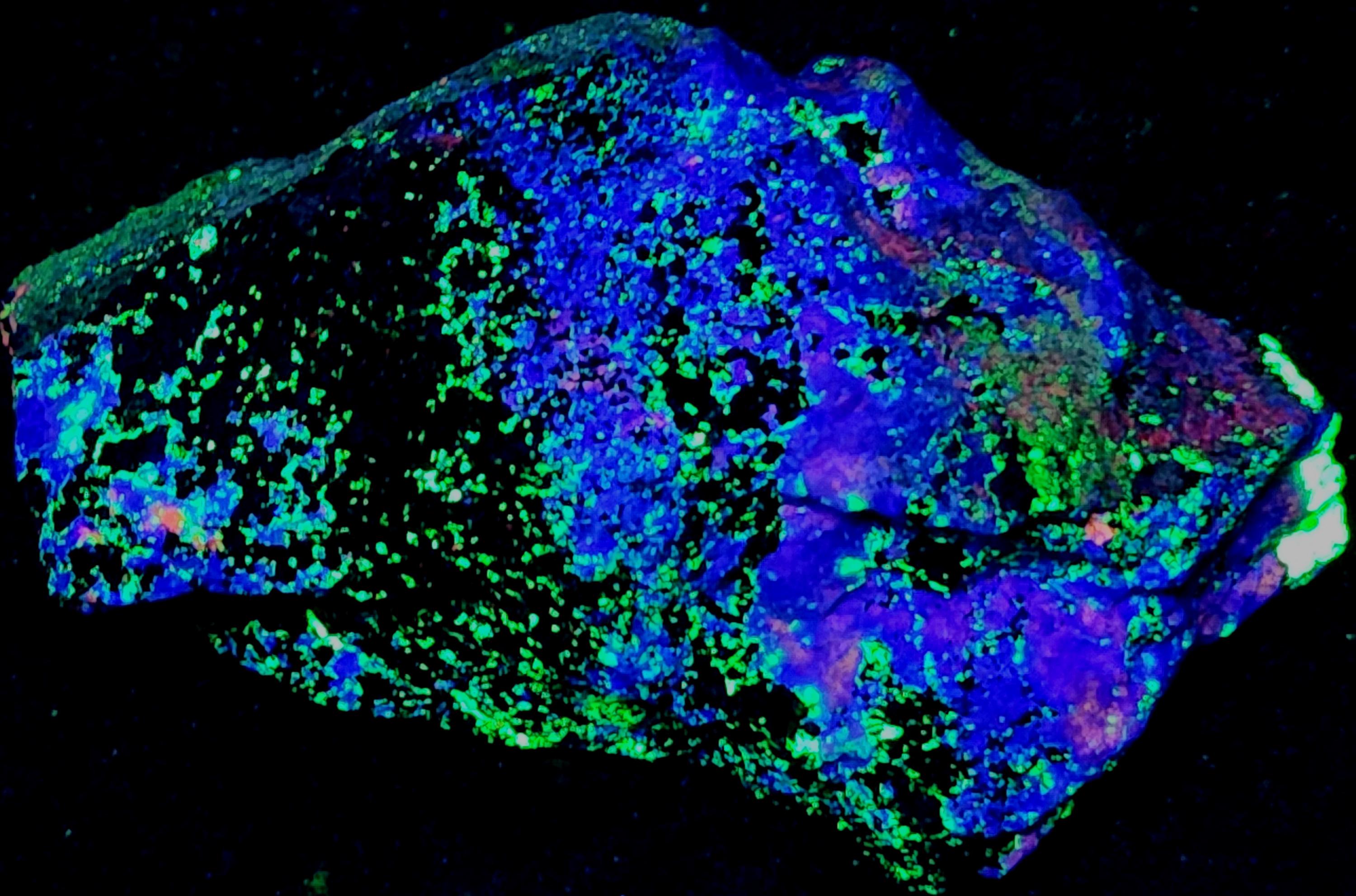 Top A++ Classic Shortwave Ultraviolet Fluorescent Mineral Specimen from Franklin, NJ with Excellent Fluorescent Coverage, Very Bright Colors & Gorgeous Patterns!