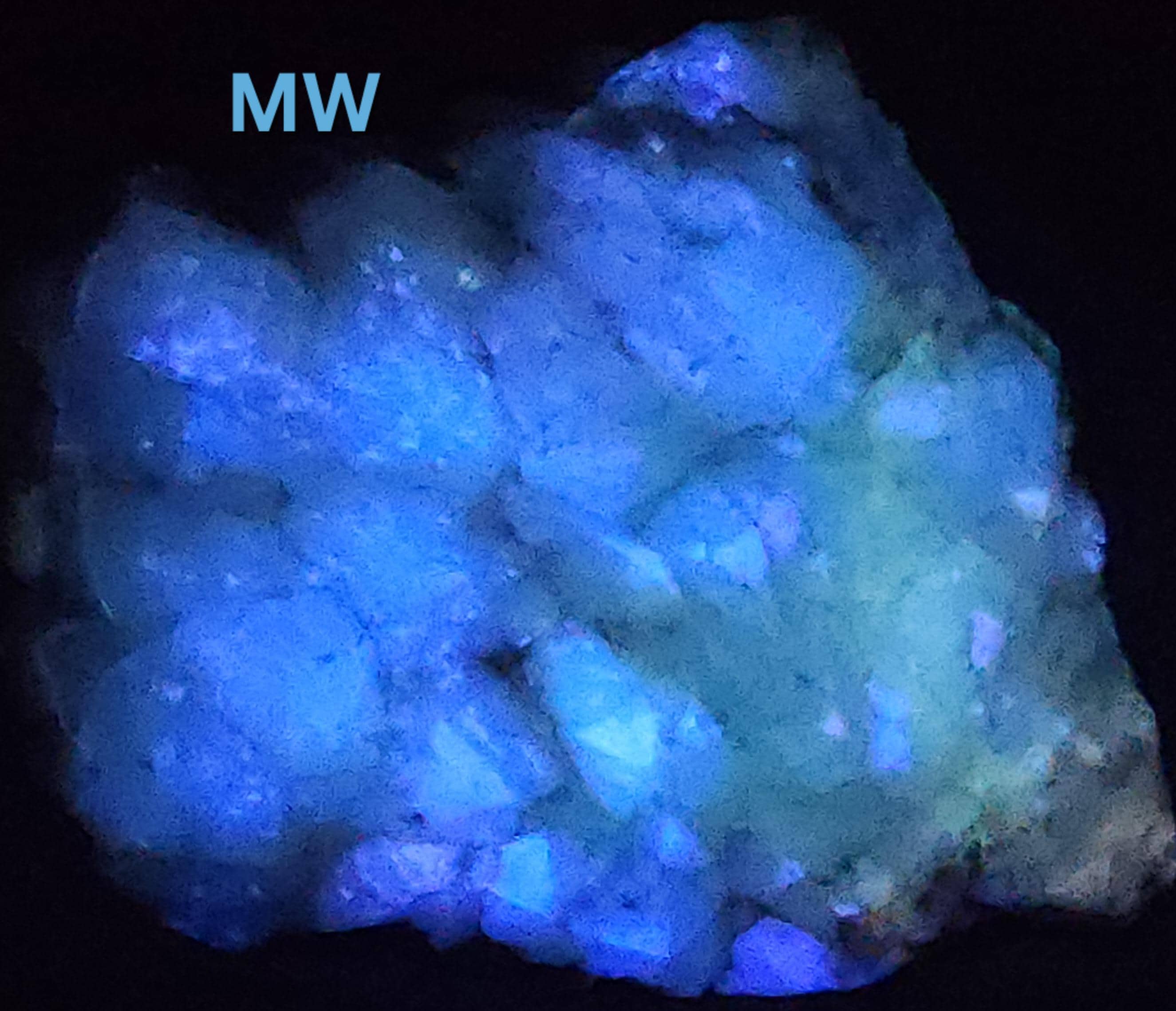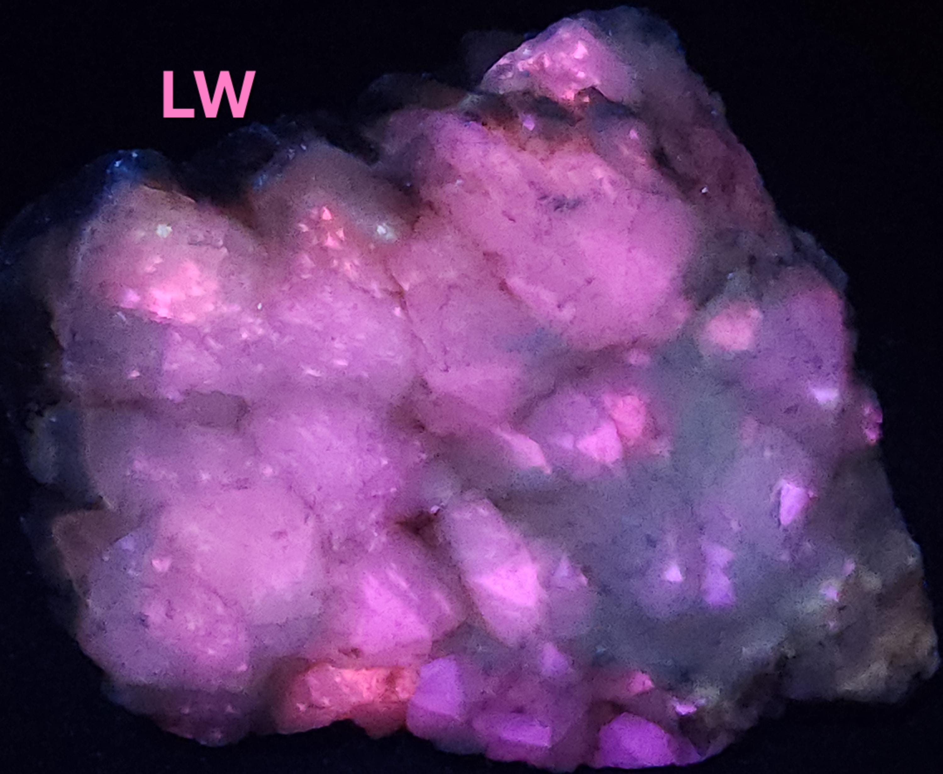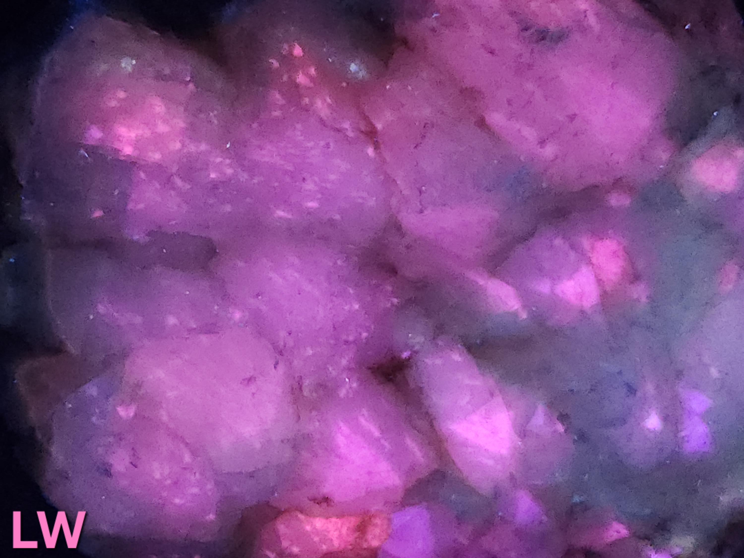 All Fluorescent Pics are Labeled with the Wavelength Used. Shortwave (SW) UV using a 35w WayTooCool SW Light. Midwave (MW) UV is with an FS Hunter L6 Pro 310nm LED Flashlight. Longwave (LW) UV is using a Convoy C8+ 365nm LED Flashlight. Fluorescent Response will Vary Depending on Strength of Light Used, but Any Decent Light of the Proper Wavelength(s) Will Produce a Similar Response.