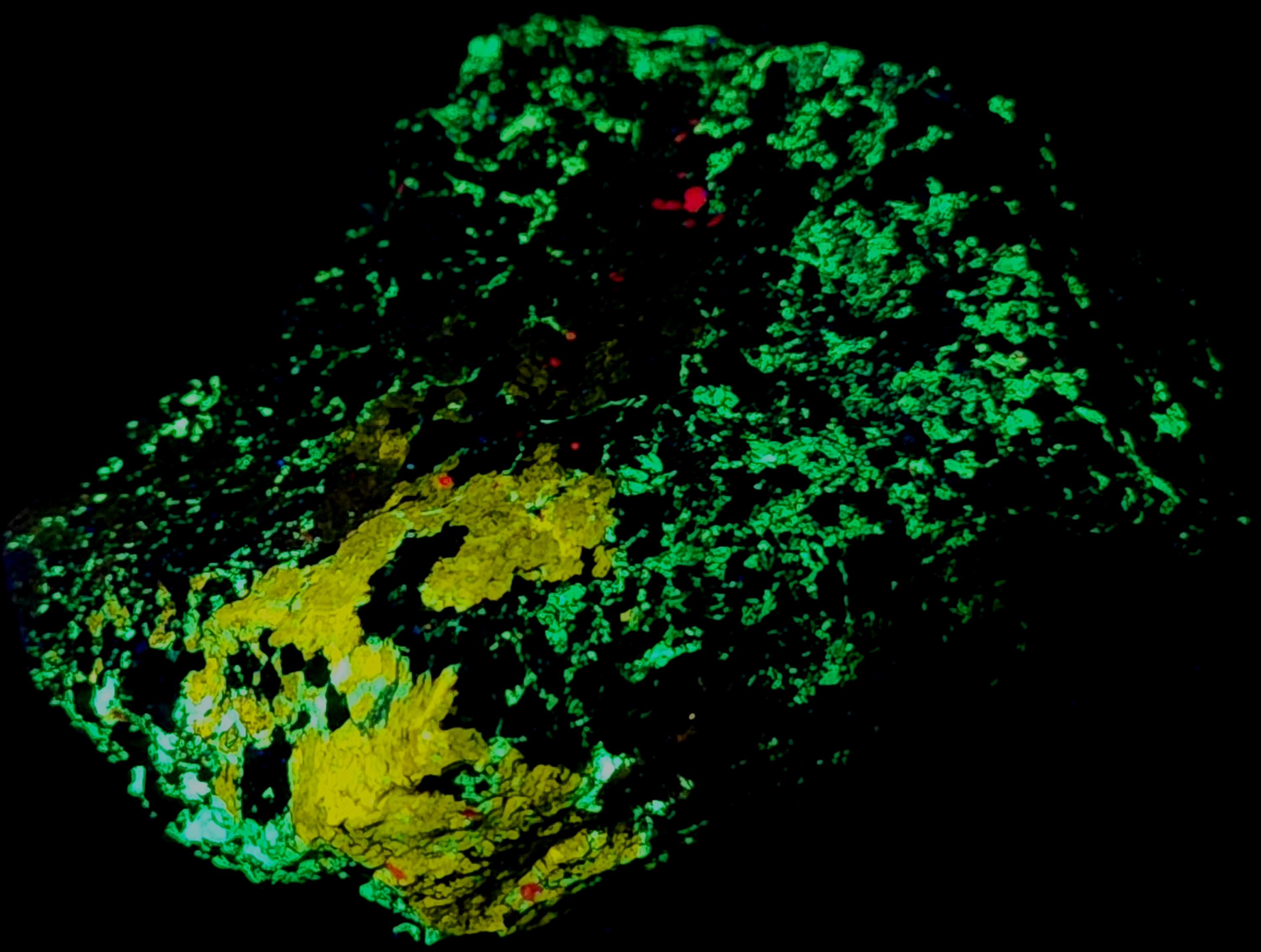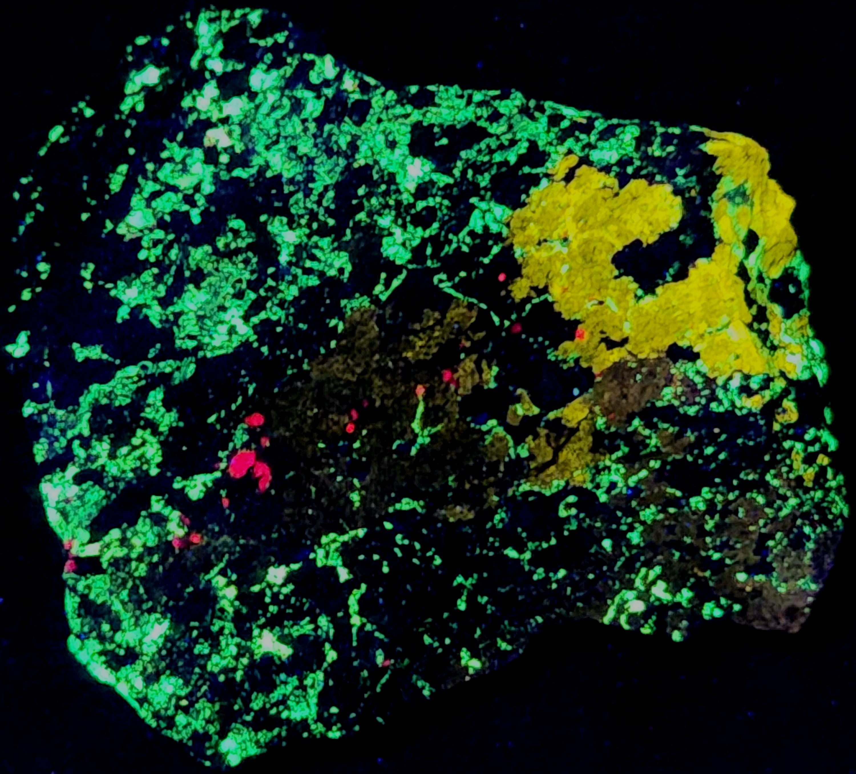 Fluorescent Very Rich Esperite (Bright Yellow SW), Willemite (Bright Green SW & LW) & Calcite (Bright Red/Orange SW)