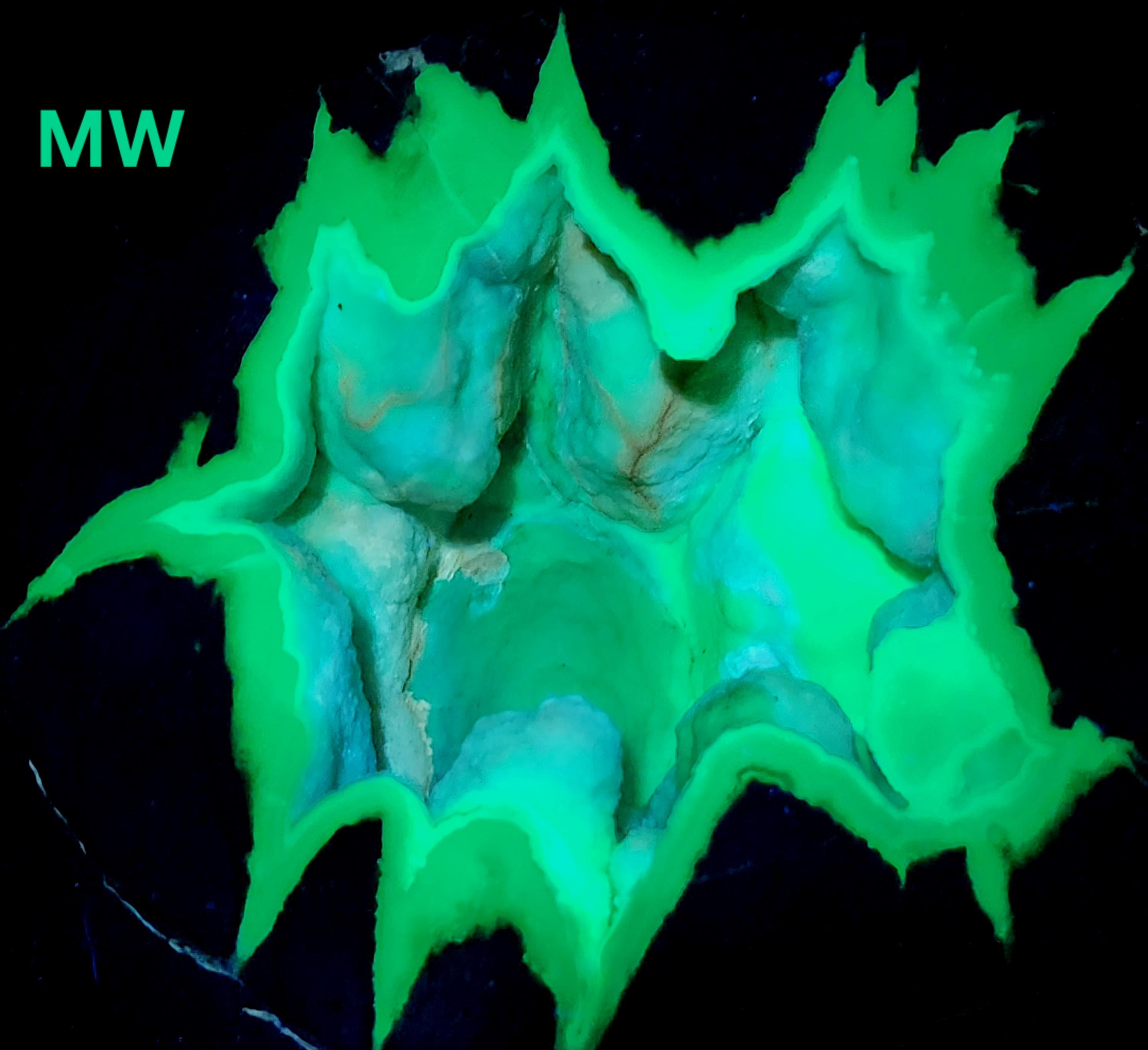 All Fluorescent Pics are Labeled with the Wavelength Used. Shortwave UV is using a 35w WayTooCool SW Light. Midwave UV is using an FS Hunter L6 Pro 310nm LED Flashlight. Longwave UV is with a Convoy C8+ 365nm LED Flashlight.